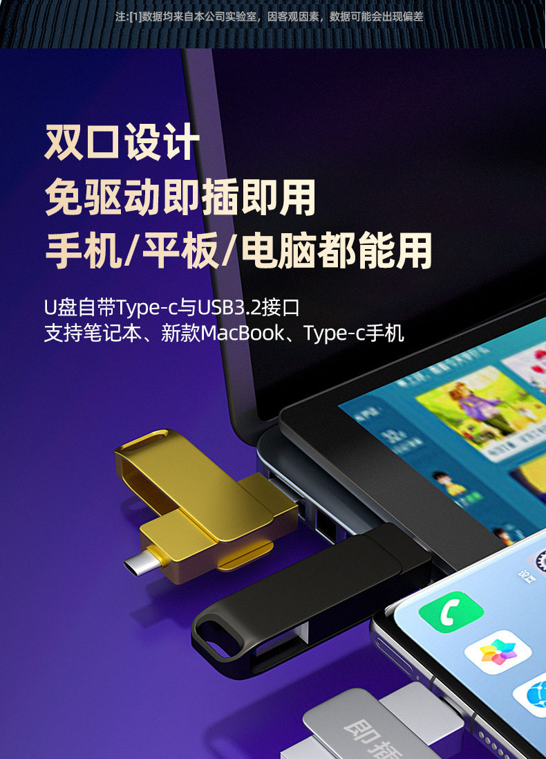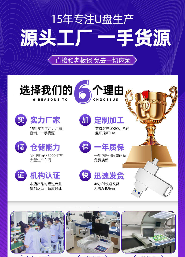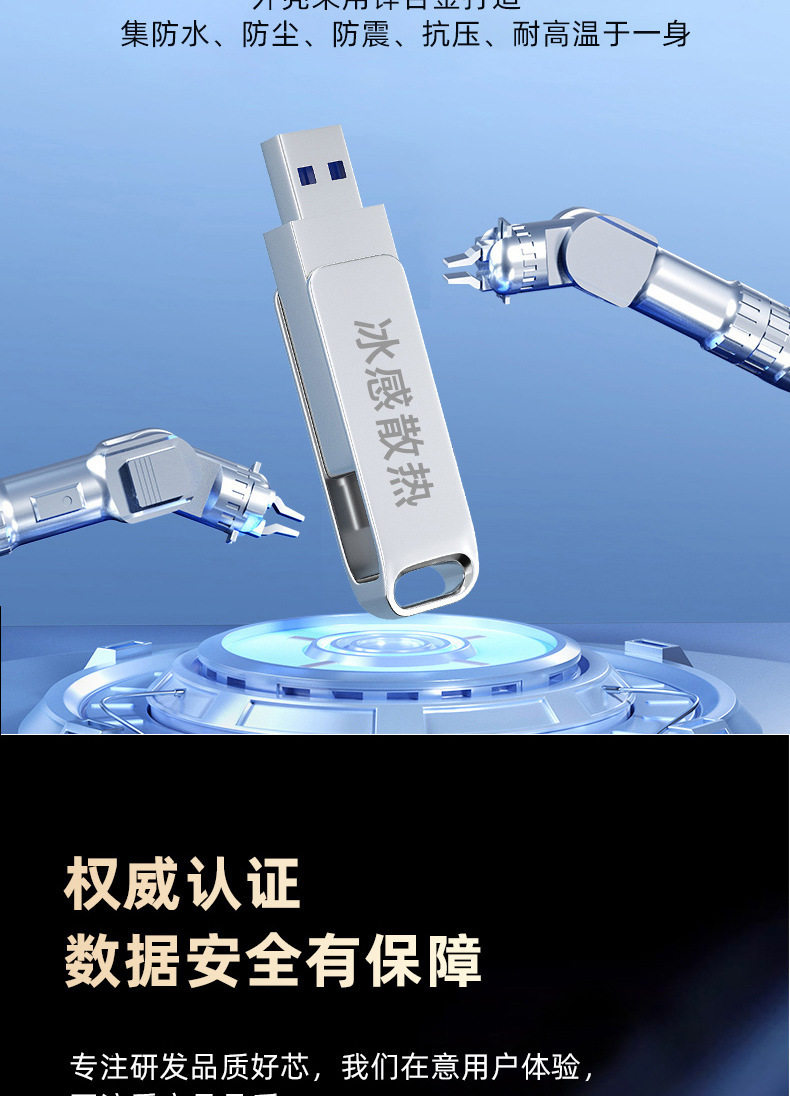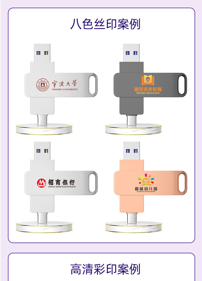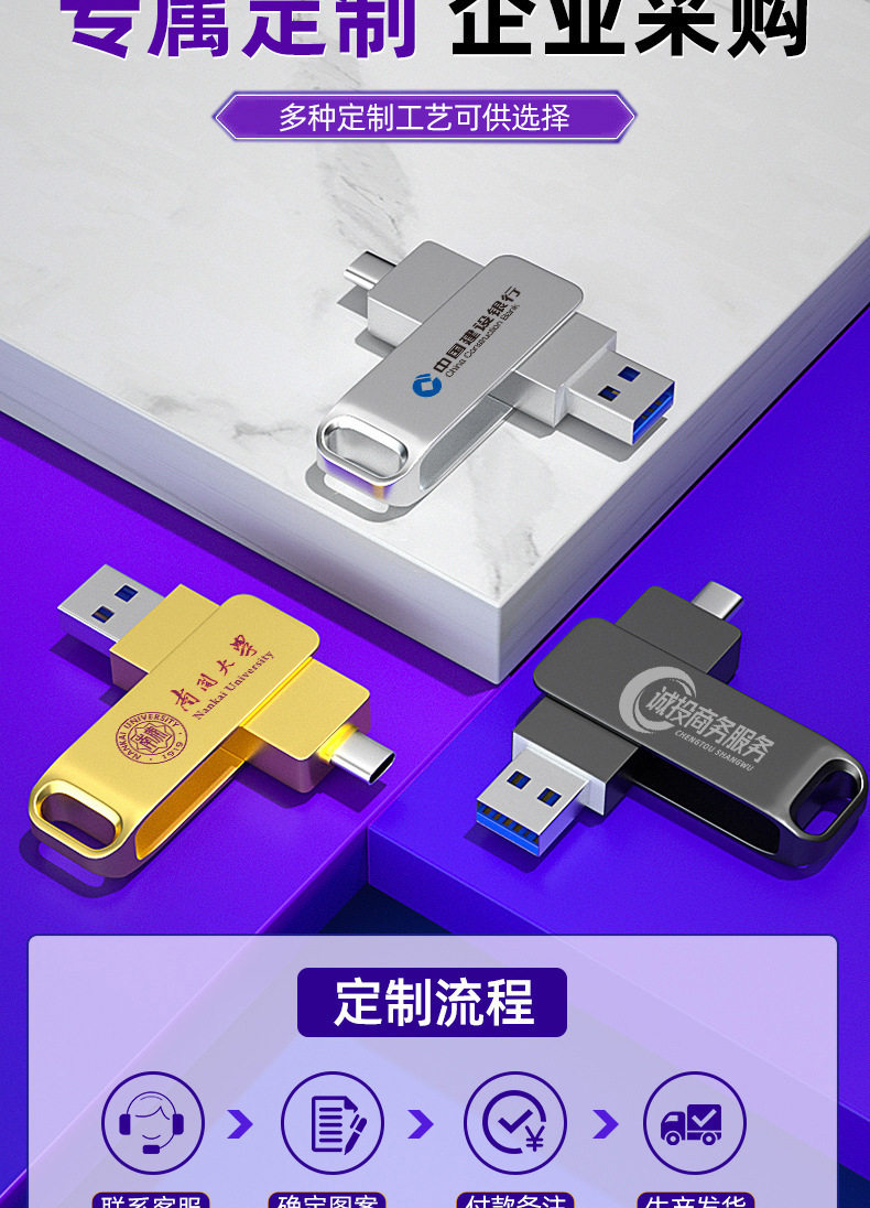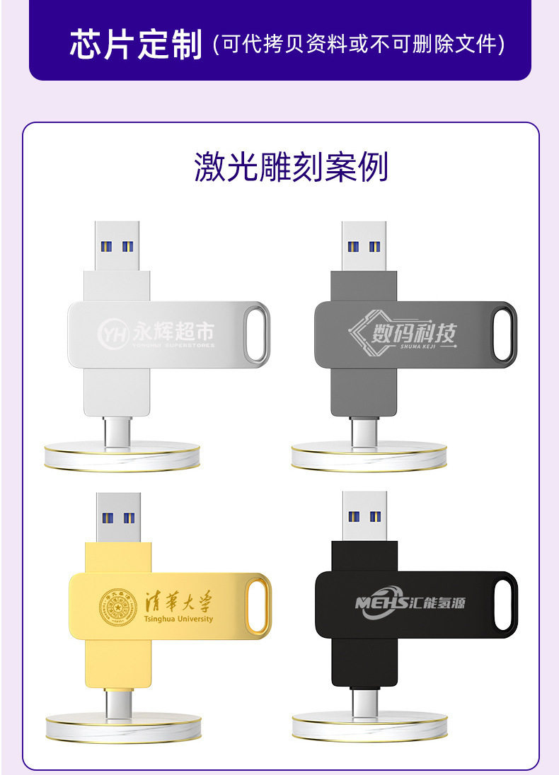 Metal Rotating USB Flash Drive with Logo Printed on It Type-C Mobile Phone USB Flash Drive Computer High Speed 128g Large Capacity Gift Wholesale