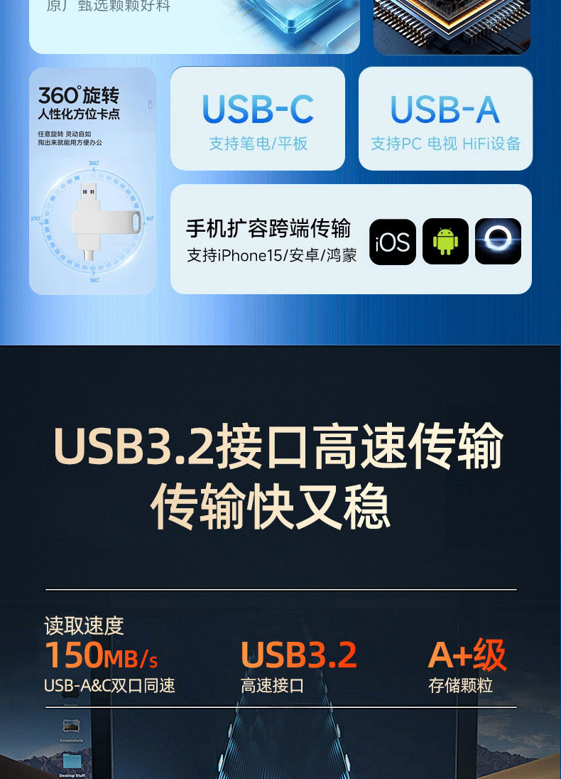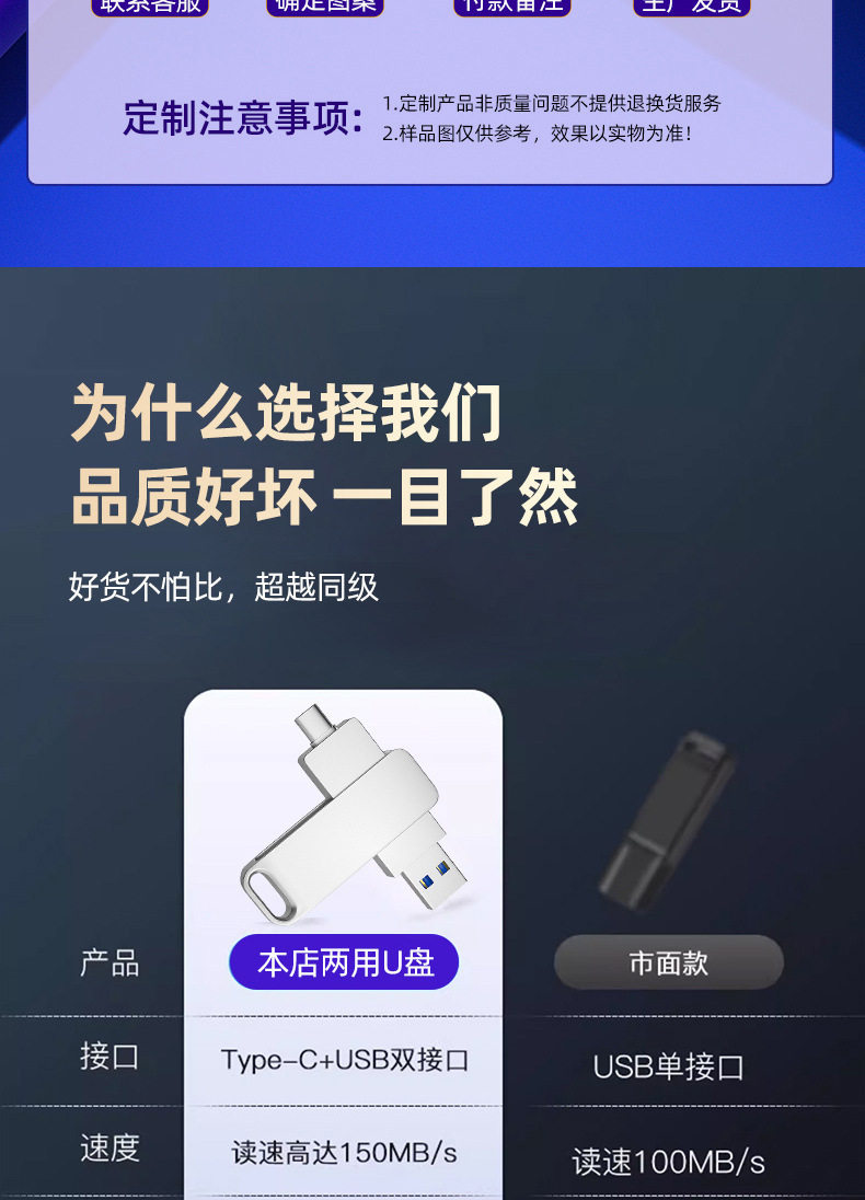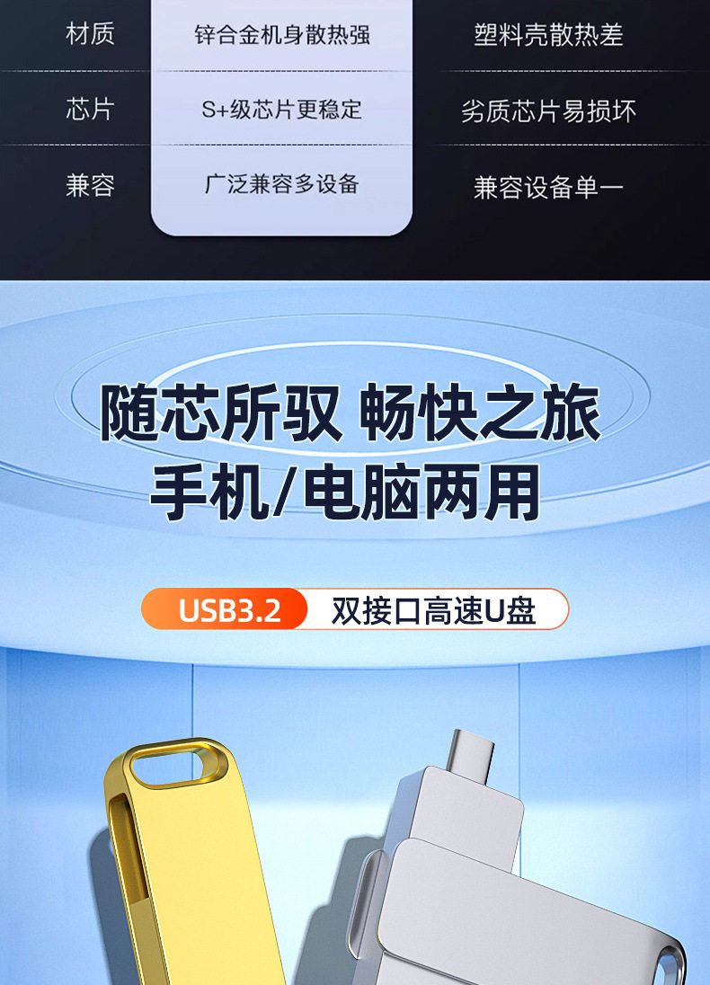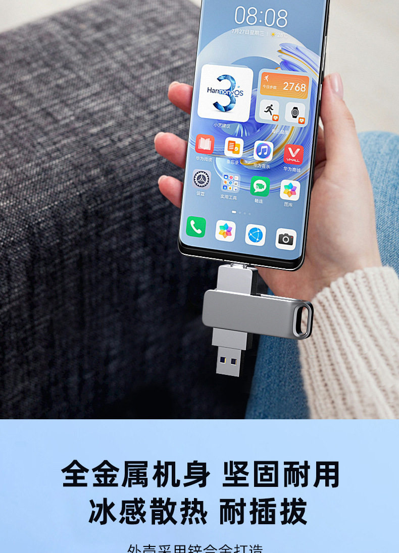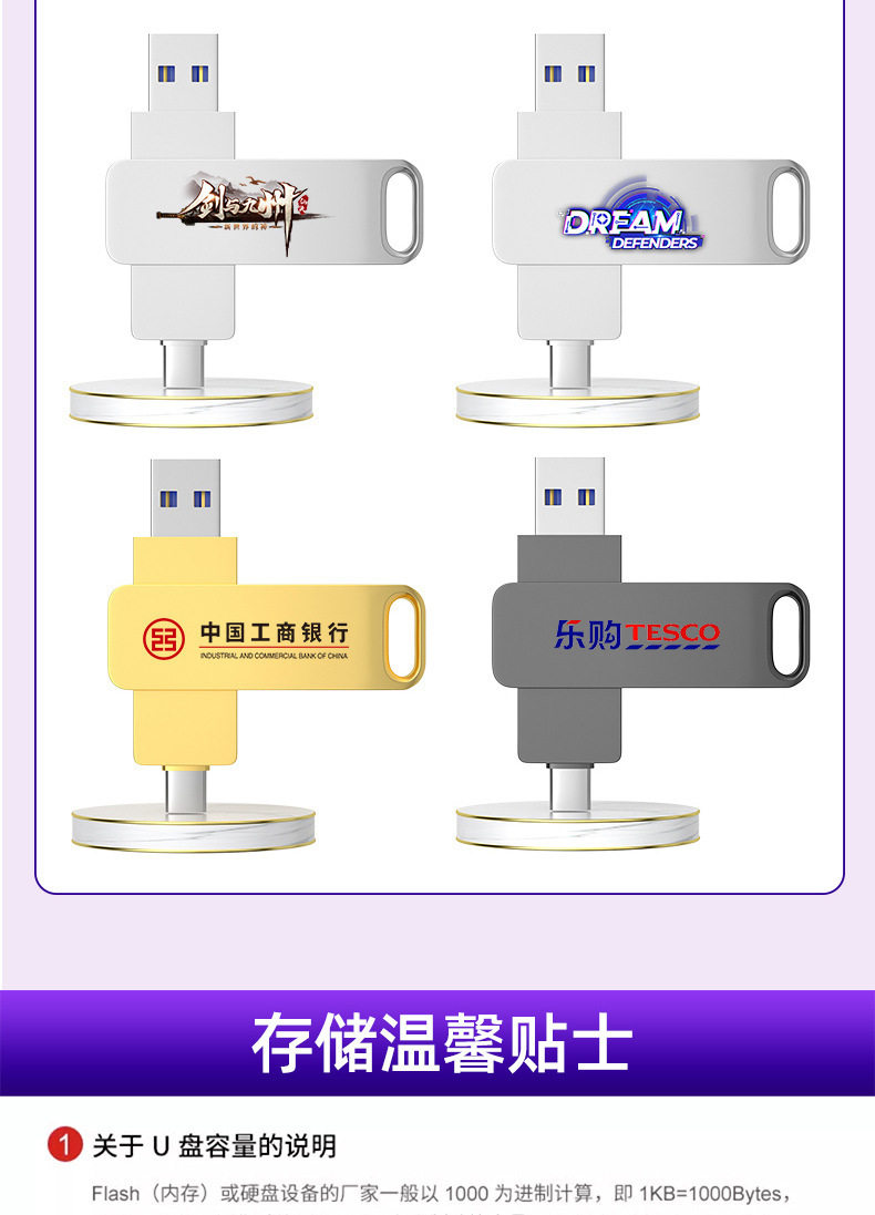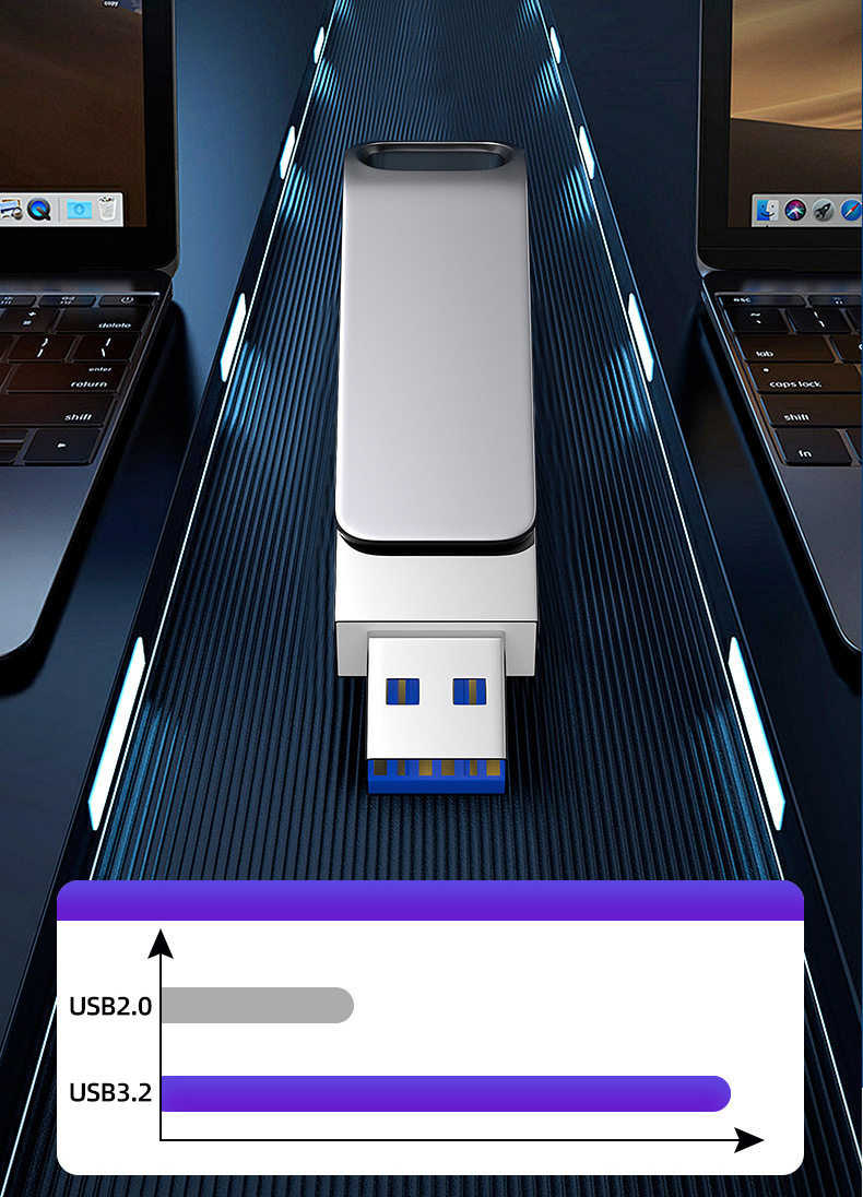 Metal Rotating USB Flash Drive with Logo Printed on It Type-C Mobile Phone USB Flash Drive Computer High Speed 128g Large Capacity Gift Wholesale