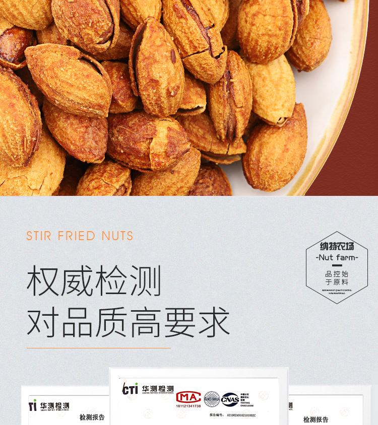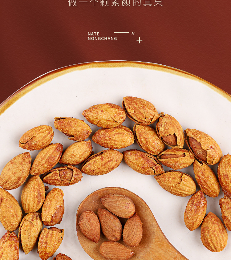 | Raw materials and ingredients | Almond raw materials, edible salt, white sugar, monosodium glutamate, natural spices, food additives (cyclamate, acesulfame potassium, saccharin sodium, aspartame |