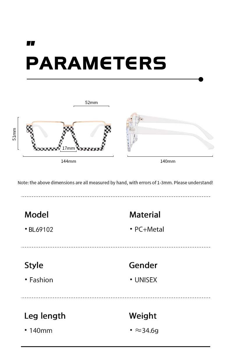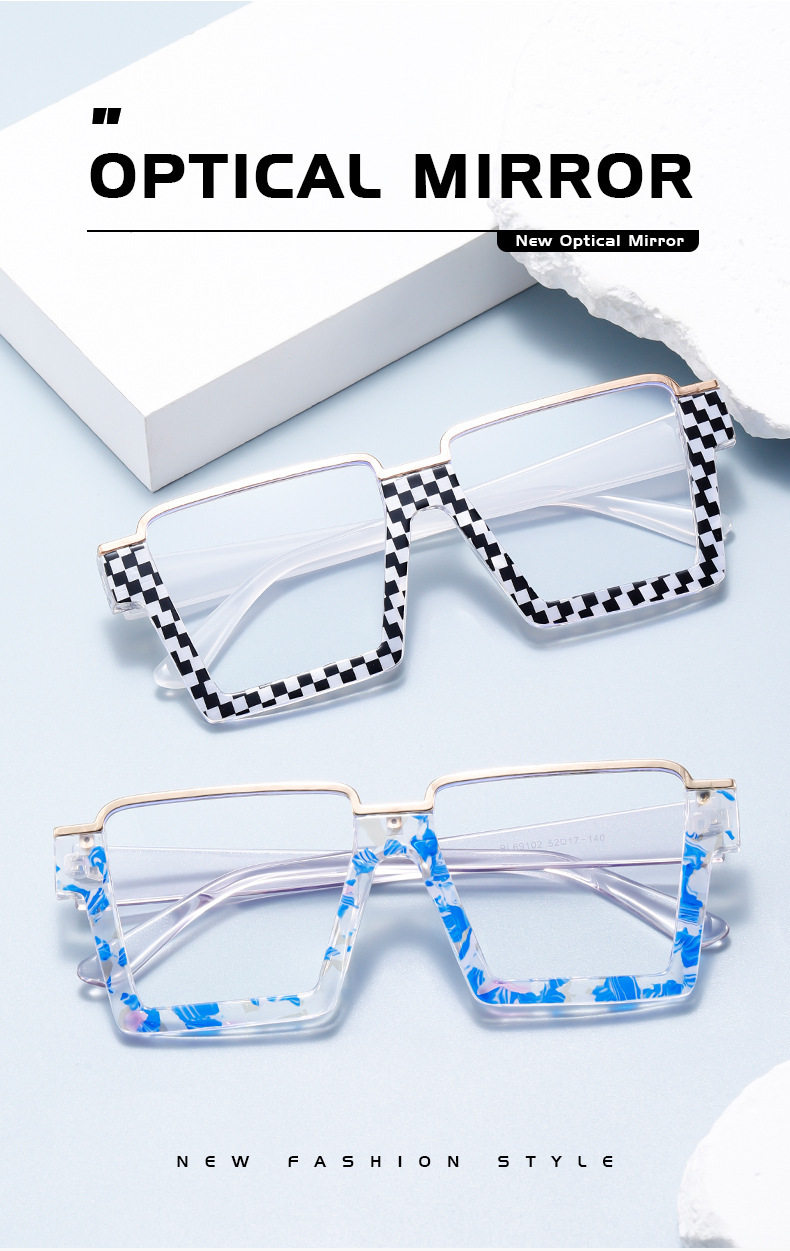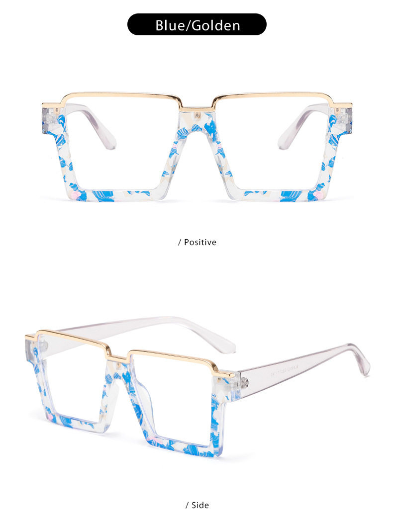 Trendy European and American Fashion Anti-Blue Light Glasses Frame Lower Half Frame Square Large Frame Non-Prescription Glasses Ins Internet Celebrity Style Glasses Frame