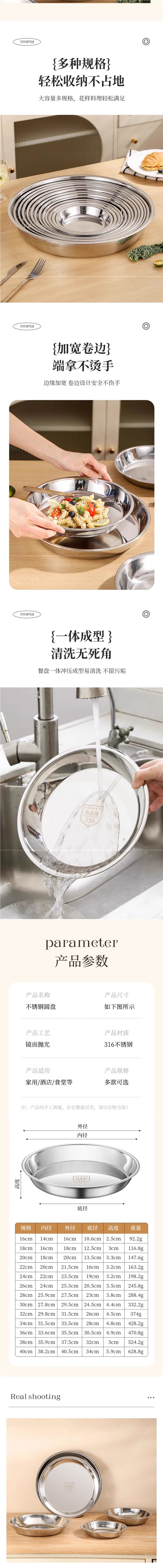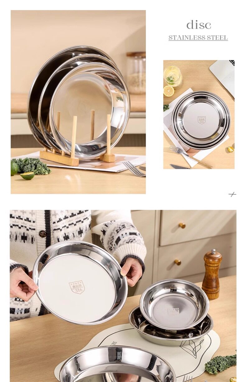 316 Stainless Steel Plate Food Grade Plate Household Preparation Plate Round Plate Dinner Plate Tableware Z^