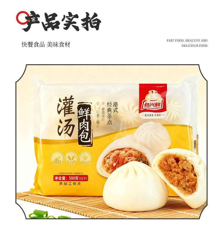 Bao Xing Xian Fresh Meat Buns with Soup 500g 12 Pieces Cantonese-Style Breakfast Dim Sum Frozen Semi-Finished Product