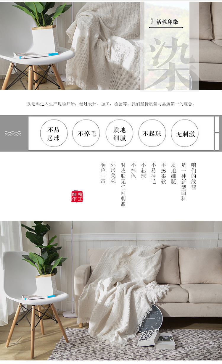 Scandinavian Simple Cotton Mesh Knitted Thread Blanket Sofa Blanket Nap Sofa Cover Blanket Double-Sided Travel Blanket