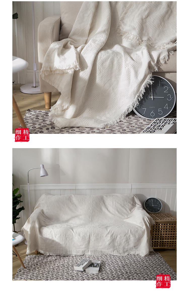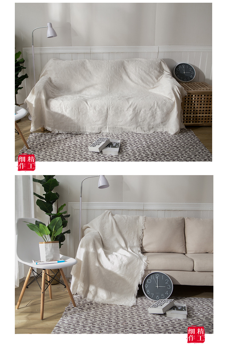 Directly Supplied White Rhombus Dark Flower Sofa Blanket Sofa Towel European Style Non-Slip Fabric Sofa Cushion Sofa Cover All-Inclusive Blanket