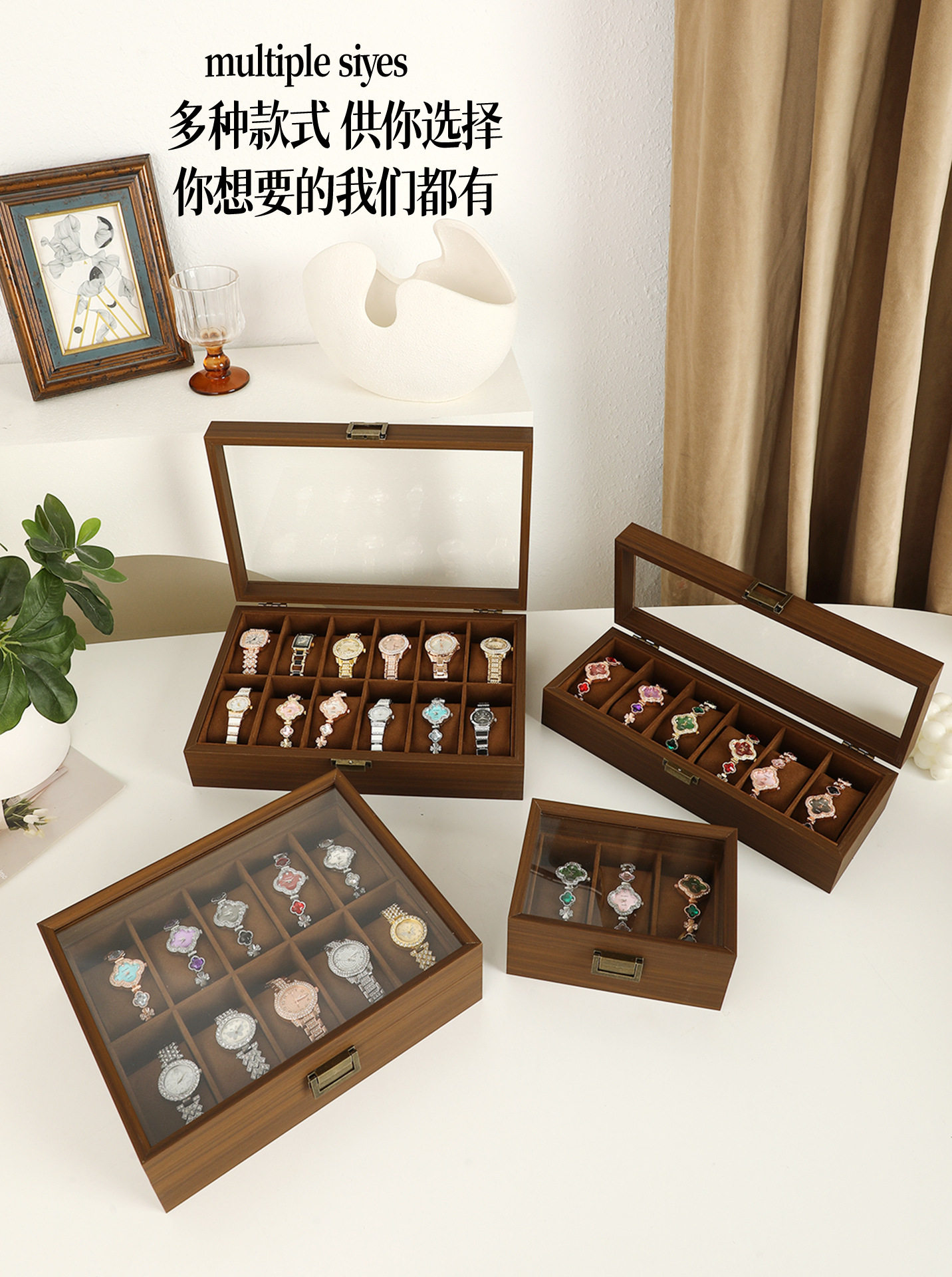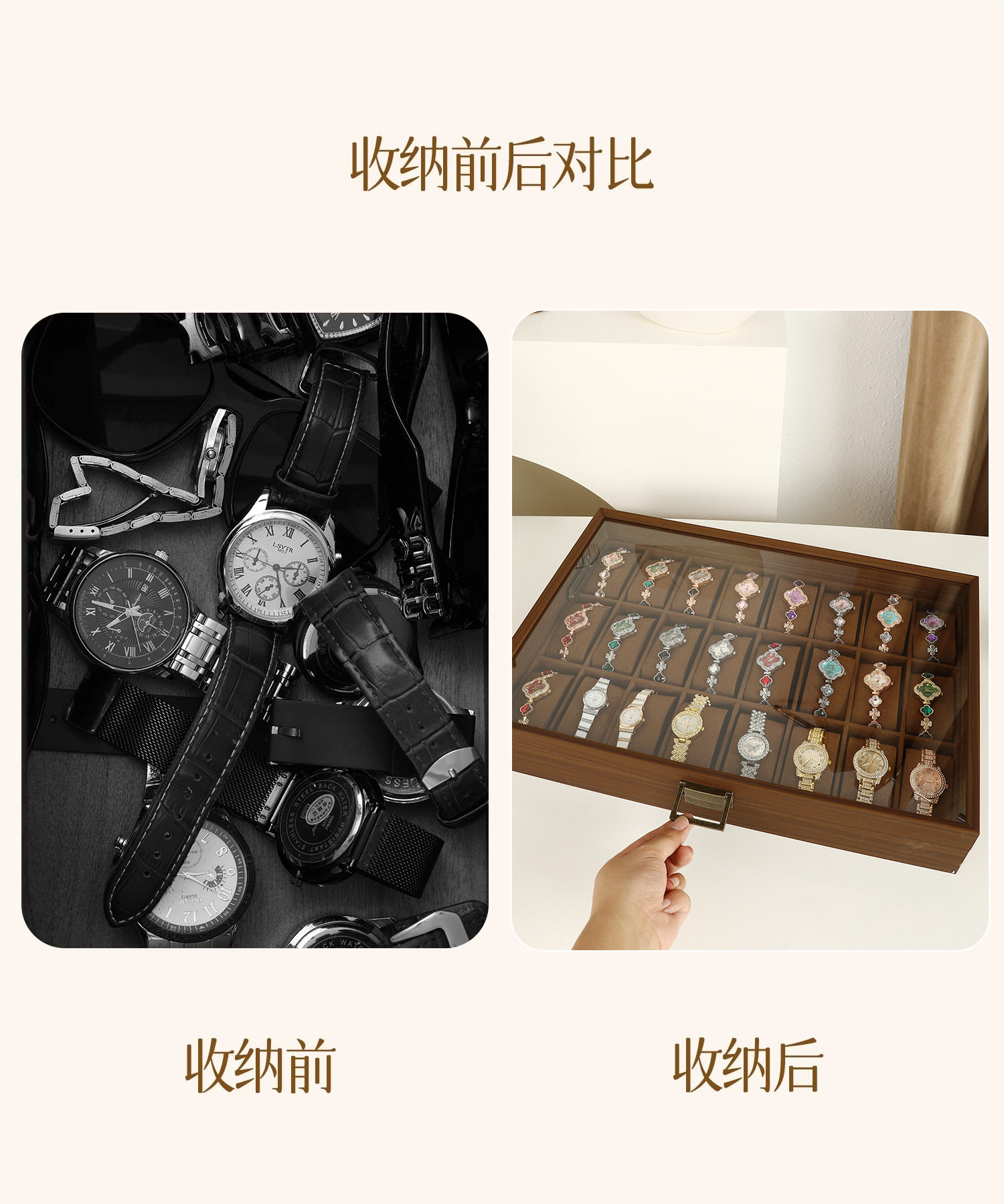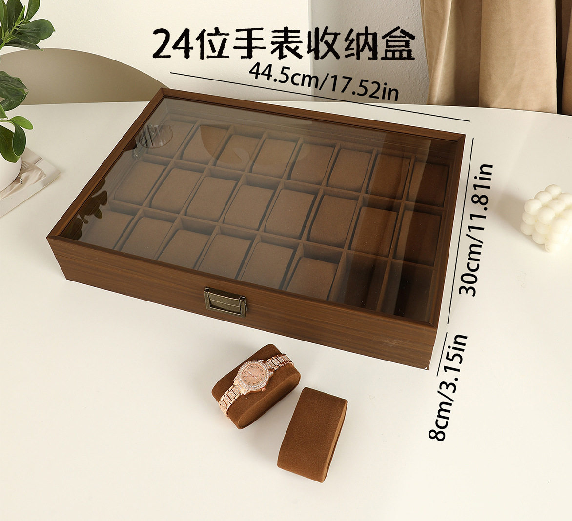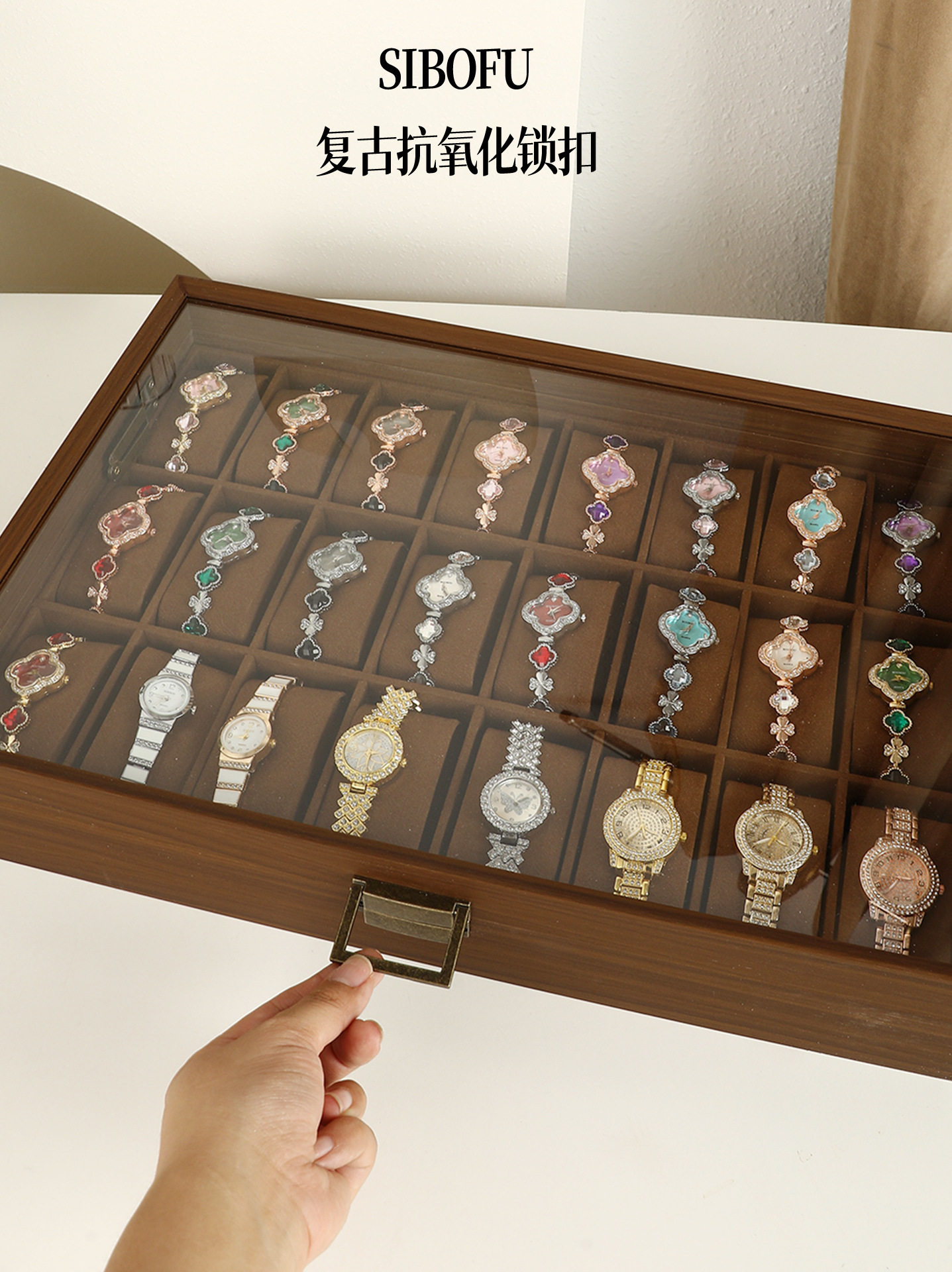 Walnut Wood Grain Wooden Watch Box Large Capacity 24-Bit Watch Storage Display Box Collection Box Skylight Watch Box Retro