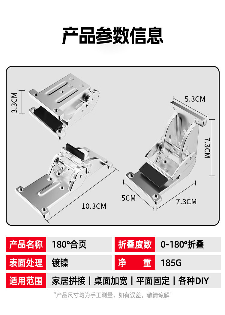 Cross-Border Folding Self-Locking Double-Brake Hinge 90-Degree 180-Degree Hinge Furniture Folding Lock Computer Desk Multi-Functional Hinge