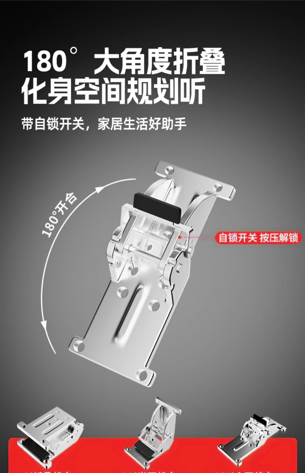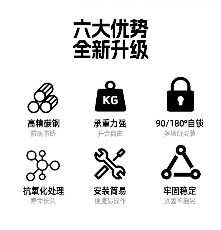 | Specifications | 90 degree folding self-locking hinge-black,90 degree folding self-locking hinge-color plated,90 degree folding self-locking hinge-galvanized,180 degree folding self-locking hinge-black,180 degree folding self-locking hinge-color plated,180 degree folding self-locking hinge-galvanized |