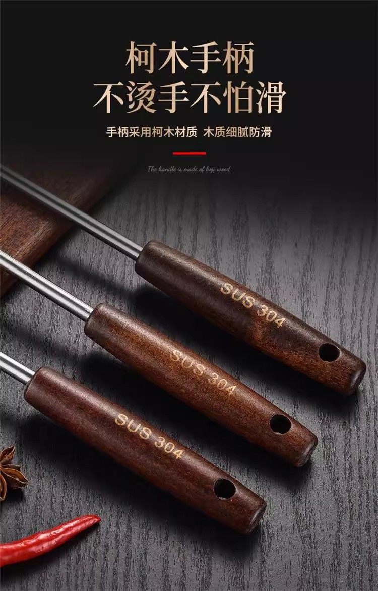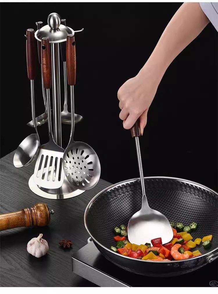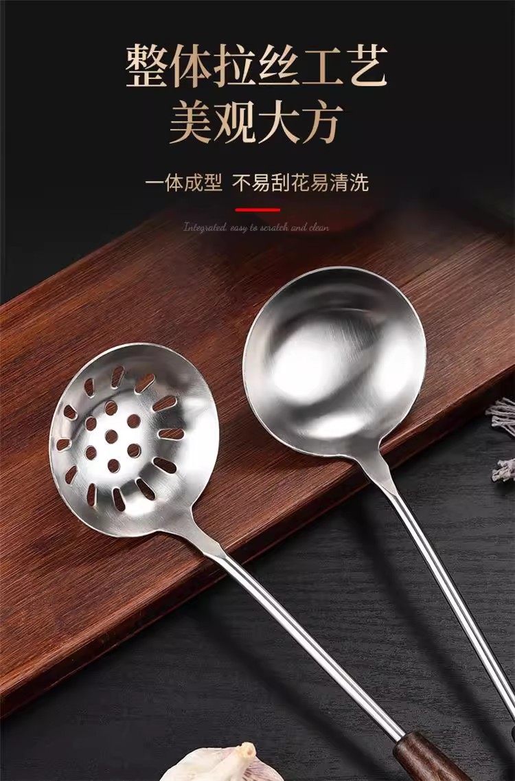 Peach Wood Stainless Steel Spatula for Home Kitchen Cooking, Thickened Iron Spatula, Frying Spatula, Colander with Wooden Handle, Anti-Scald Kitchen Utensil Set