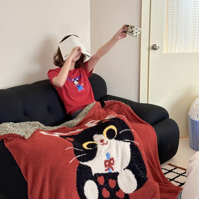 Cartoon American Cute Pet Cat Multifunctional Knitted Half Blanket Blanket Lunch Break Blanket Cover Blanket Thickened Blanket Bedroom