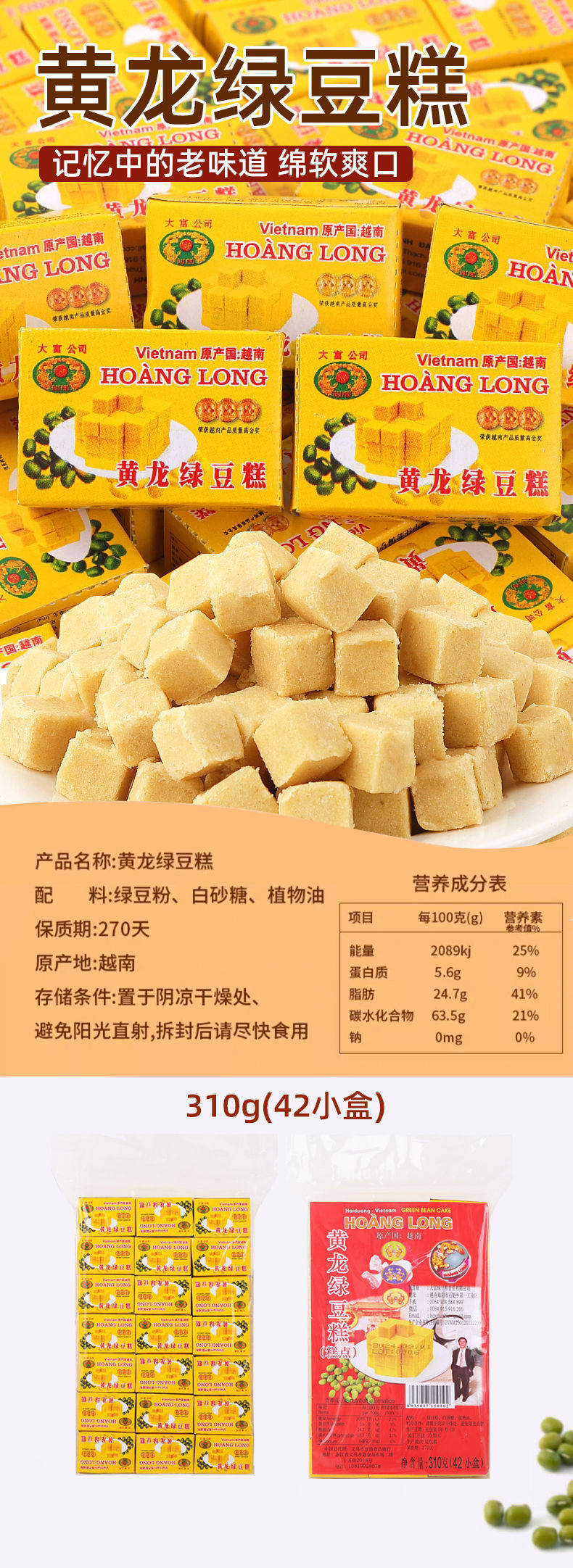 Authentic Huanglong Mung Bean Cake Old-Fashioned Traditional Specialty Snacks Casual 8090 Nostalgic Snacks Snacks Imported from Vietnam