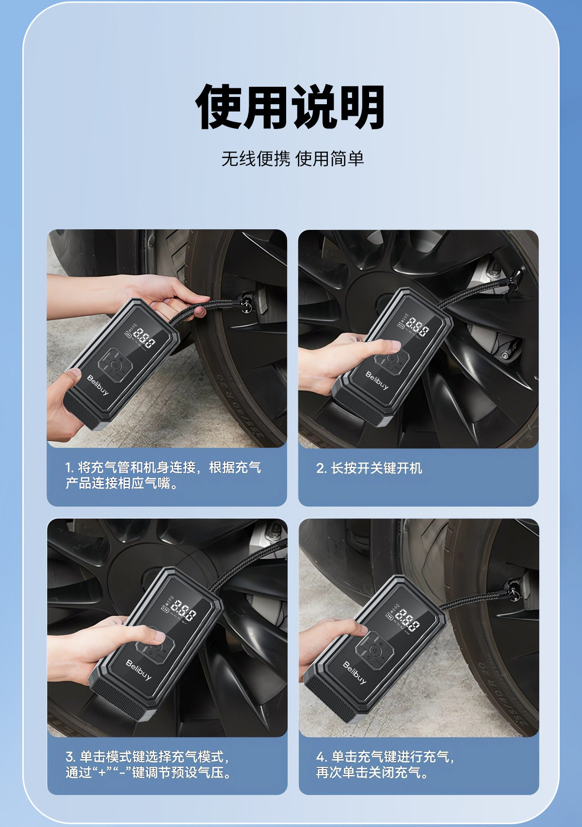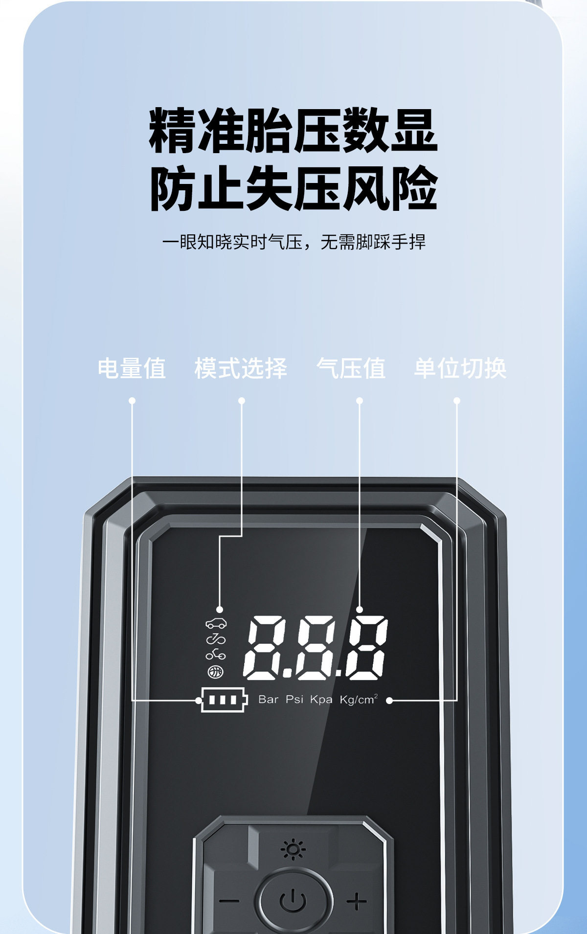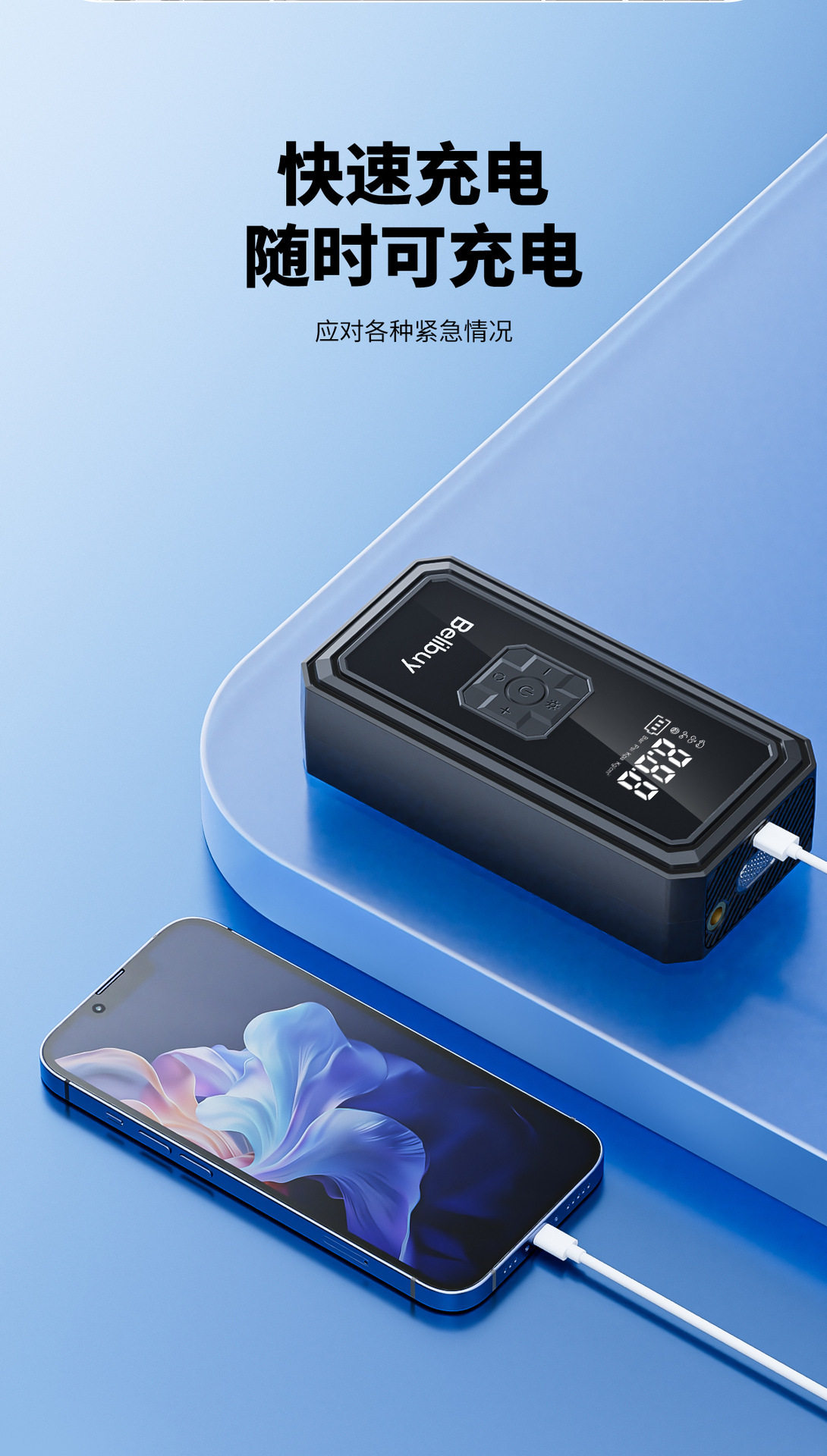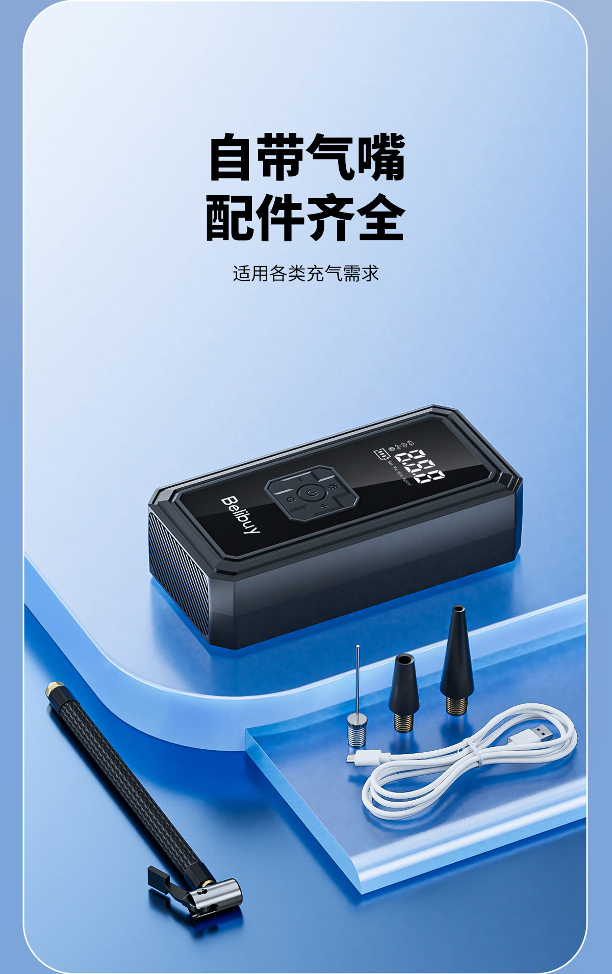 | Specifications | Digital display super fast charging air pump |