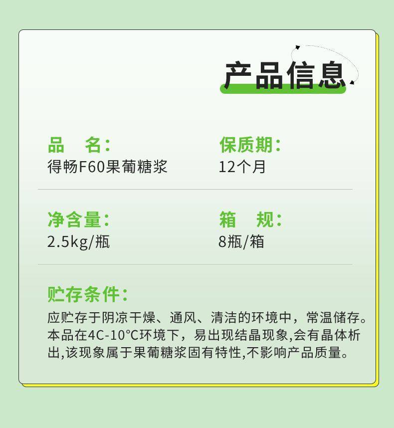 | Packaging specifications | Fructose syrup 2.5kg*1 bottle,Fructose syrup 2.5kg*2 bottles |
