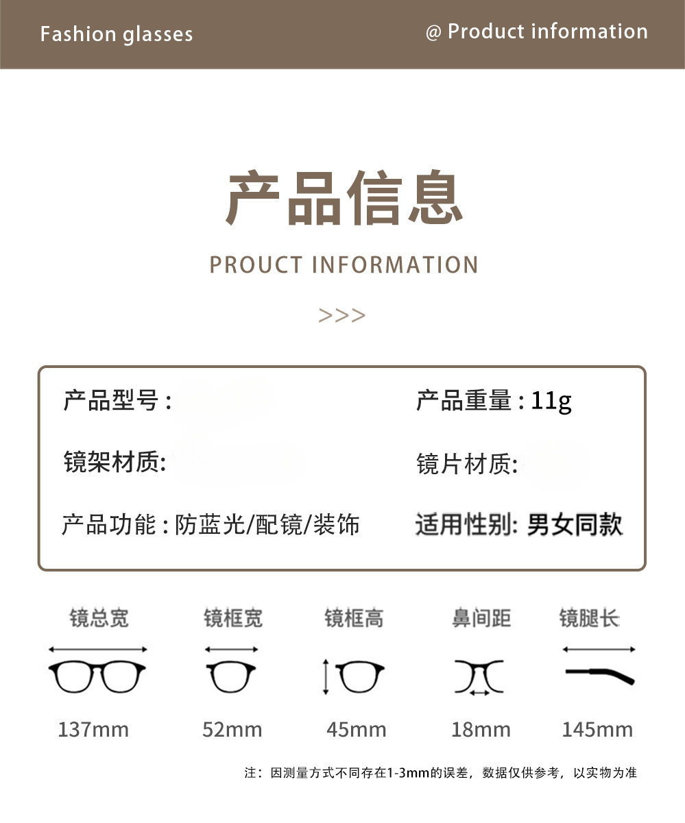 | Frame color | Black silver,Jasmine green,Transparent brown,Transparent gray |
