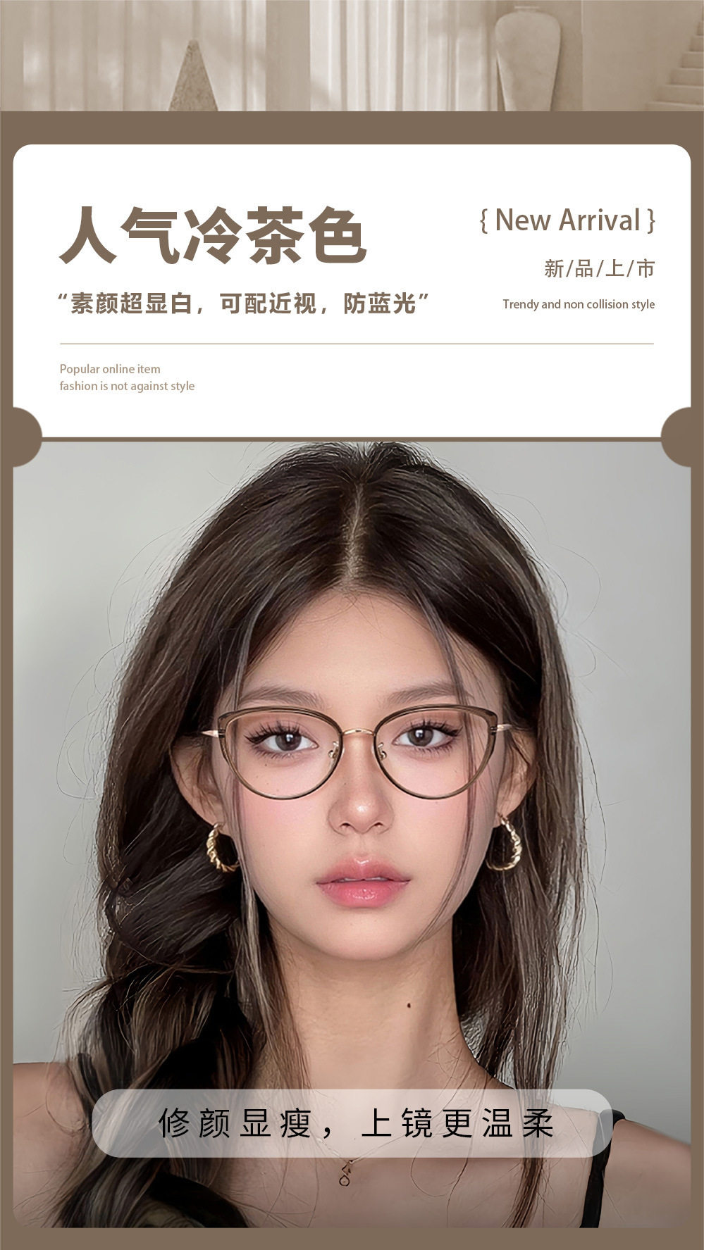 Women's Cold Frame Glasses for Myopia, High-End Brown Modern Style with Ultra-Light Glasses Frame, Cat-Eye American Retro