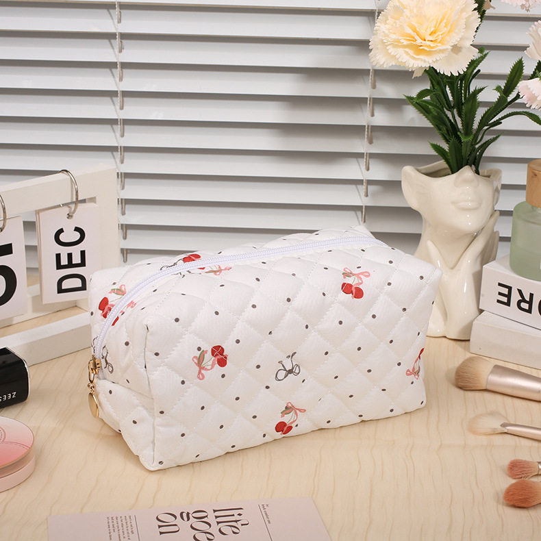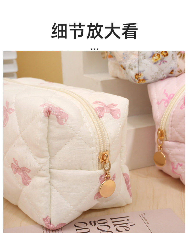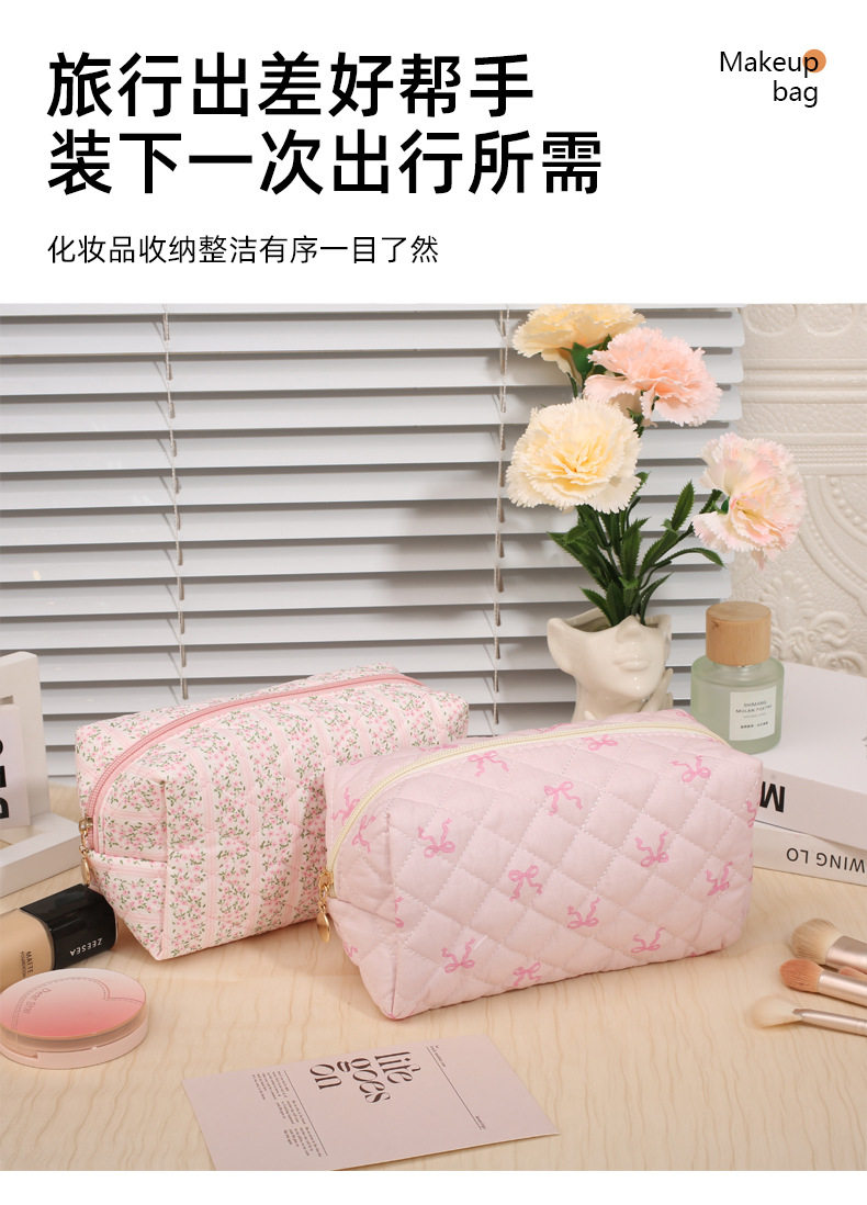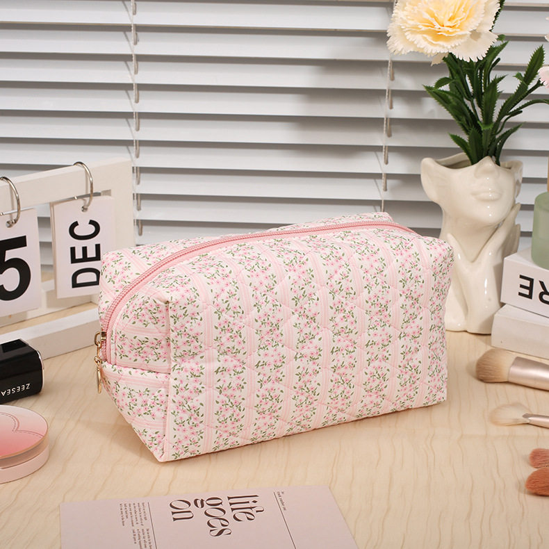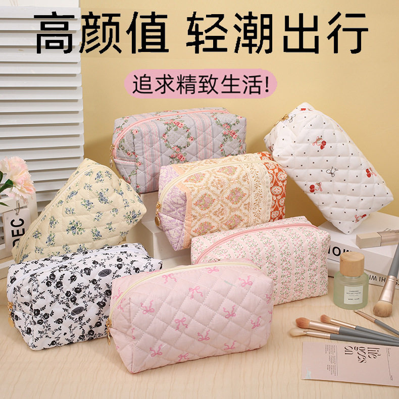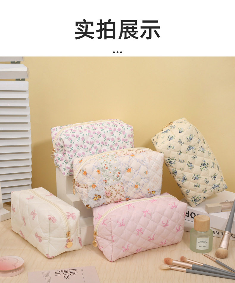 Floral Quilted Cosmetic Bag Women Portable Lipstick Makeup Brush Storage Bag Earphone Data Cable Wallet Student Pencil Case