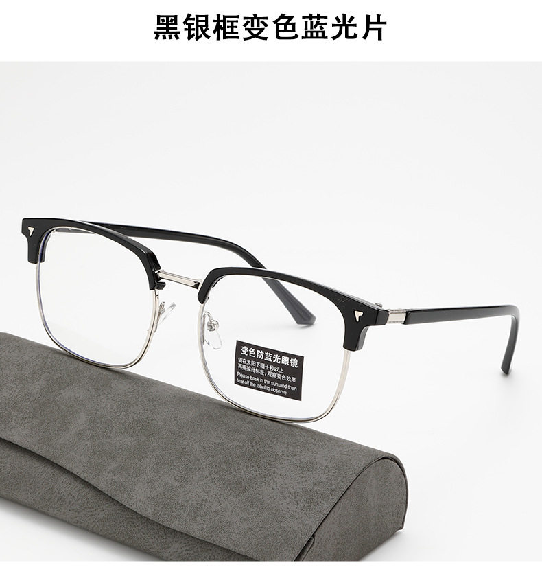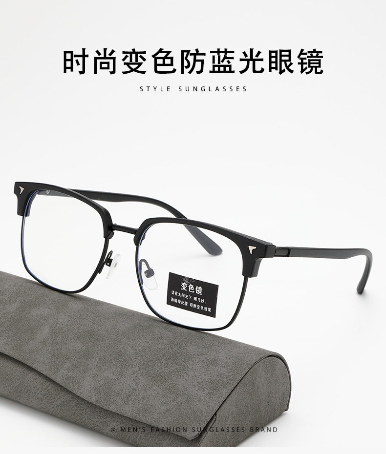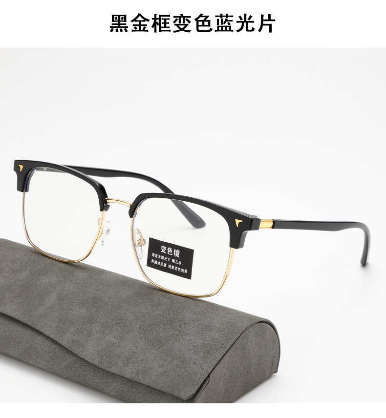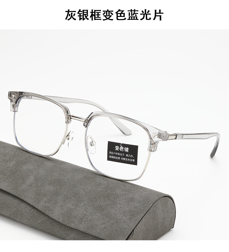 Cross-Border New Men's Retro Half-Frame Glasses with Gray Eyebrow Line Large Frame Anti-Blue Light Glasses for Women with Color-Changing Frames