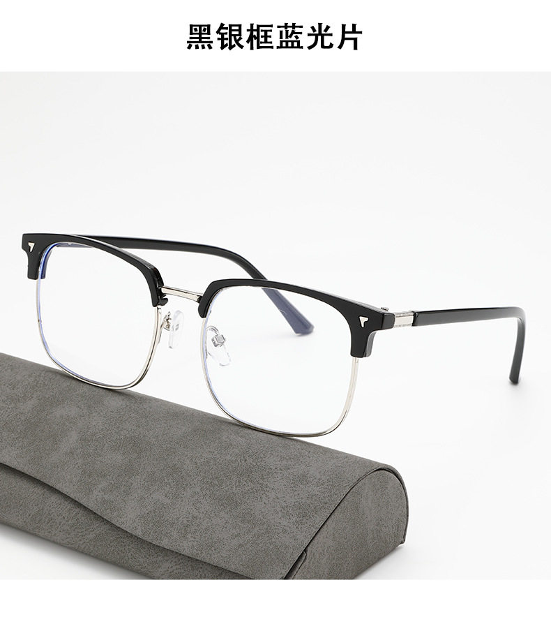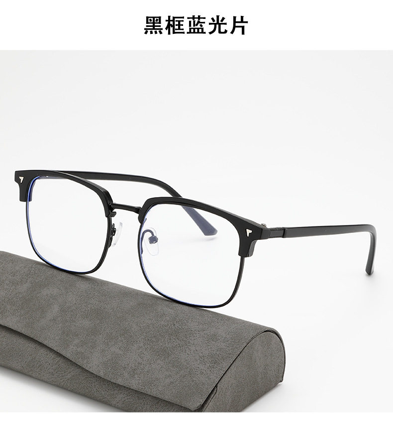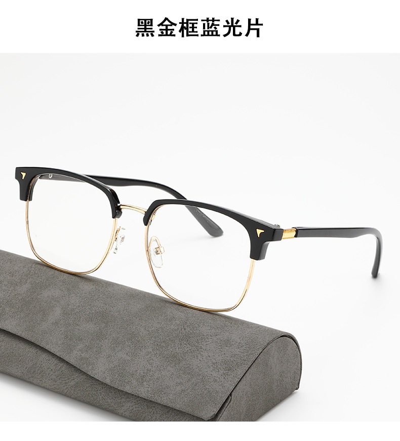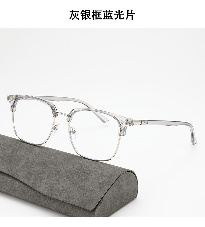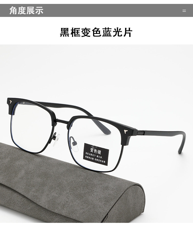 Cross-Border New Men's Retro Half-Frame Glasses with Gray Eyebrow Line Large Frame Anti-Blue Light Glasses for Women with Color-Changing Frames