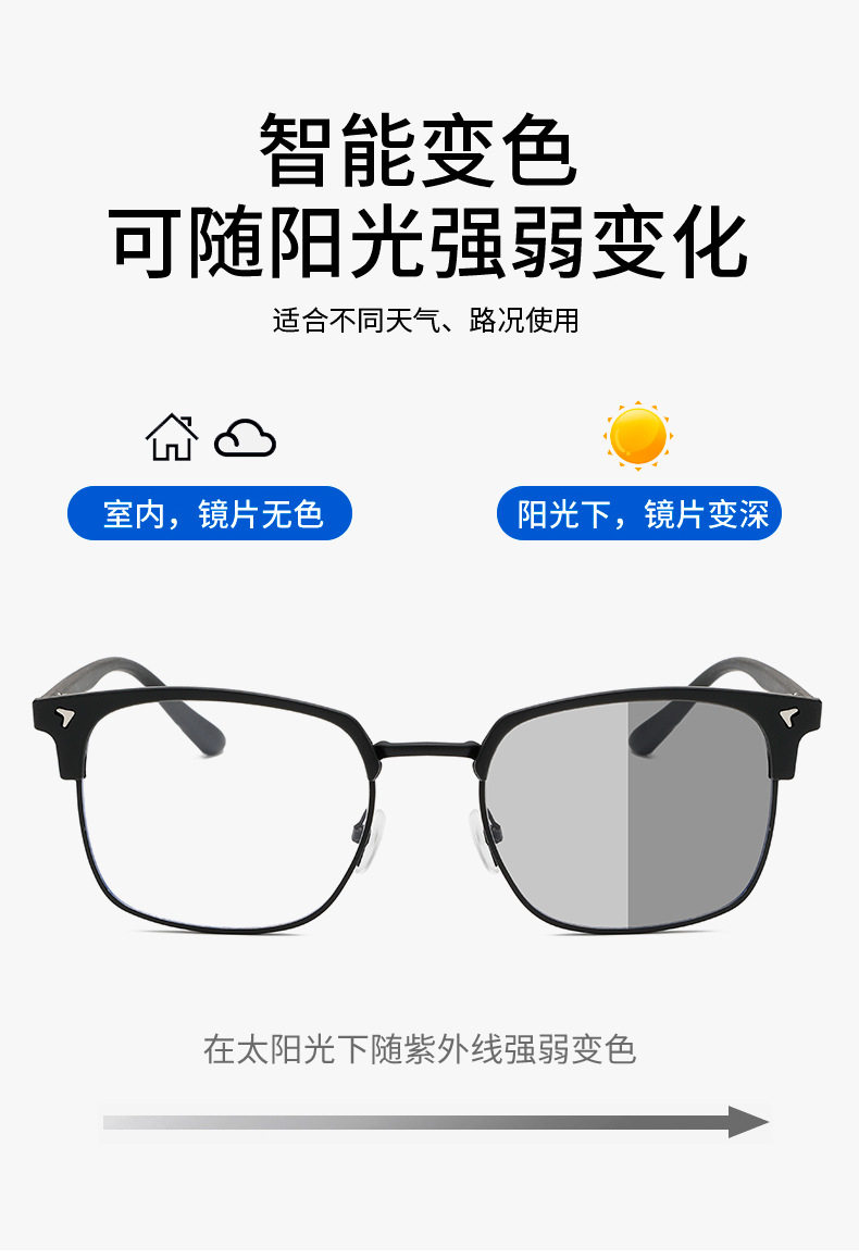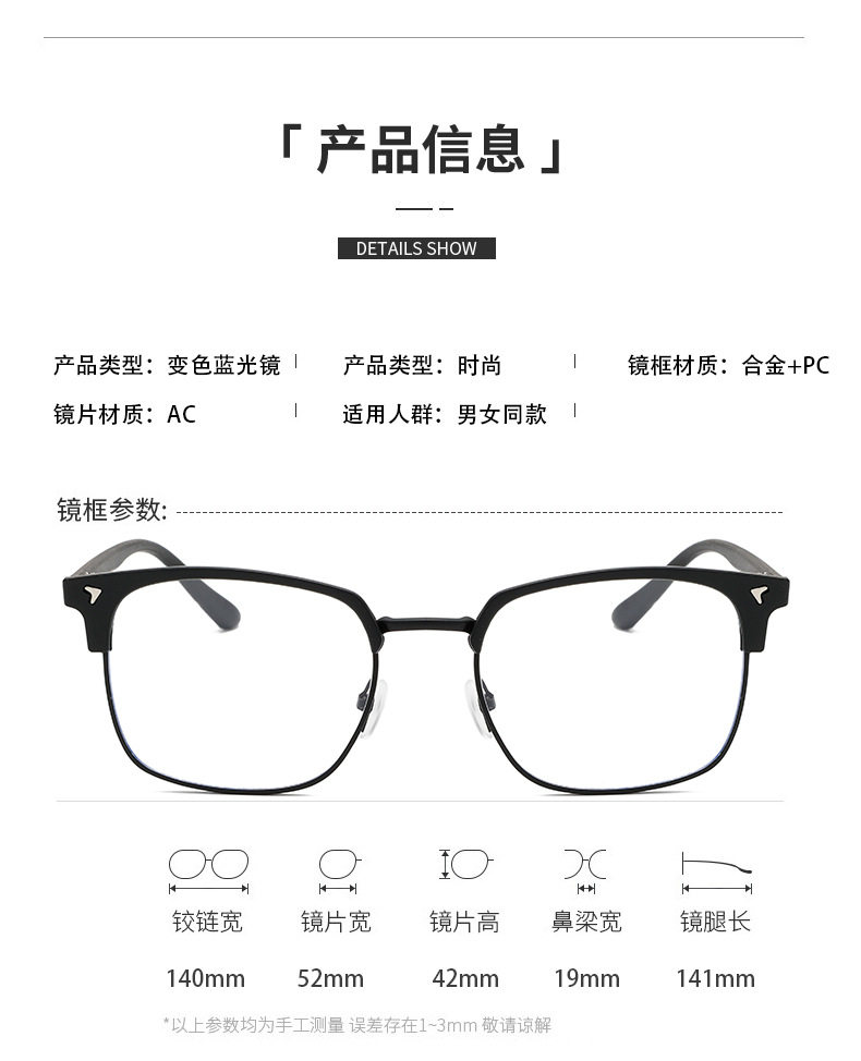 | Frame color | Sand black frame,Bright black silver frame,Bright black gold frame,Transparent gray silver frame |