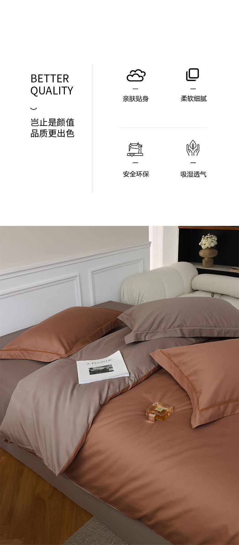 Light Luxury 100-Count Long-Staple Cotton Four-Piece Set, Class a Pure Cotton Bed Sheet and Duvet Cover, High-End Home Textile Pure Cotton Three-Piece Bedding Set for Women