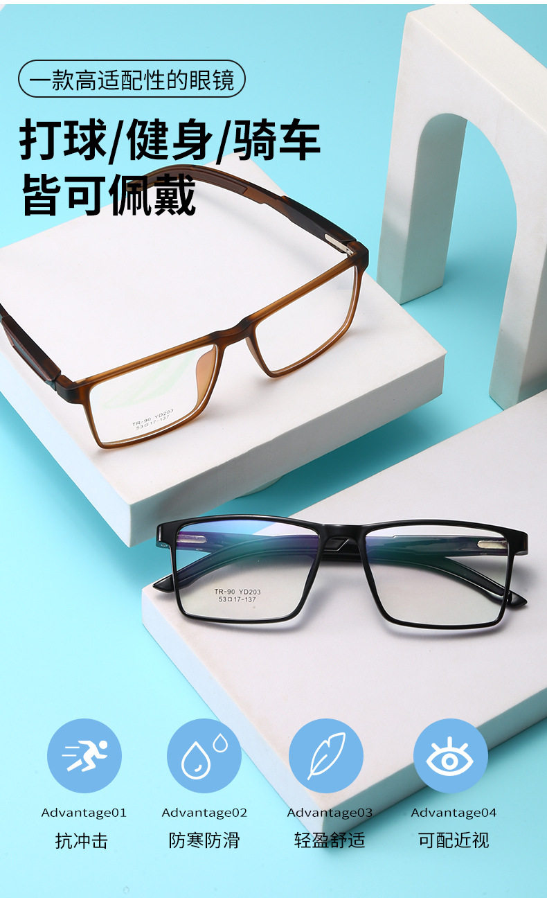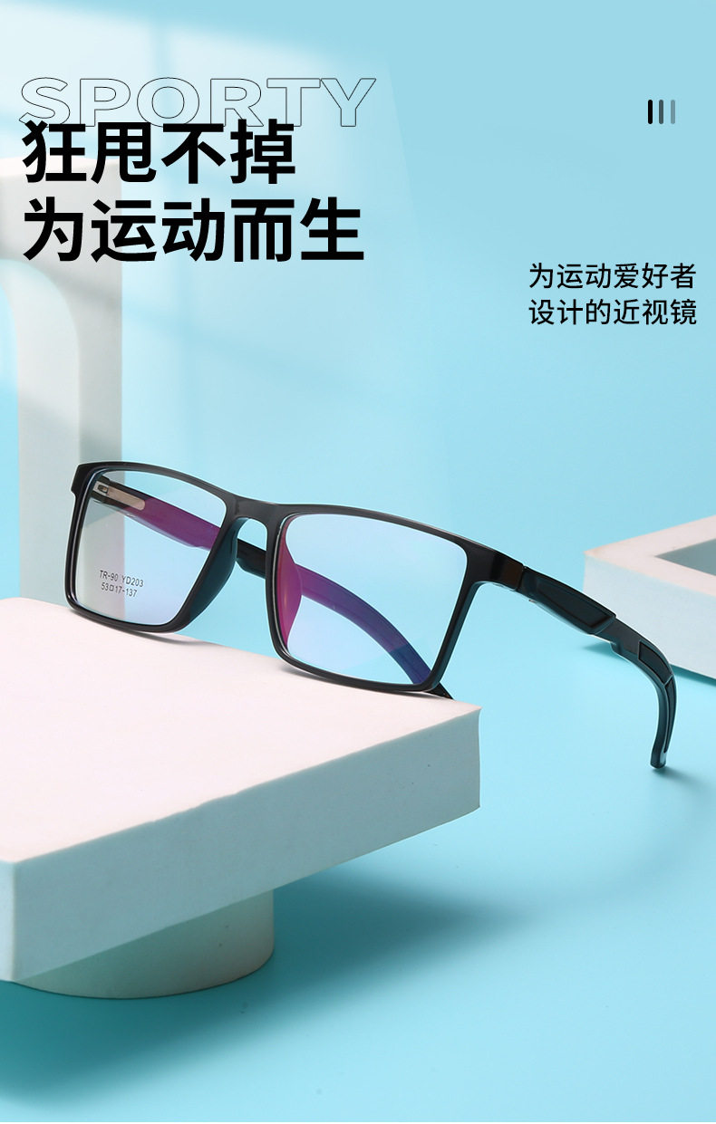 New Simple Ultra-Light Sports Style Glasses for Men Tr Glasses Frame Retro Can Be Equipped with Myopia Glasses for Women in Stock Yd208