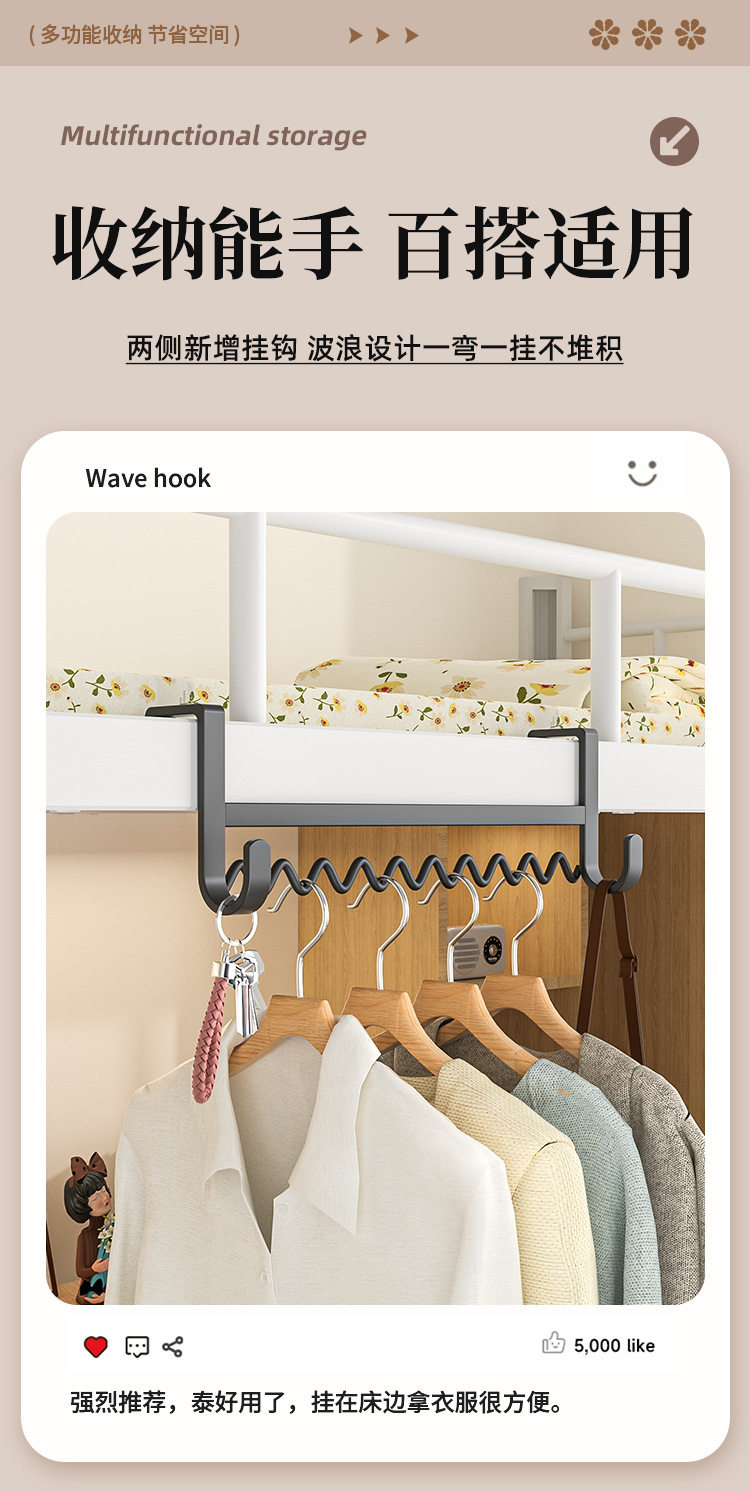 Dormitory Clothes Hanging Artifact, Wavy Clothes Hanger, Dormitory Goodies, Bunk Bed Bedside Hooks, Cabinet Side Clothes Hangers, Storage Racks