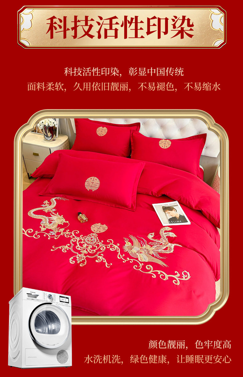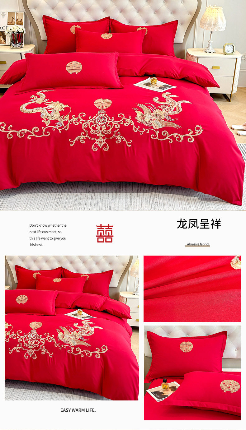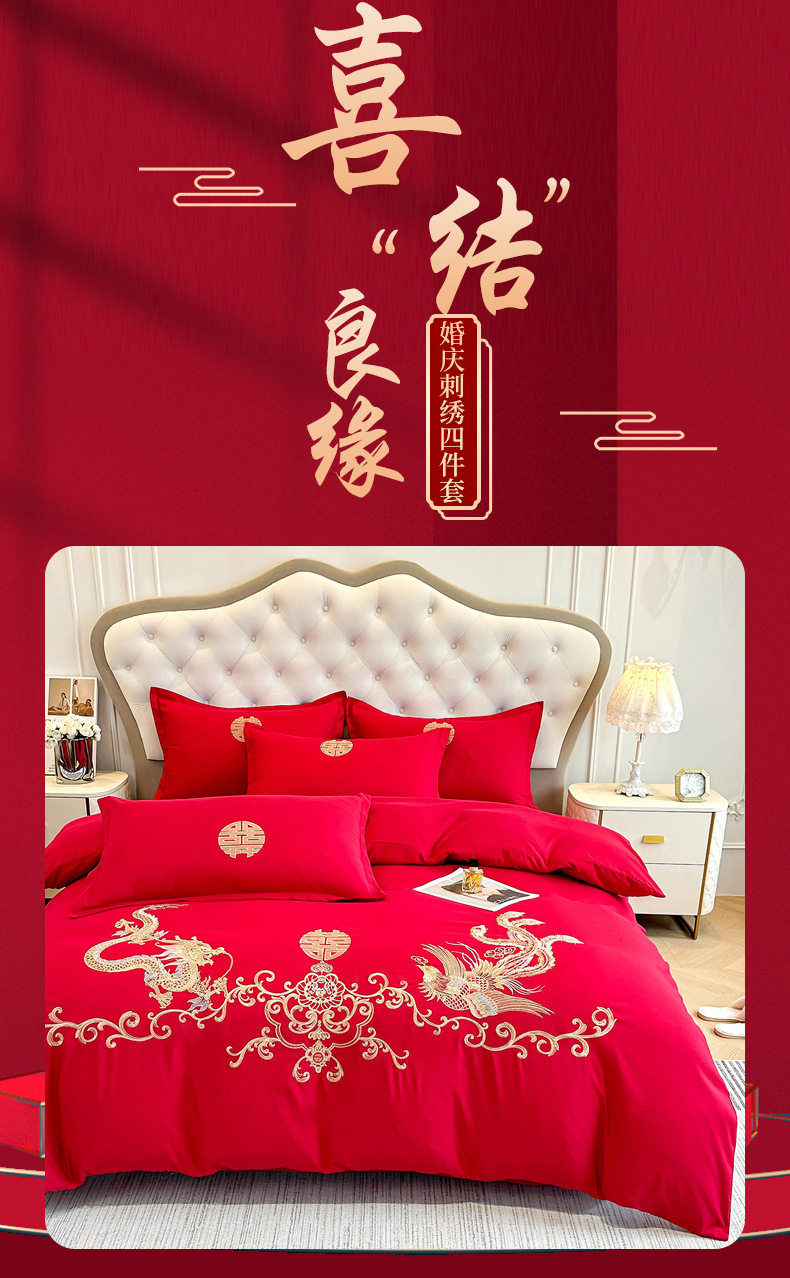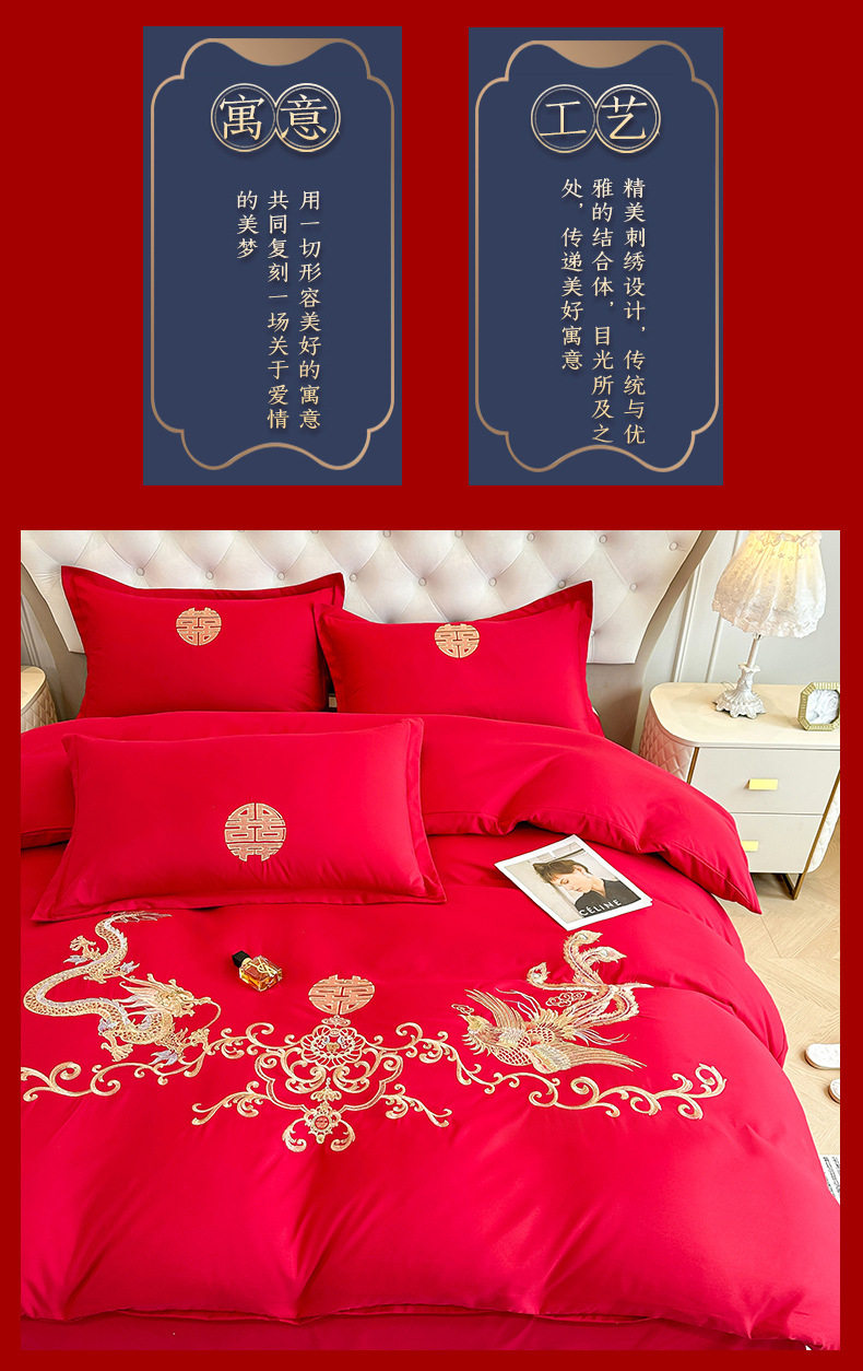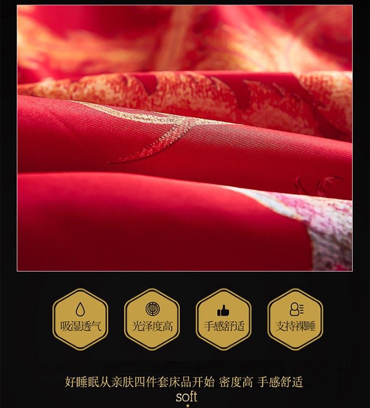 New Classy New Wedding Four-Piece Wedding Gift Set, Red Brushed Cotton Printed 4-Piece Set, Live Broadcast Hot Wholesale