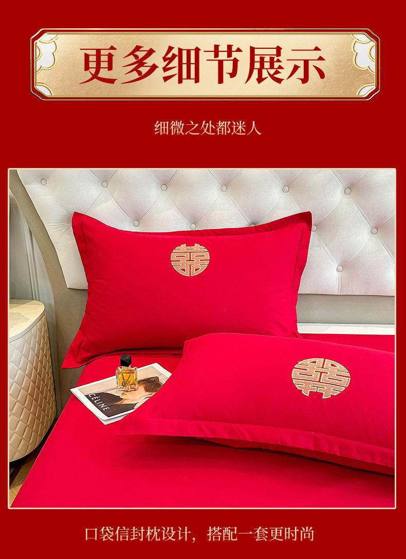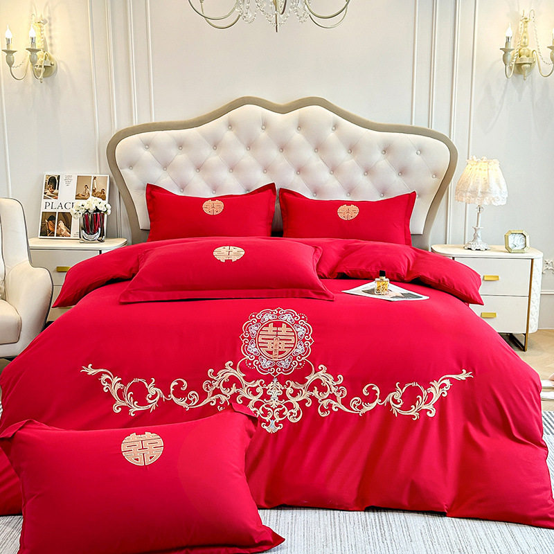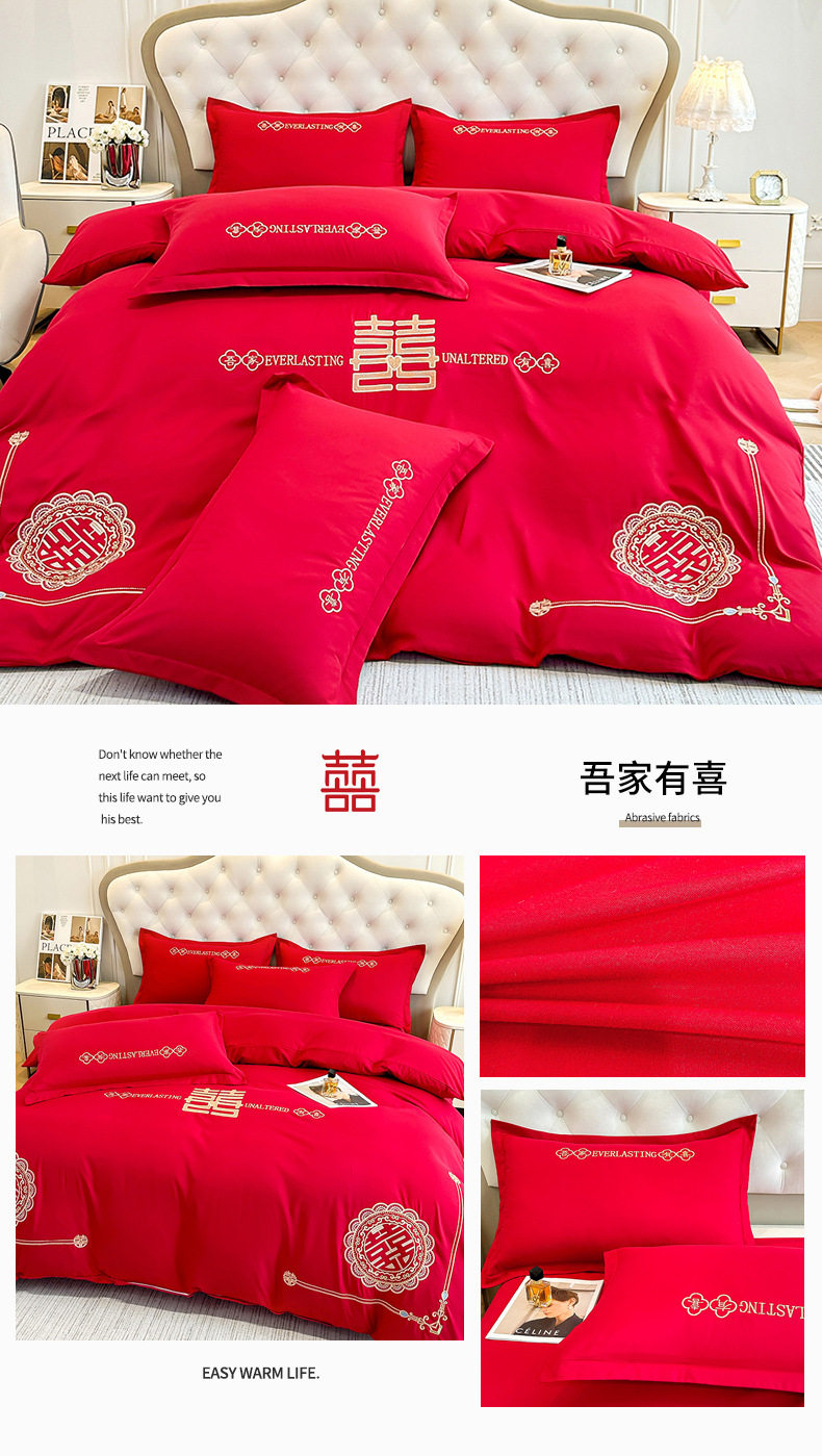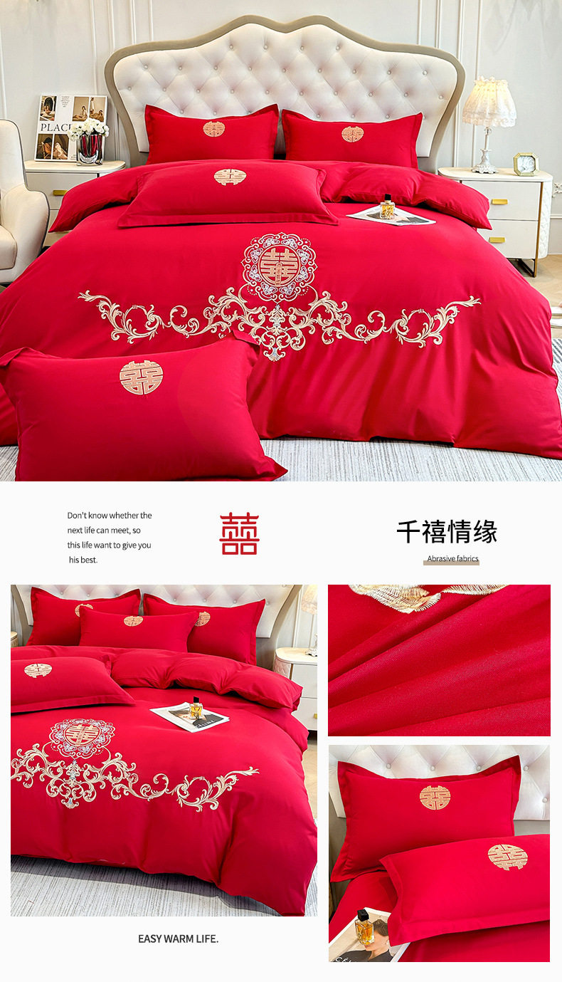 New Classy New Wedding Four-Piece Wedding Gift Set, Red Brushed Cotton Printed 4-Piece Set, Live Broadcast Hot Wholesale