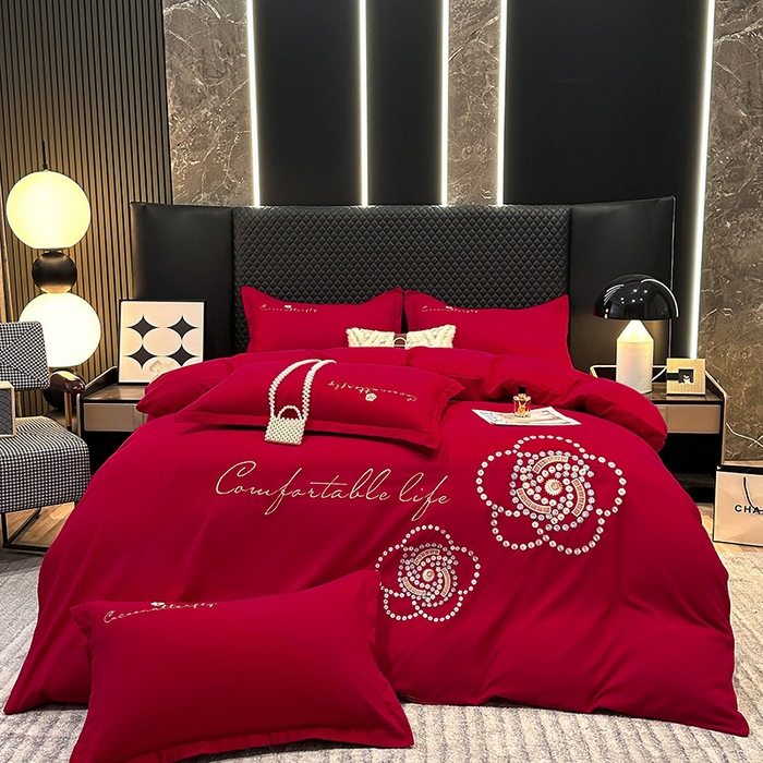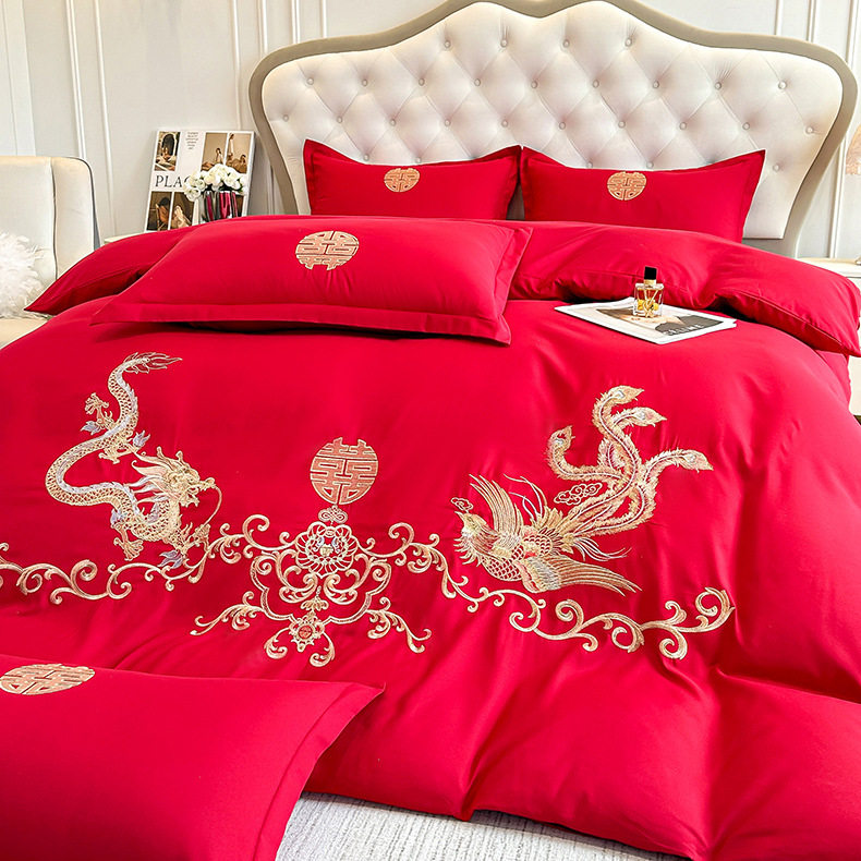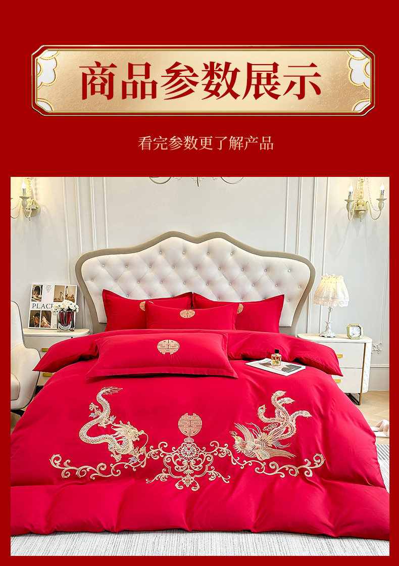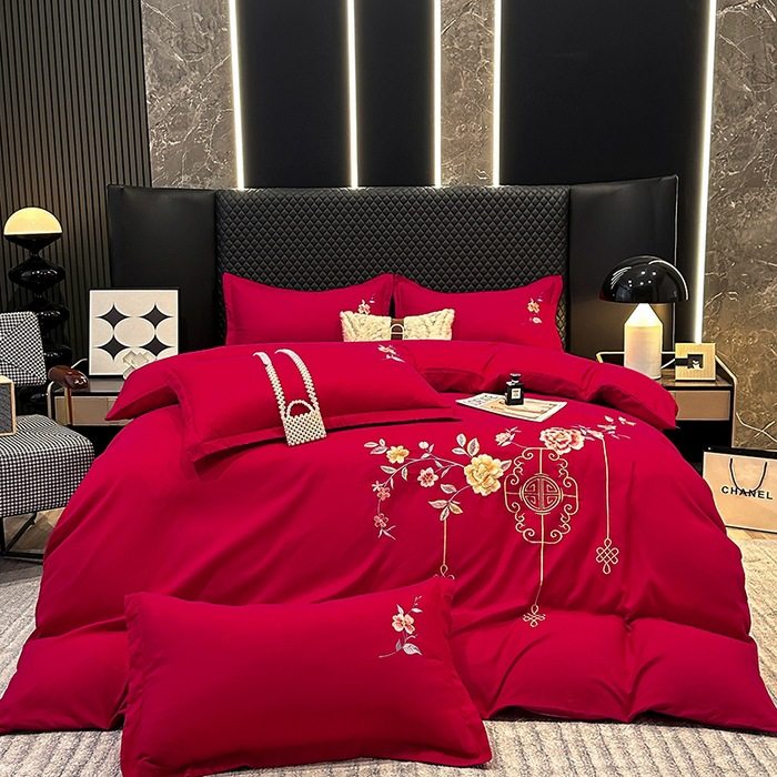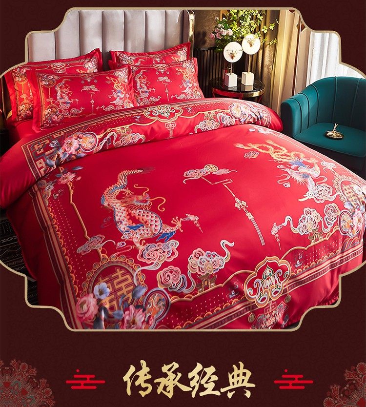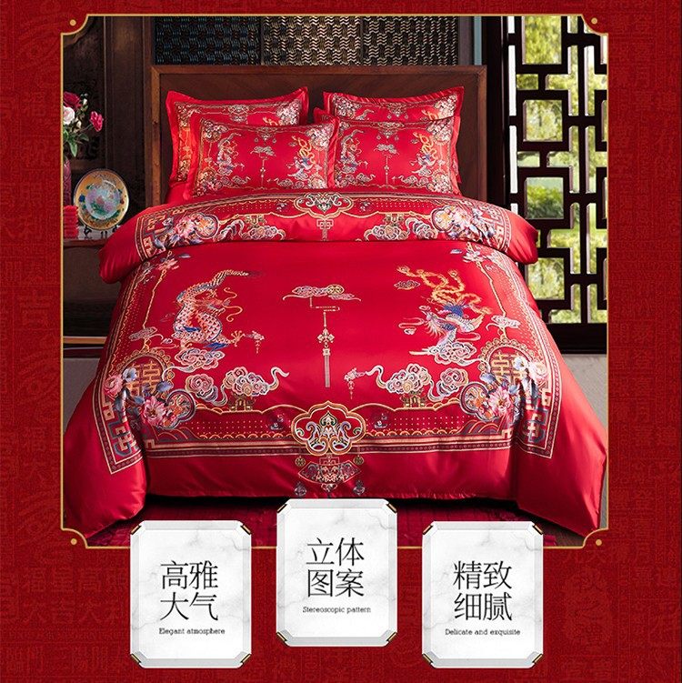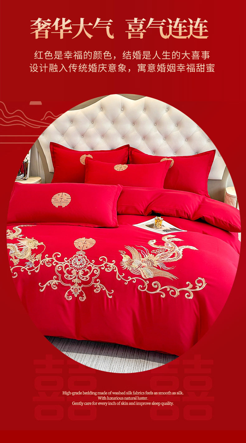 New Classy New Wedding Four-Piece Wedding Gift Set, Red Brushed Cotton Printed 4-Piece Set, Live Broadcast Hot Wholesale
