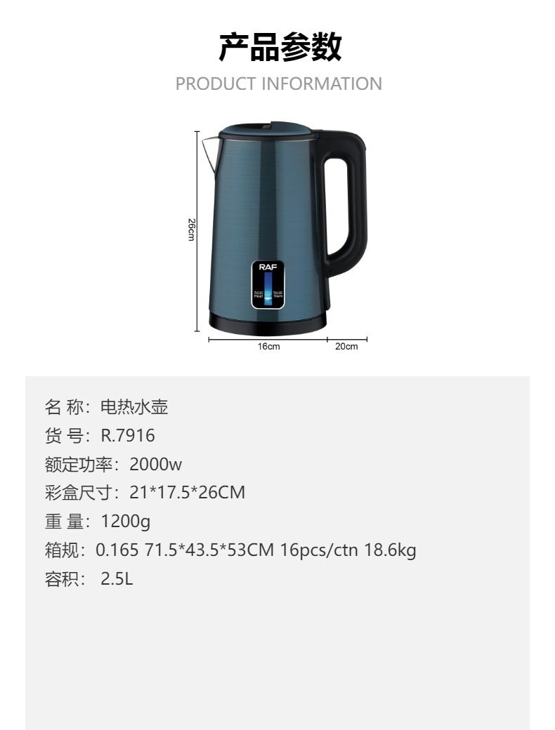 Raf European and American Cross-Border Electric Water Kettle Stainless Steel Household Commercial Thermal Insulation Water Kettle Automatic Power Off Large Capacity