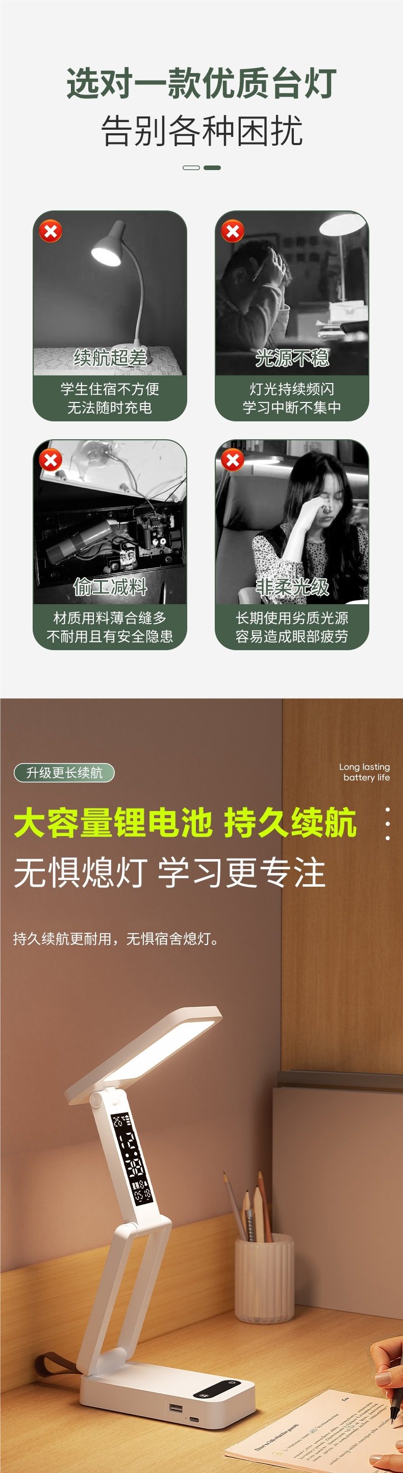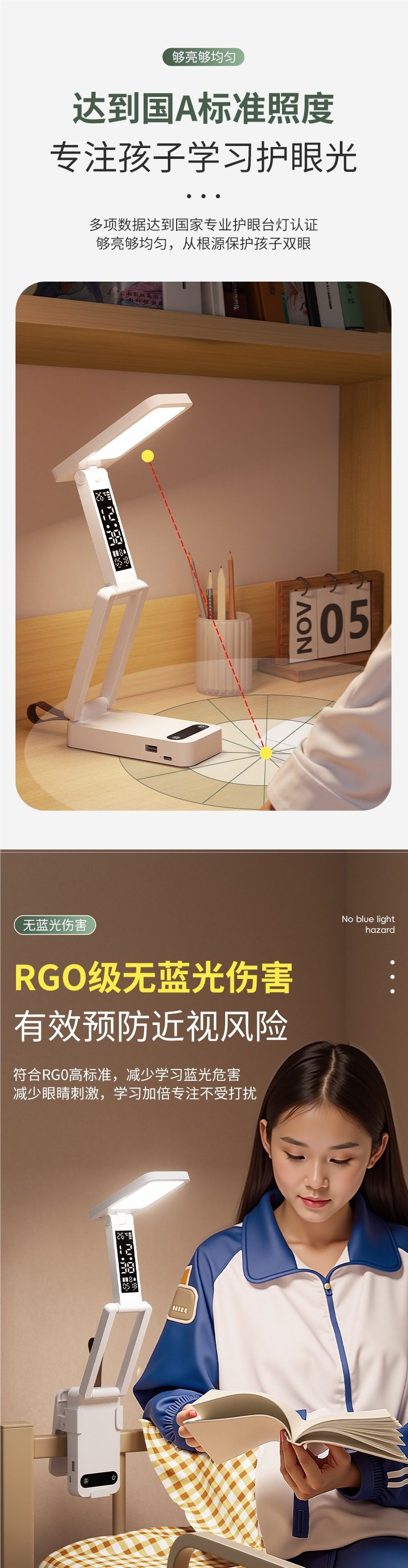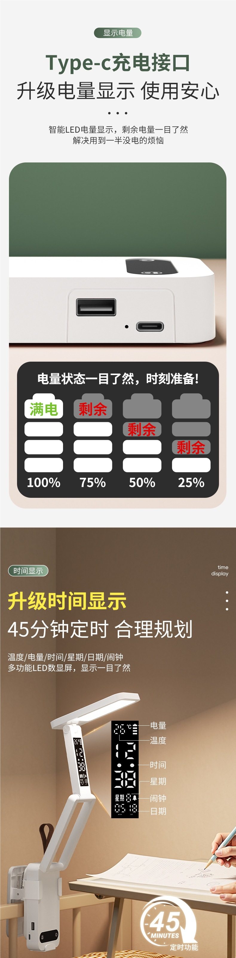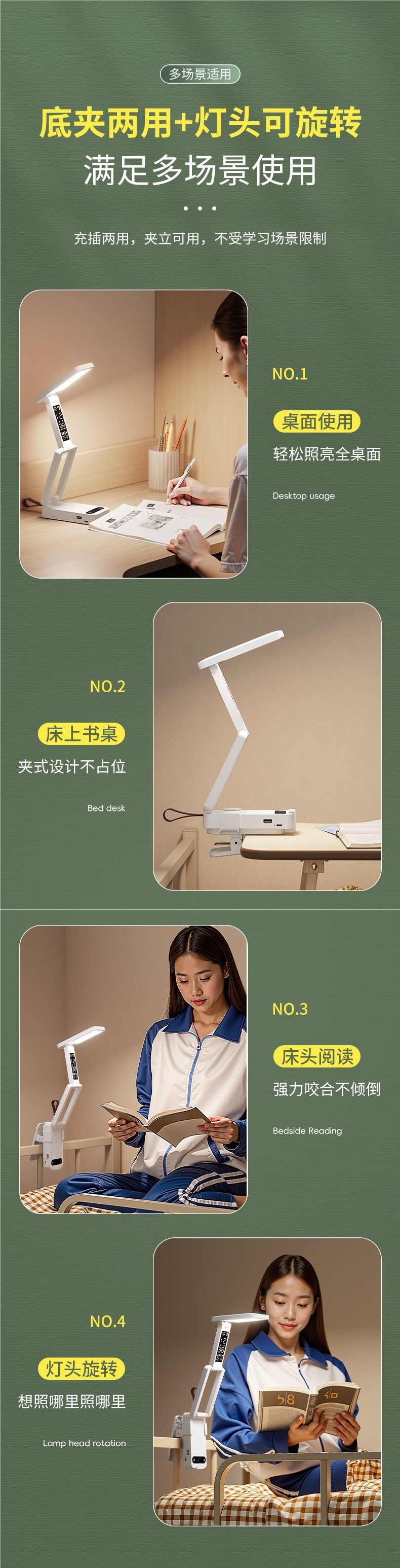 Clip Table Lamp Folding Rechargeable Eye Protection Learning High School Student Dormitory Lamp Student Portable Ultra-Long Life Lamp