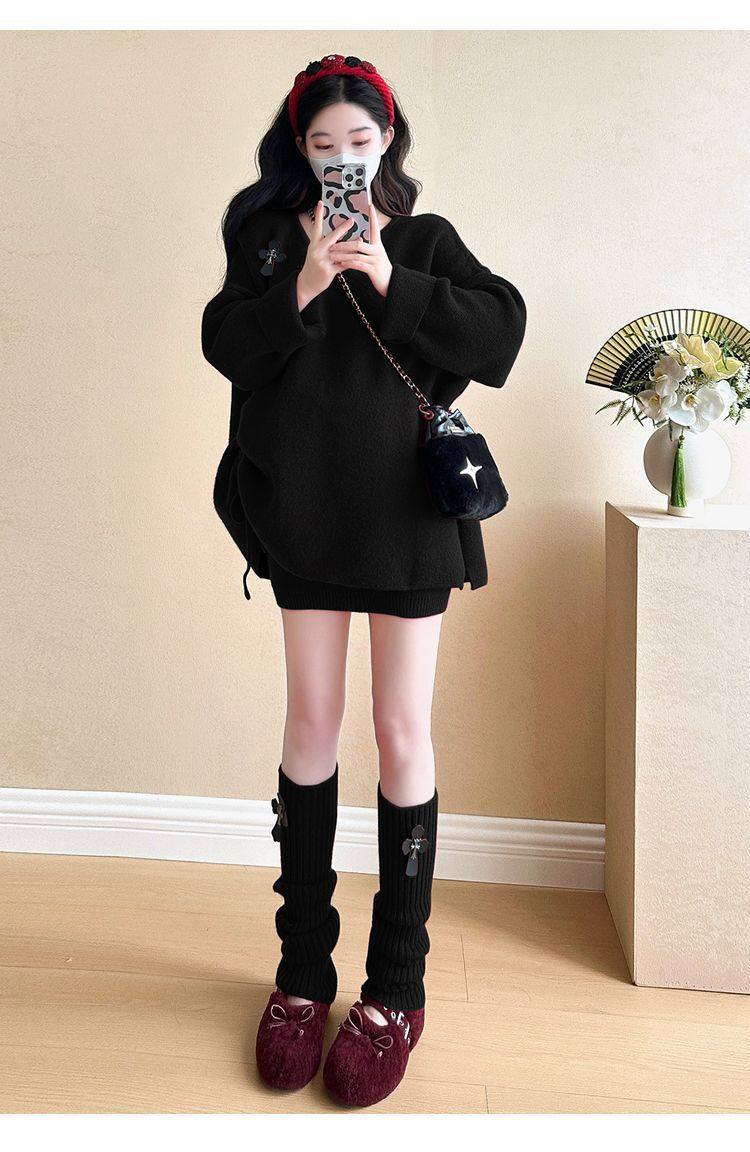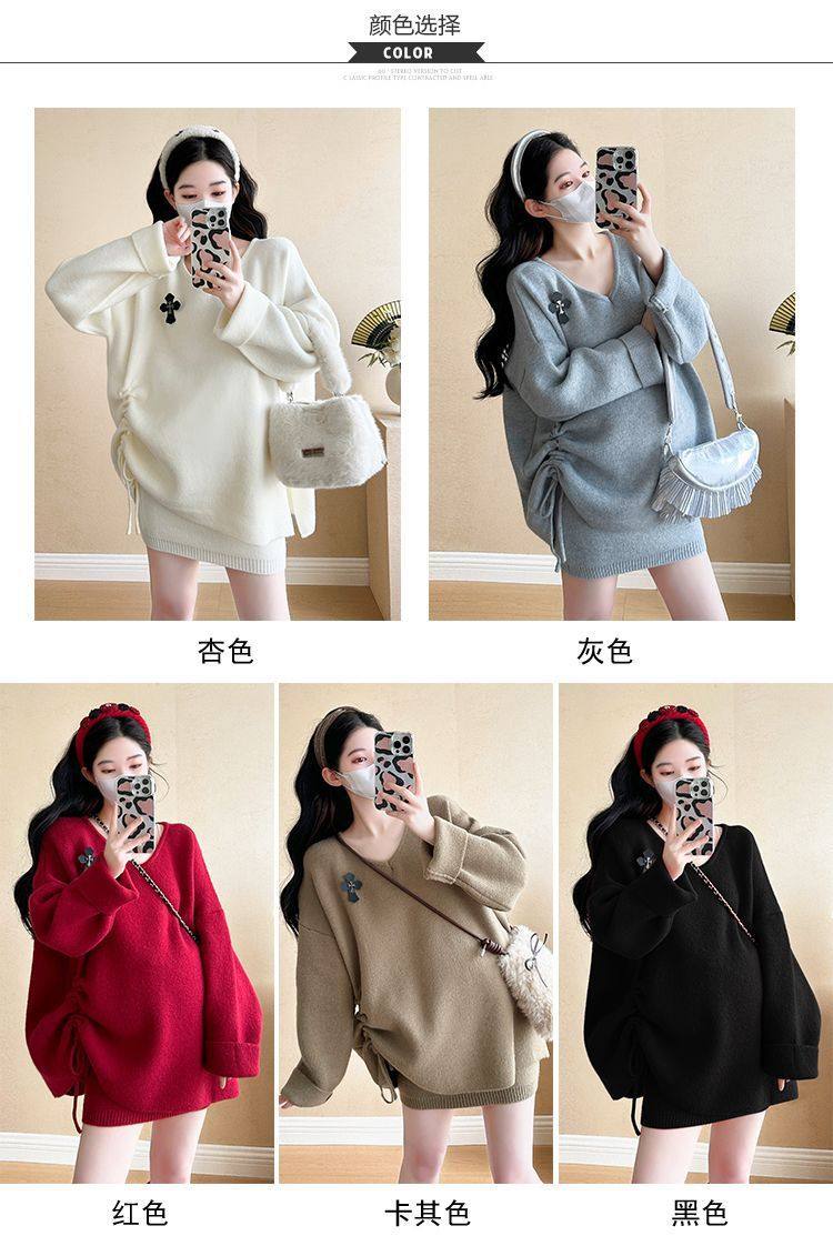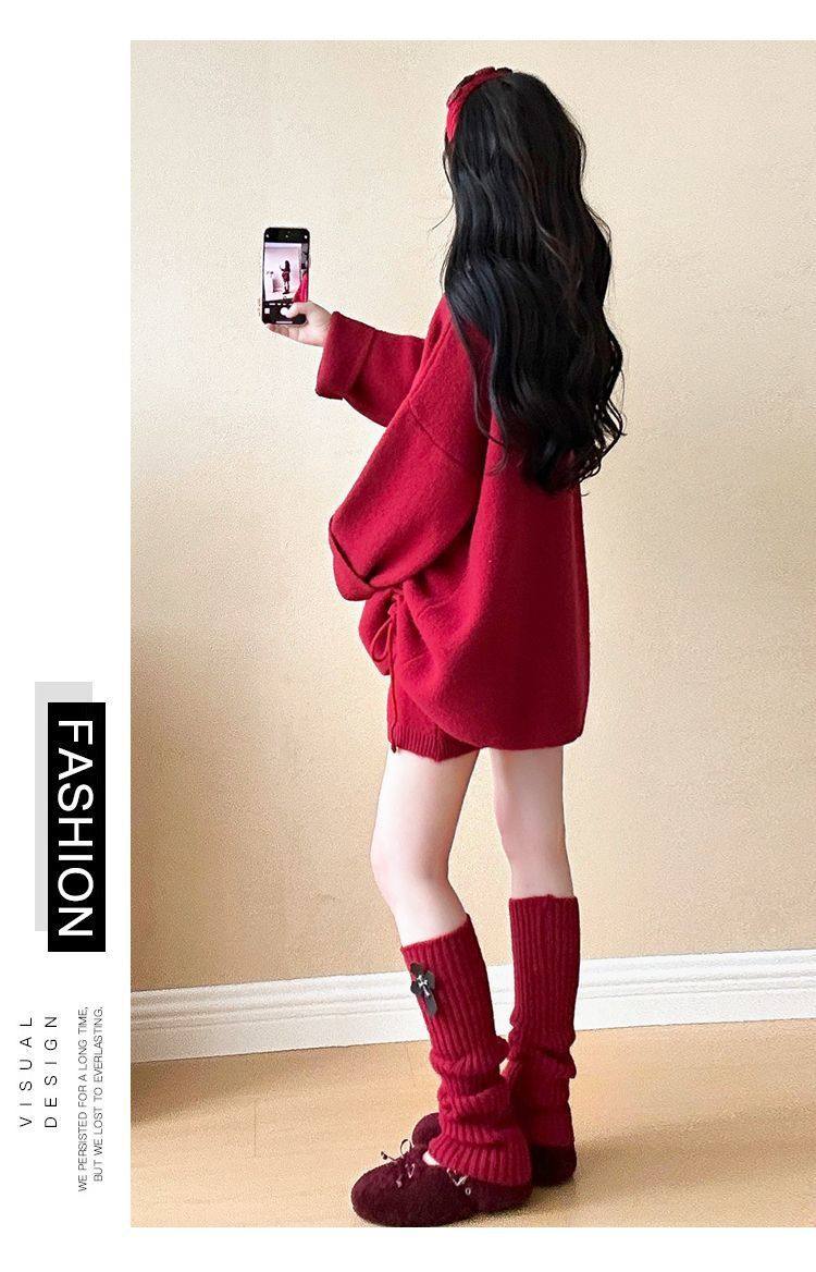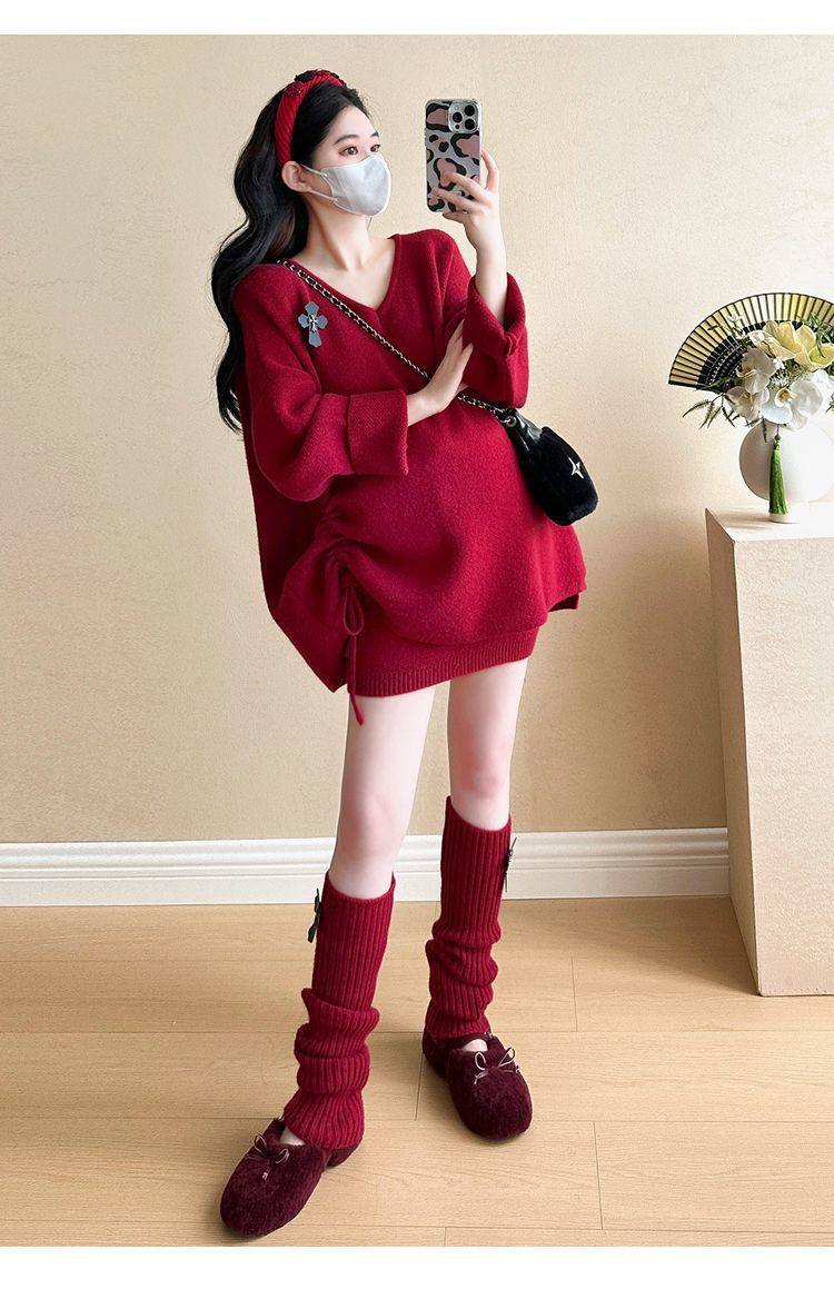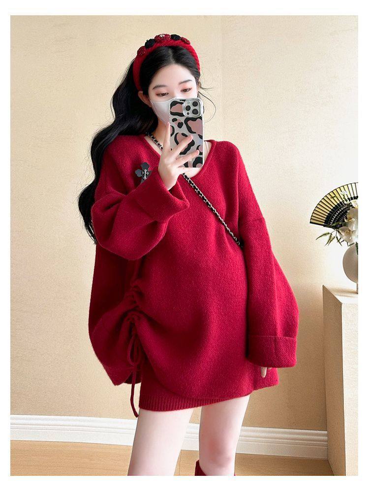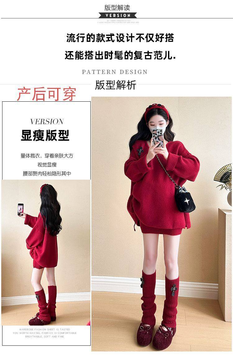 Maternity Suit Fashionable and Fashionable Autumn and Winter New Casual Knitted Sweater Short Skirt Red Three-Piece Winter Set