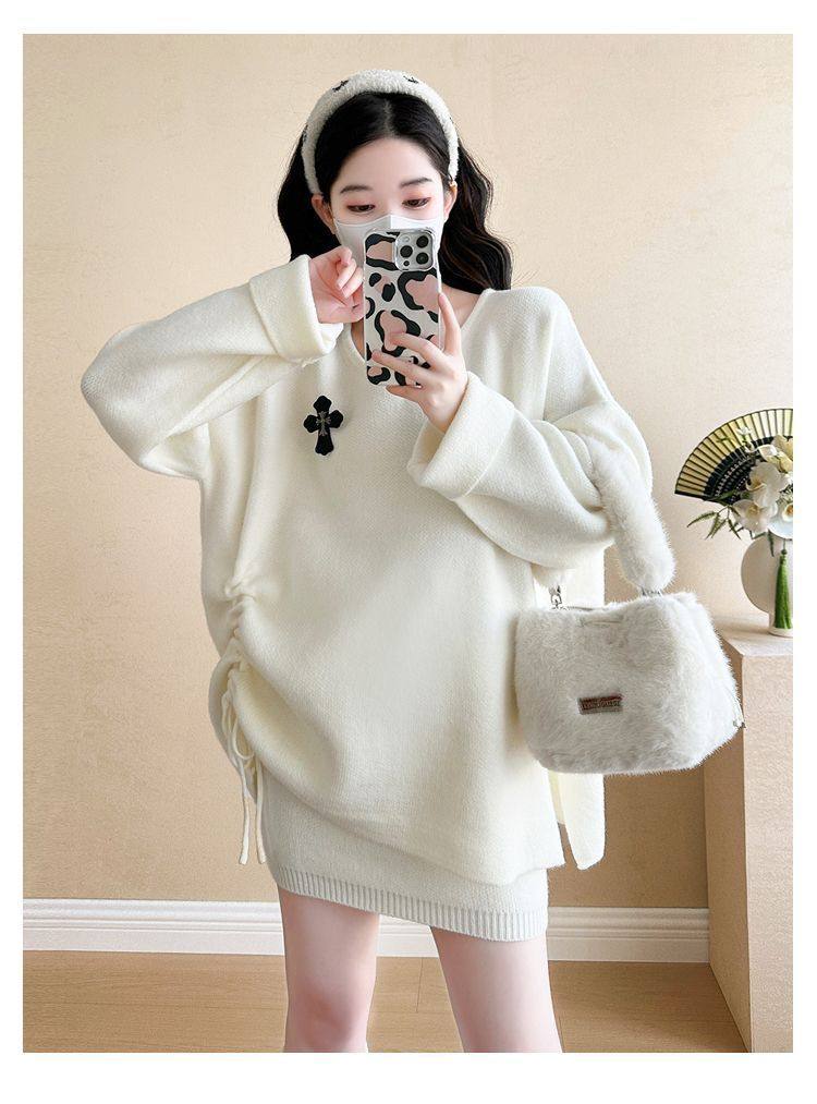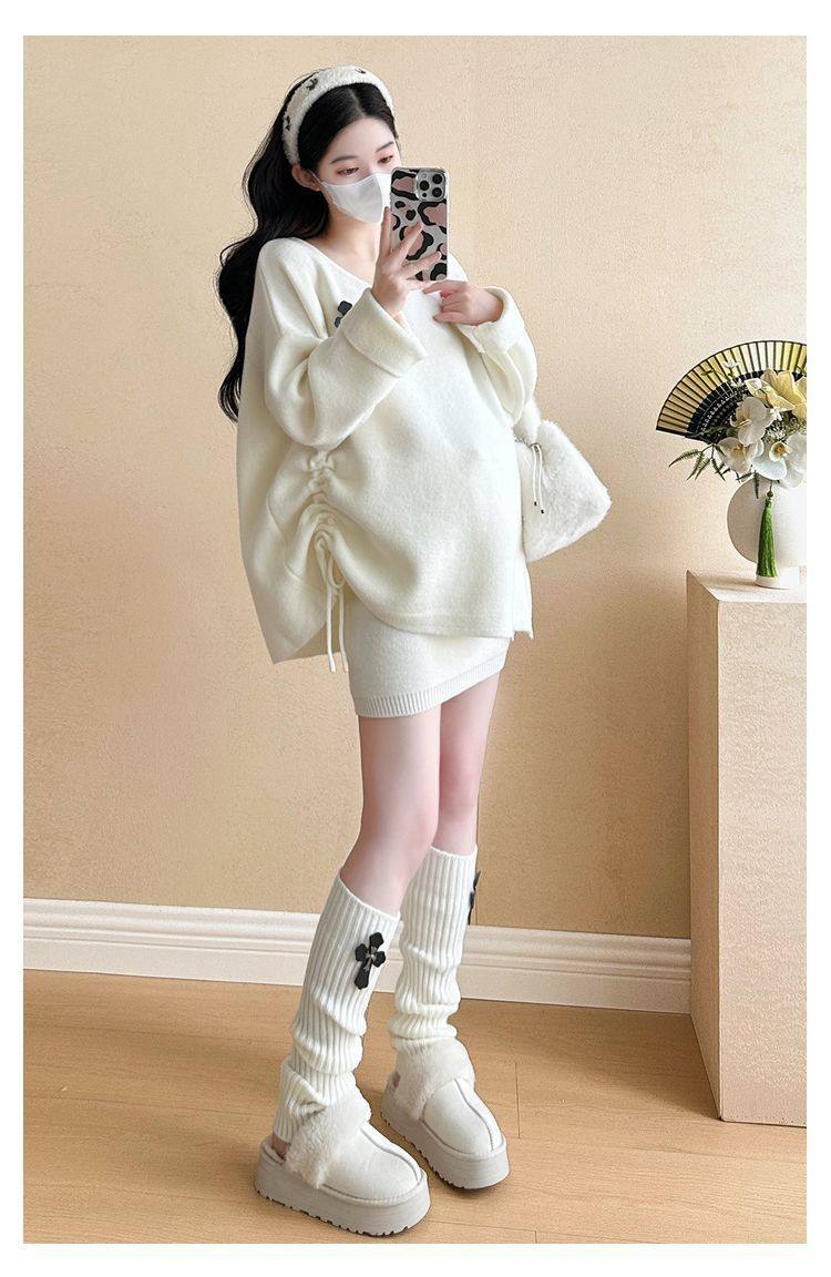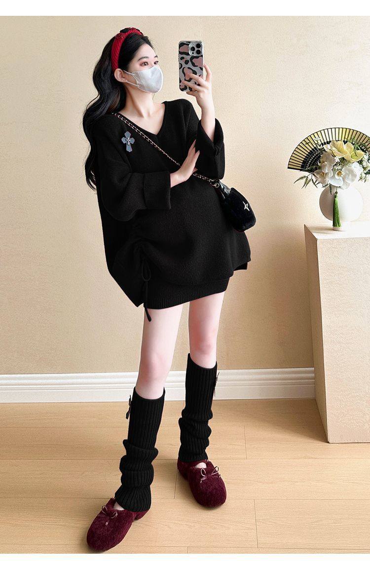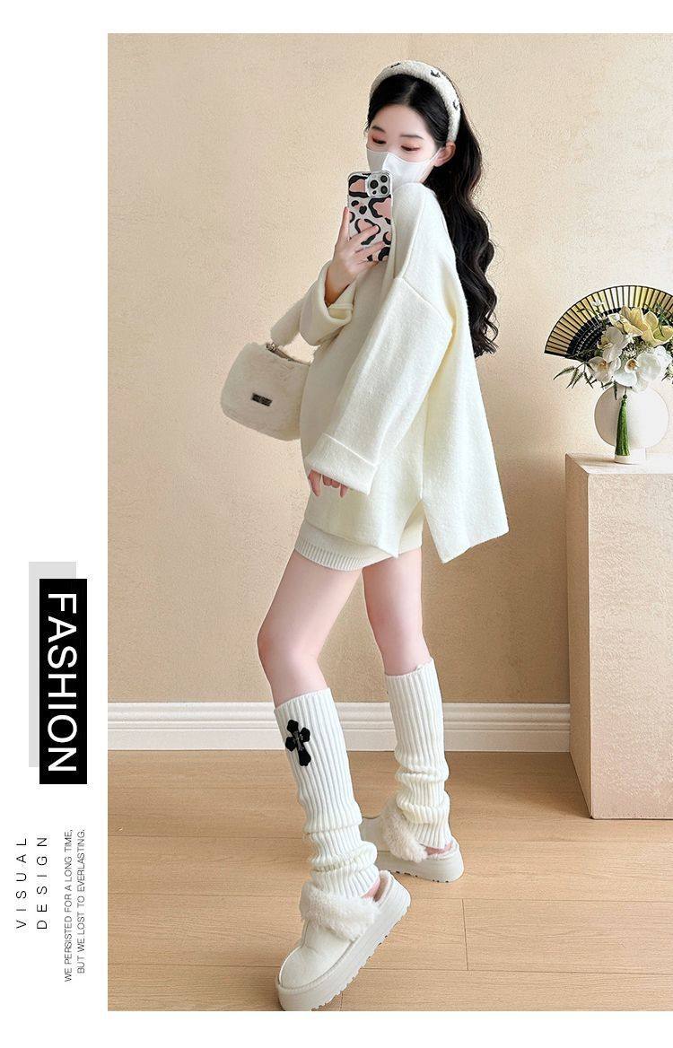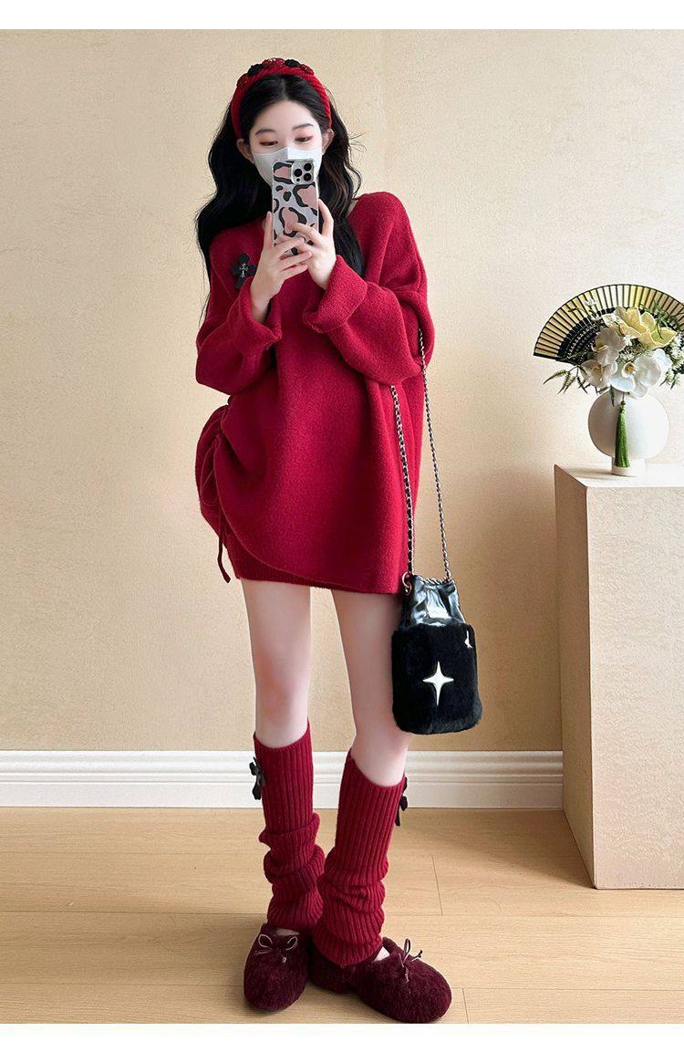 Maternity Suit Fashionable and Fashionable Autumn and Winter New Casual Knitted Sweater Short Skirt Red Three-Piece Winter Set
