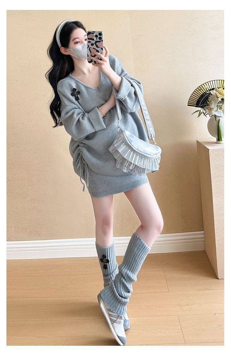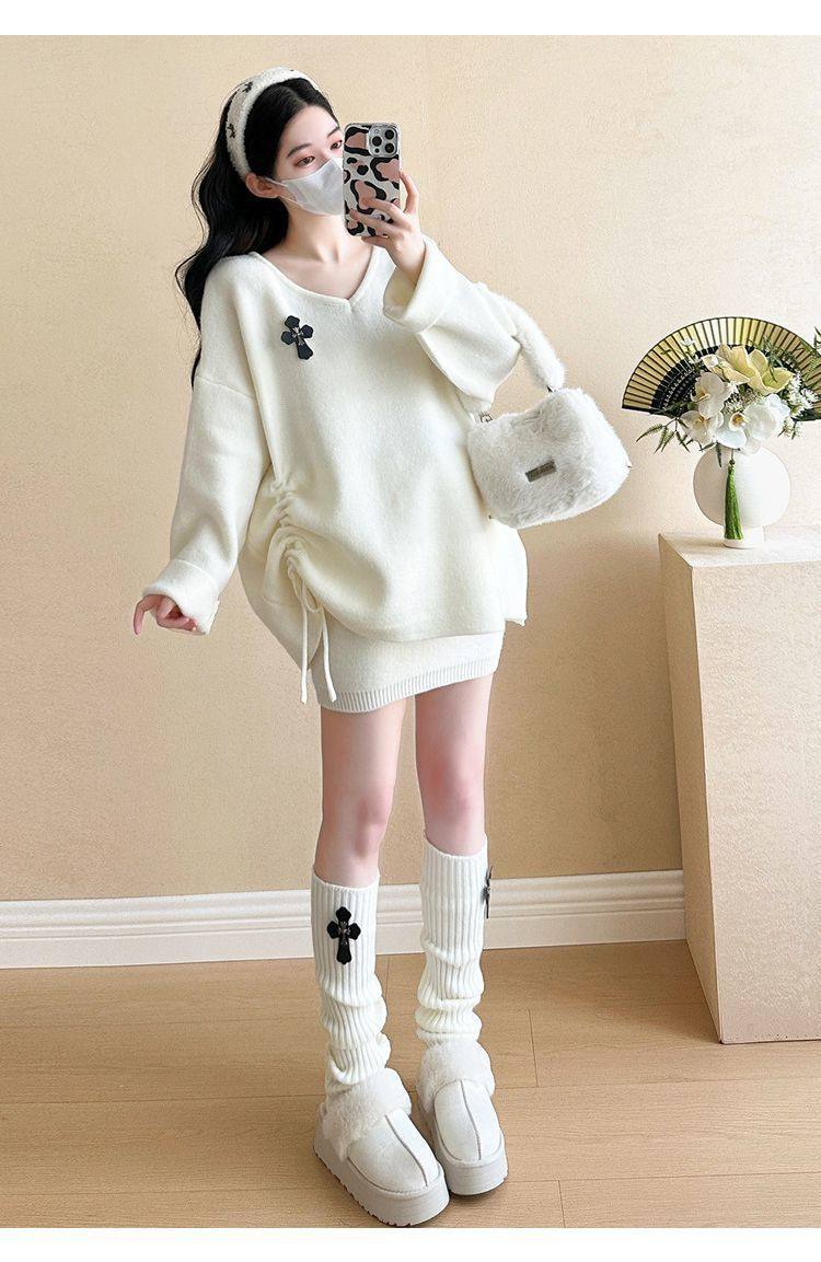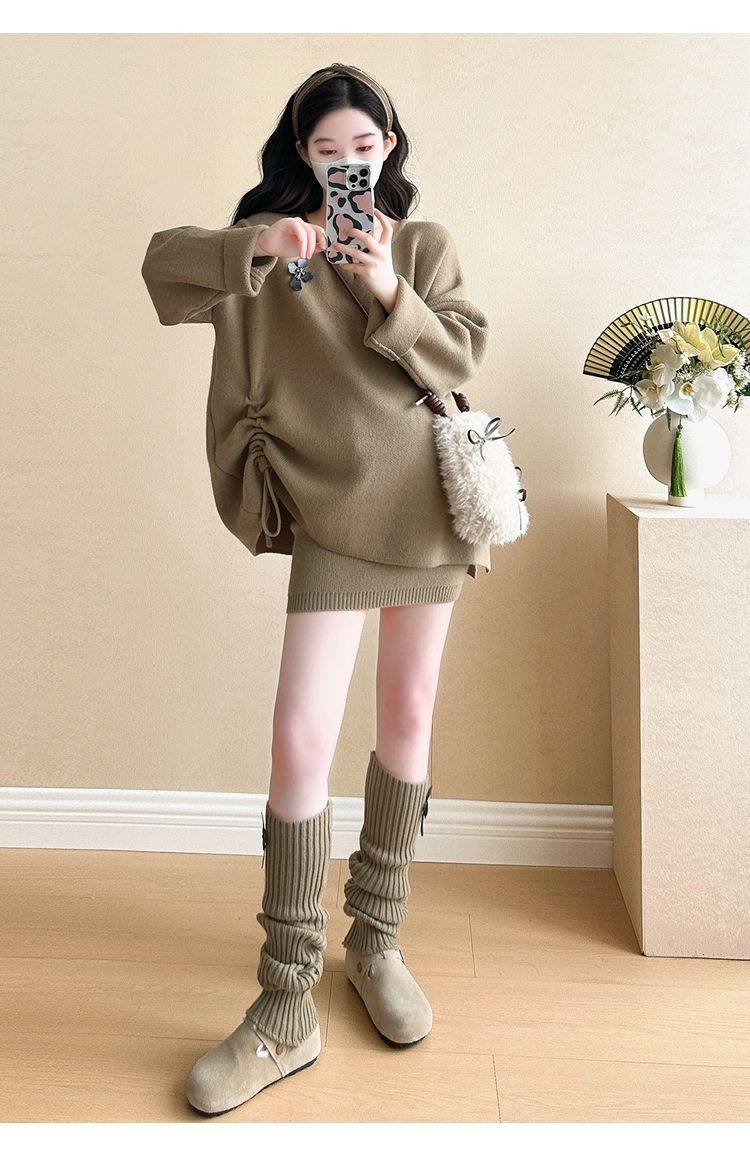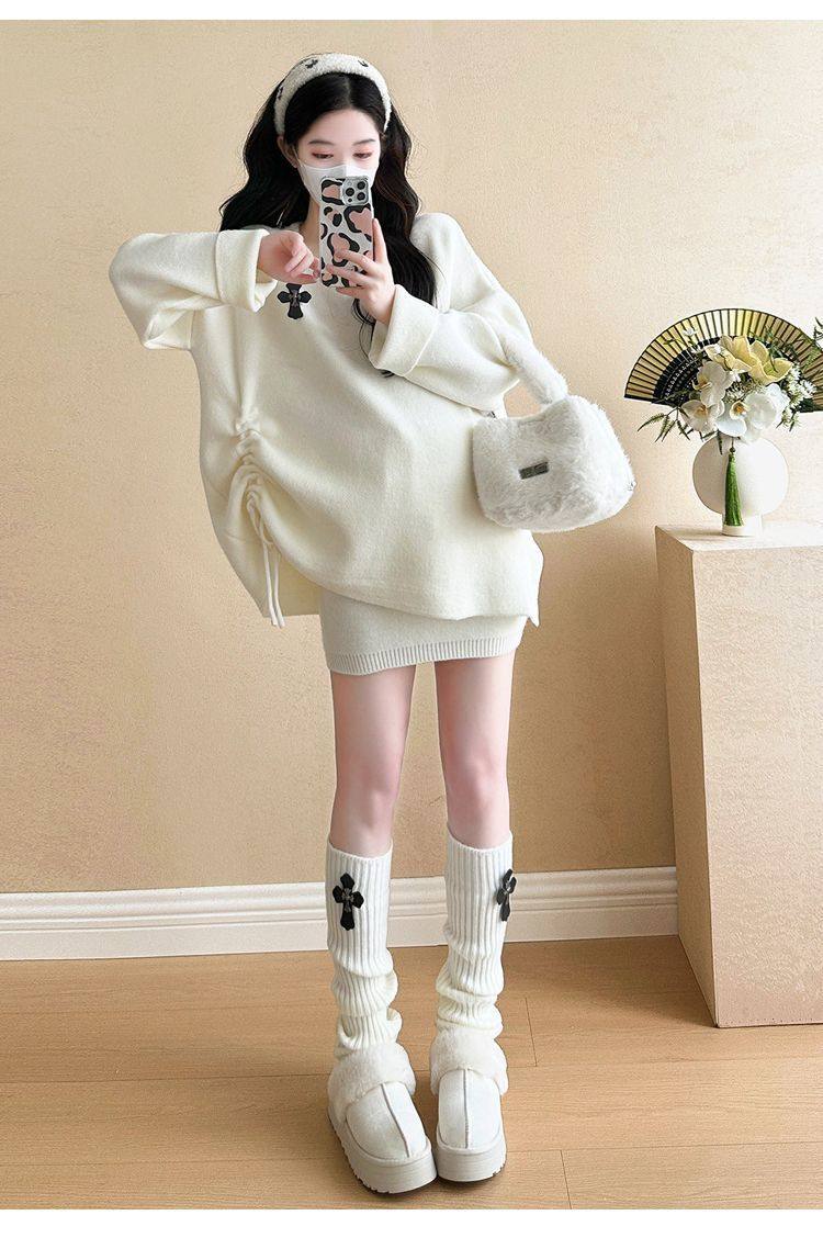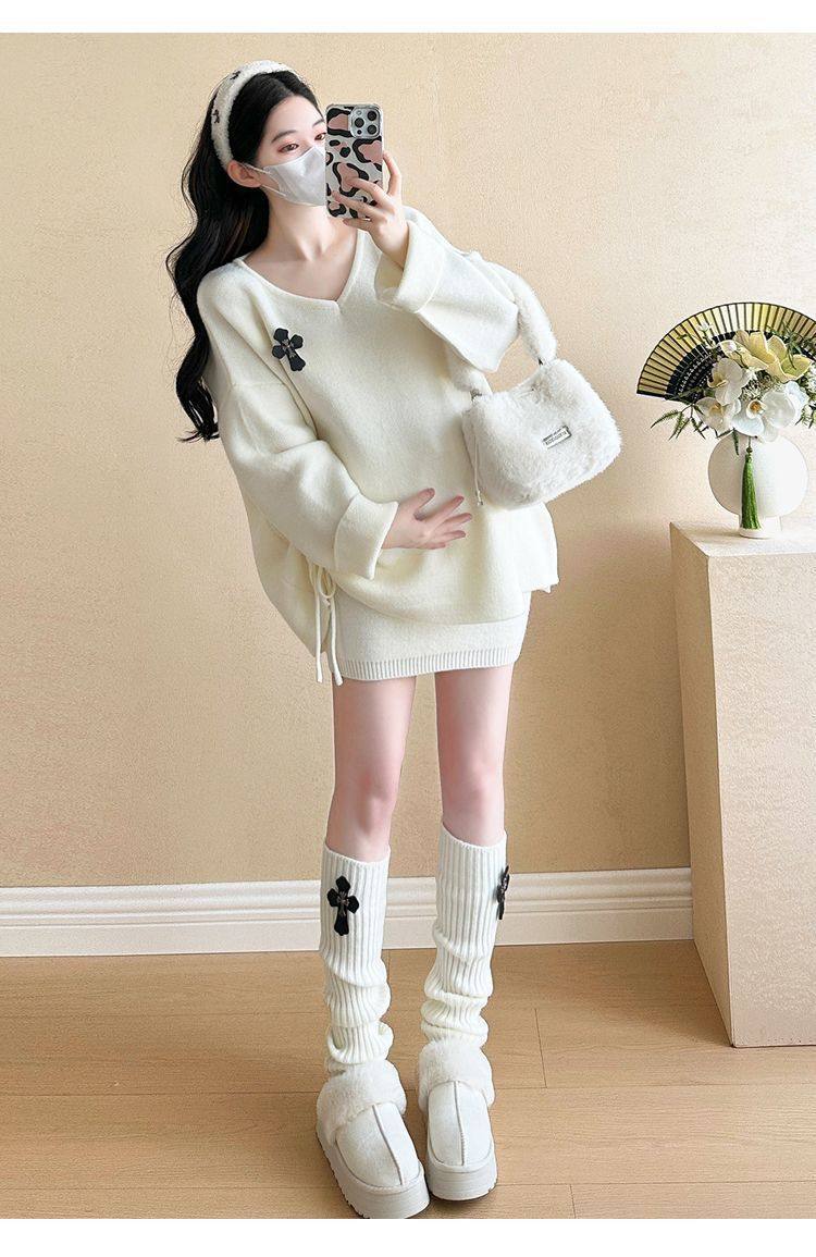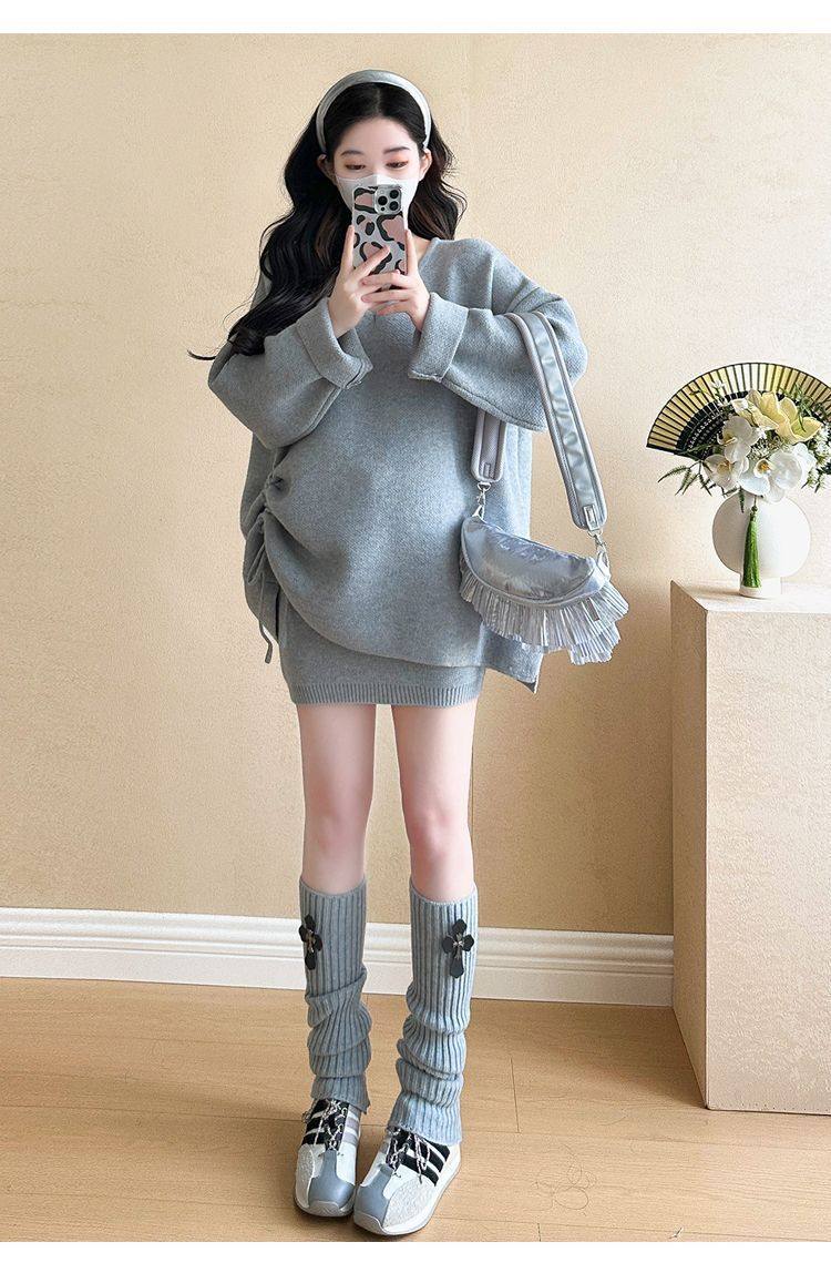 Maternity Suit Fashionable and Fashionable Autumn and Winter New Casual Knitted Sweater Short Skirt Red Three-Piece Winter Set