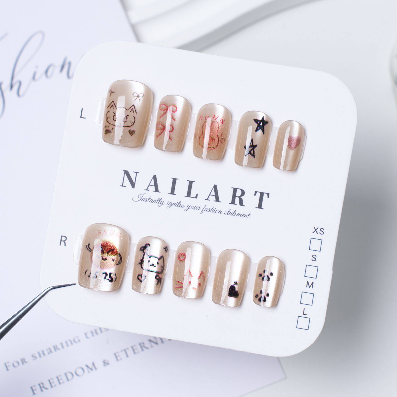 | Color classification | Handmade nails m size 10 pieces/bag (tool kit included),Handmade nails s size 10 pieces/bag (tool kit included),Handmade nails xs size 10 pieces/bag (tool kit included) |