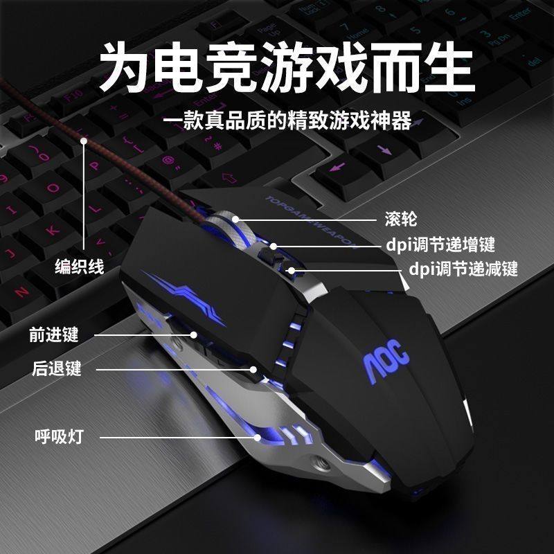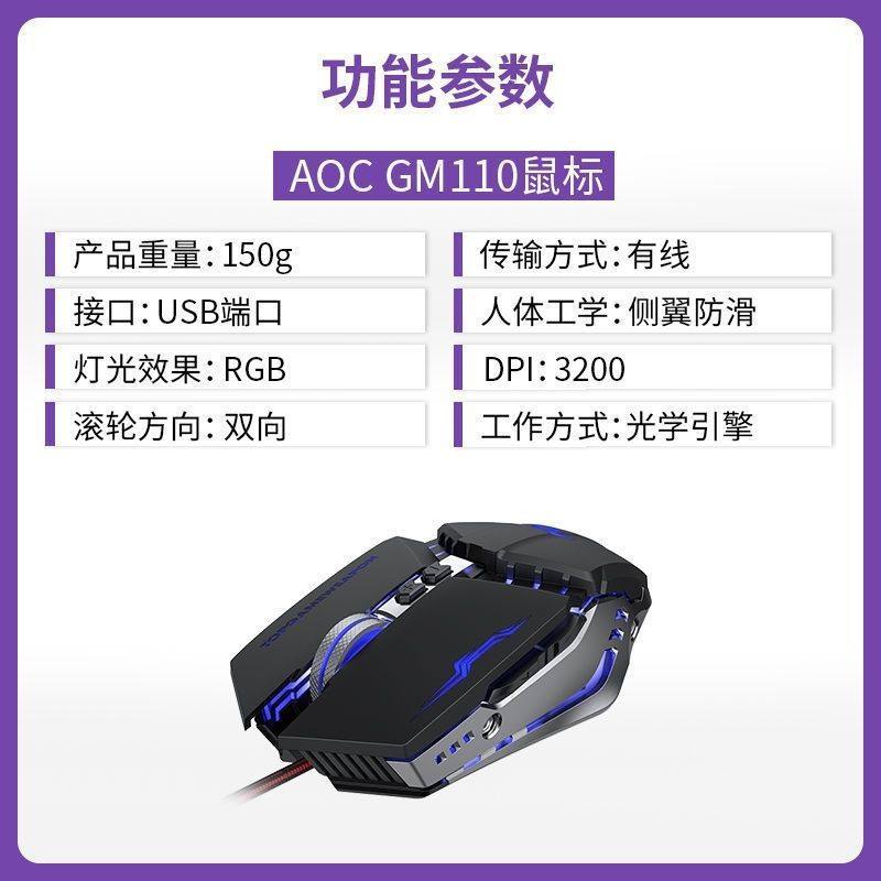 Aoc Gm110 E-Sports Mouse Wired Macro Programming with Weighted USB Computer External Crossfire Game Peripherals