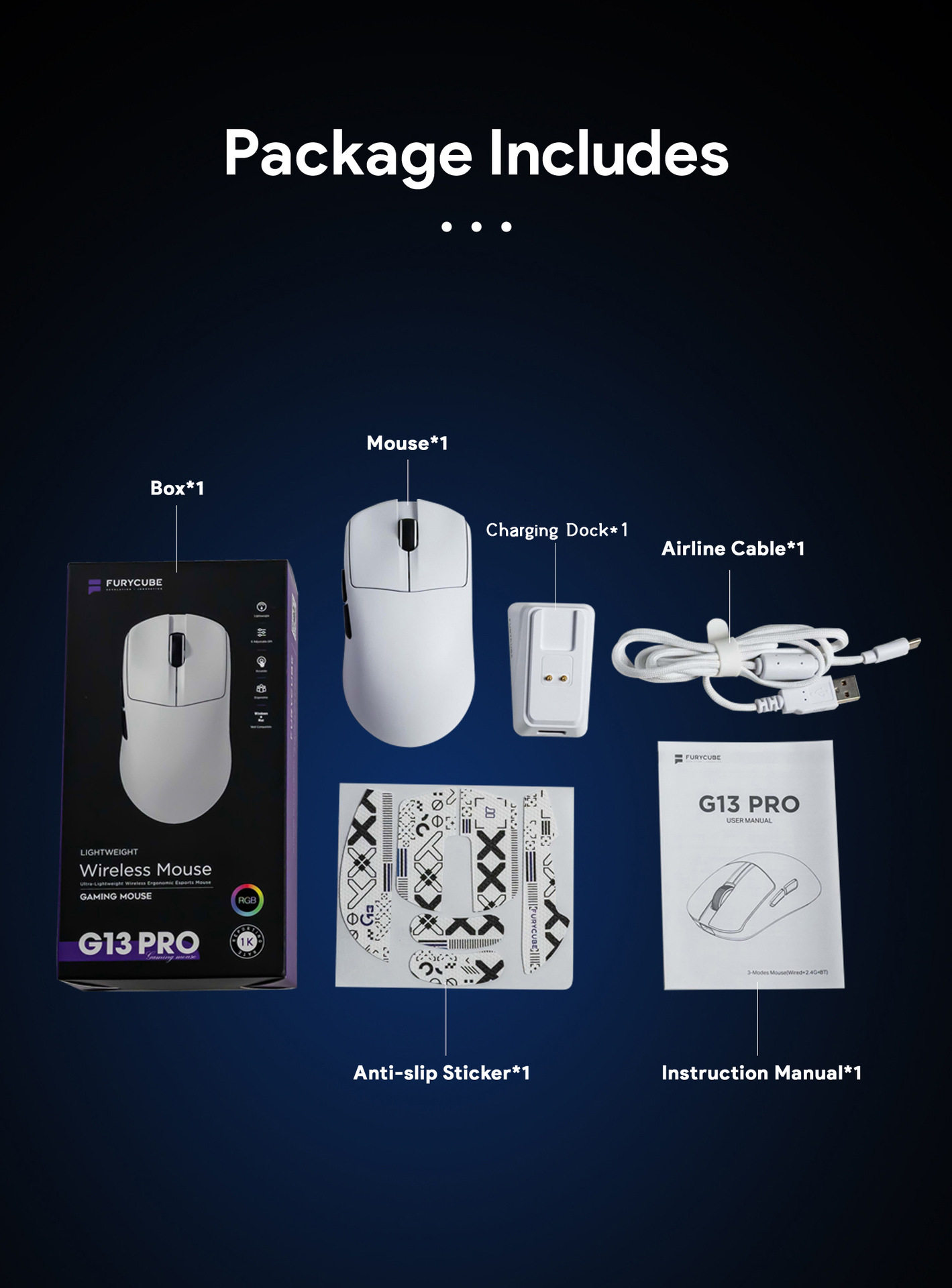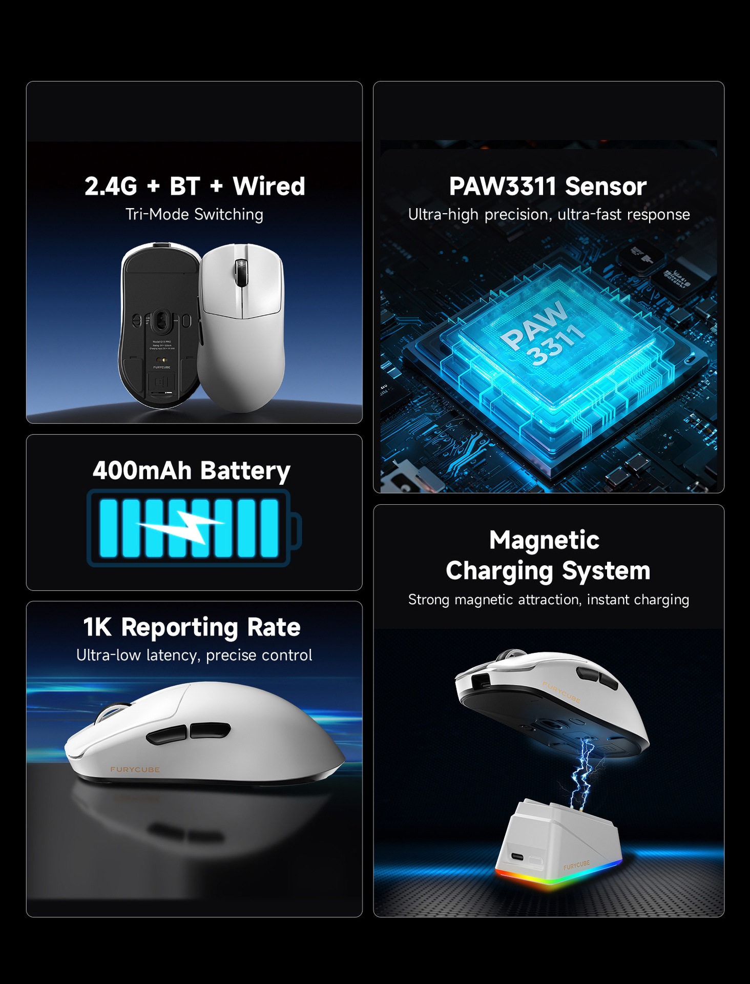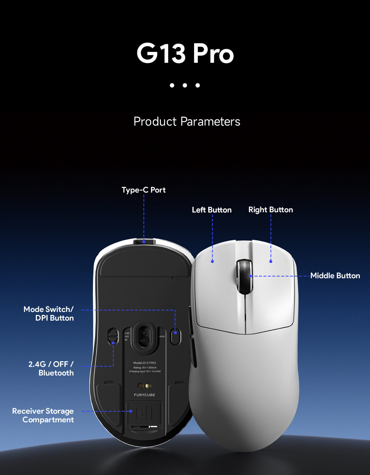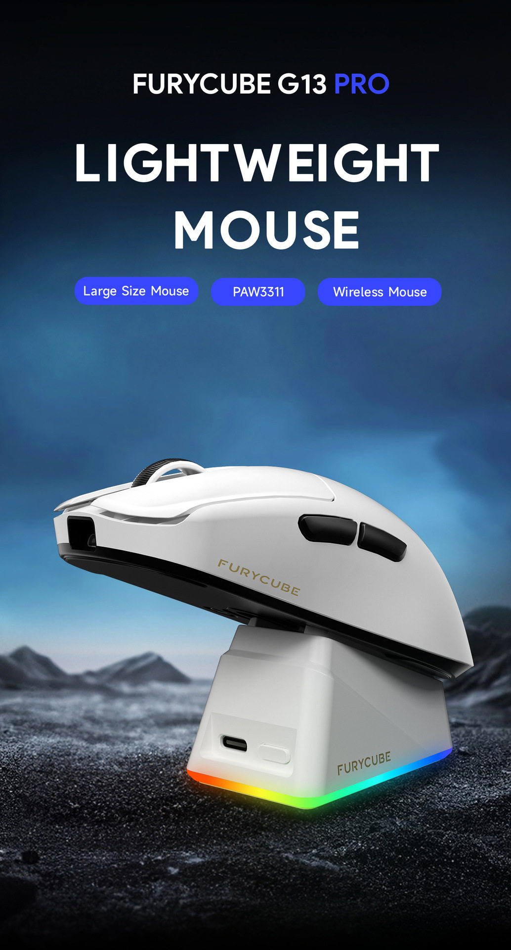 Furycube G13Pro Bluetooth Wireless Mouse Lightweight Three-Mode E-Sports Game Paw3311 with Charging Base