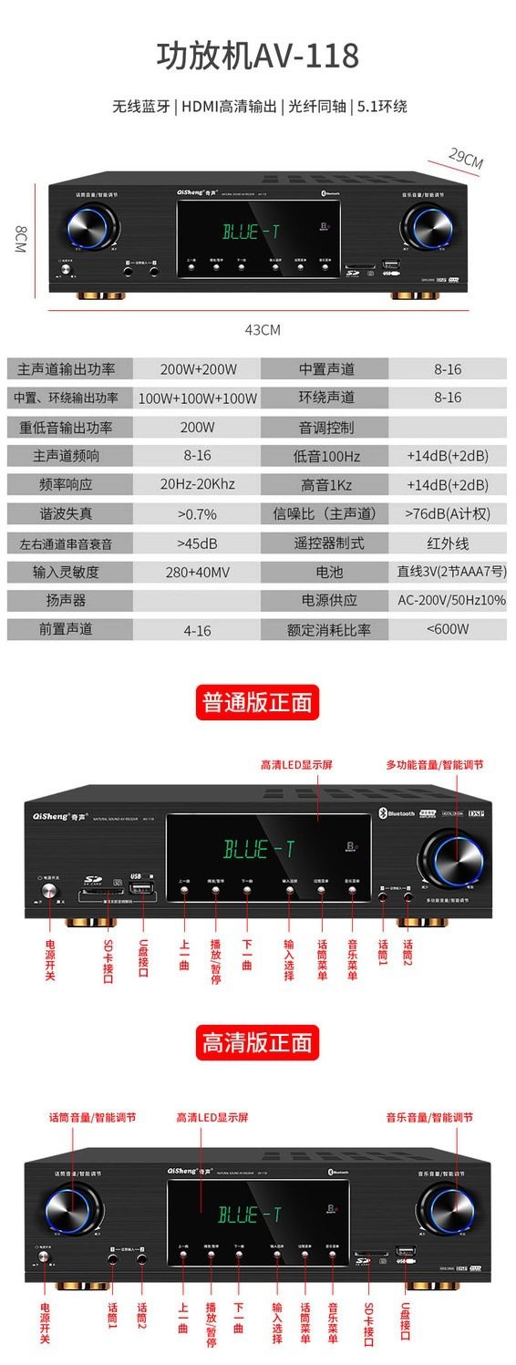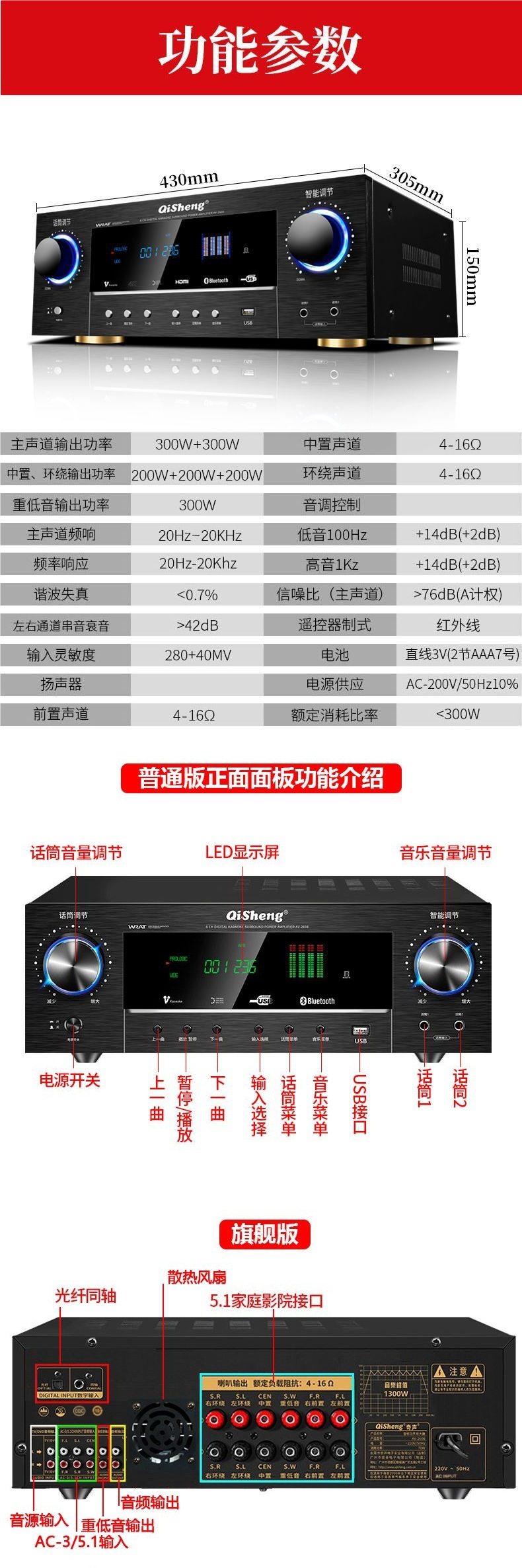 High-power 5.1 home Bluetooth HDMI amplifier home theater professional HIFI subwoofer amplifier free shipping