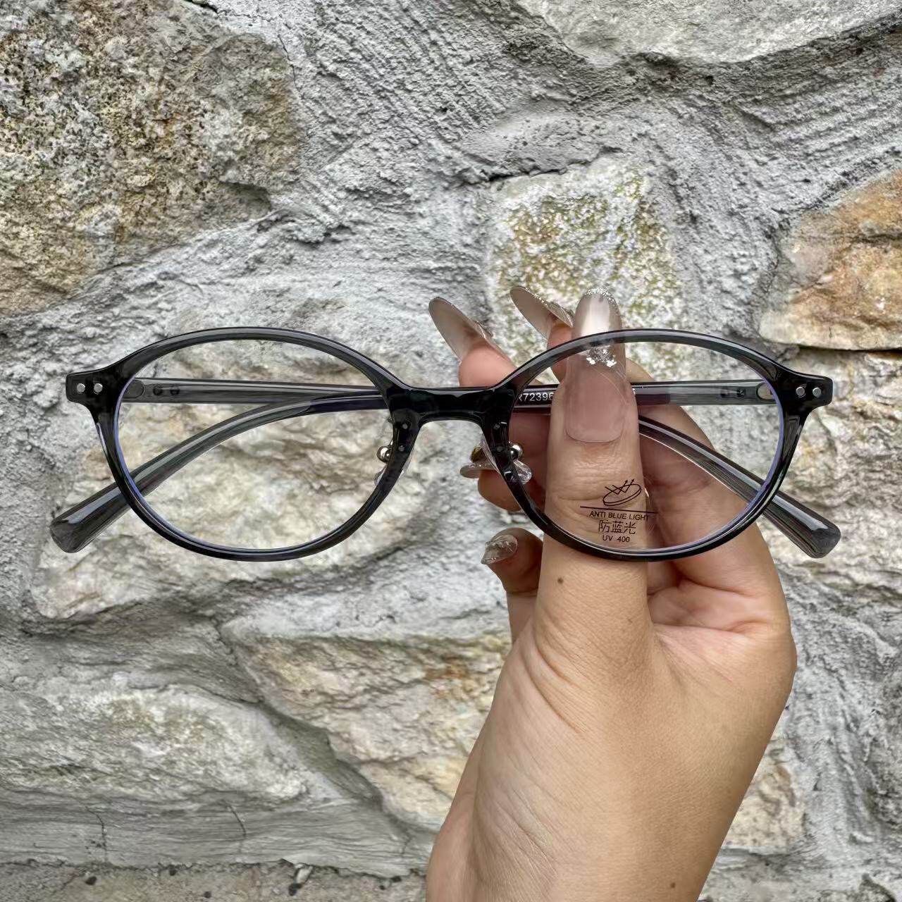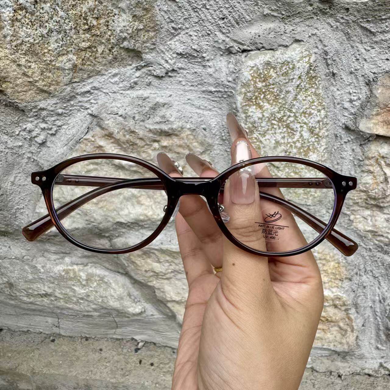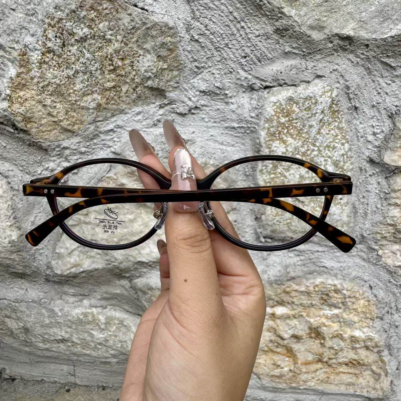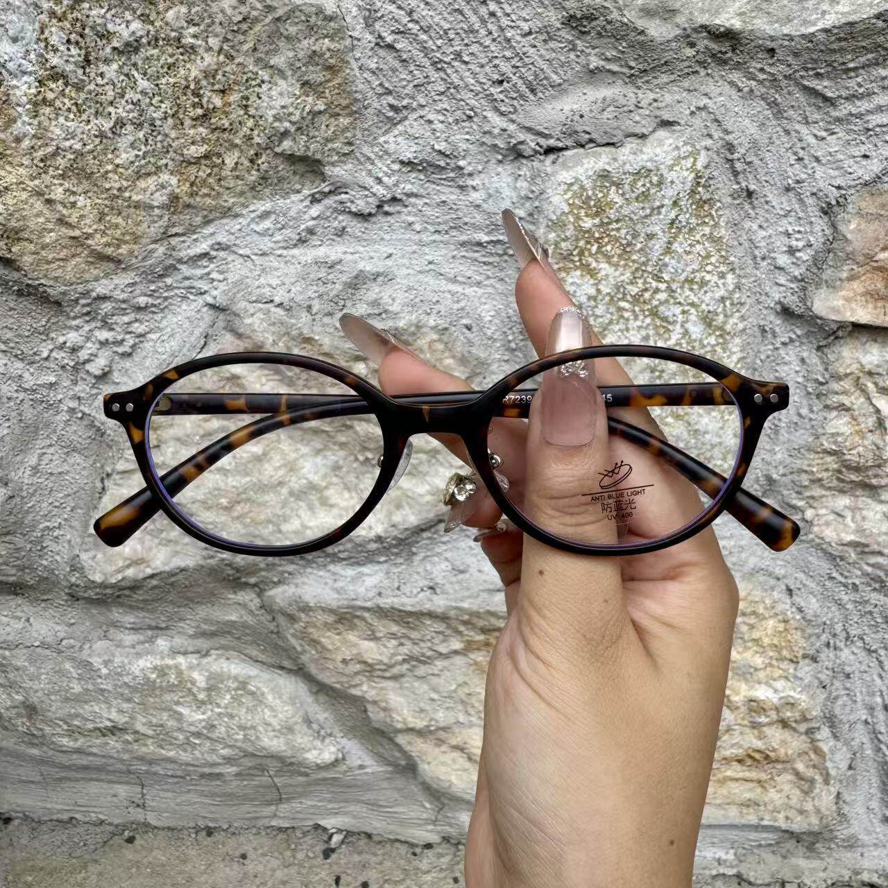 72396 glasses oval nerd TR90 frame tortoise shell ultra-light Korean style retro old money style without makeup anti-blue light