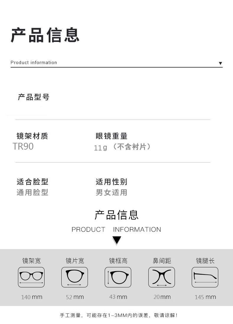 | Frame color | Cold brown,Spicy green,Gray,Sand black,Frosted leopard print,Glossy black,Champagne light tea,Tortoiseshell |