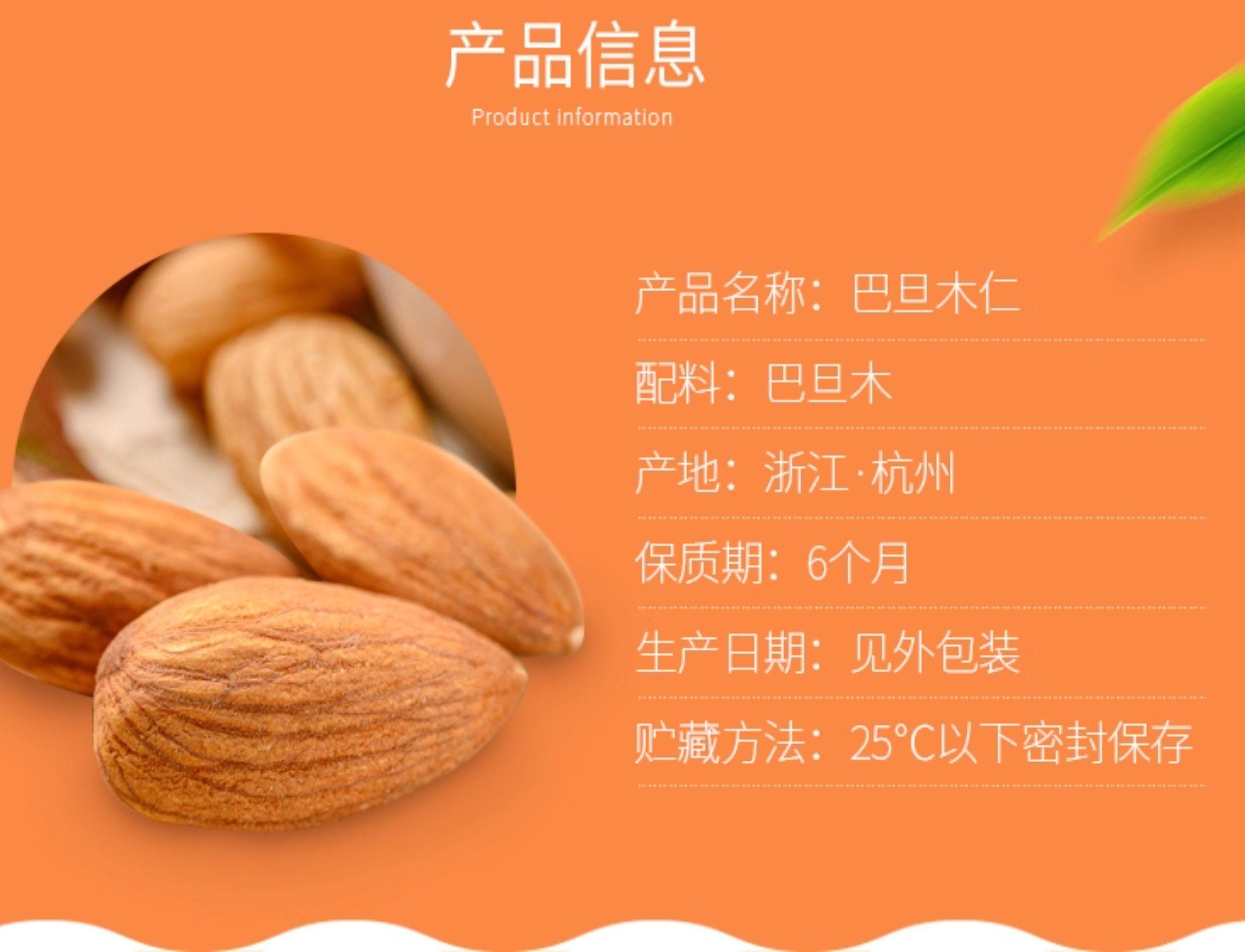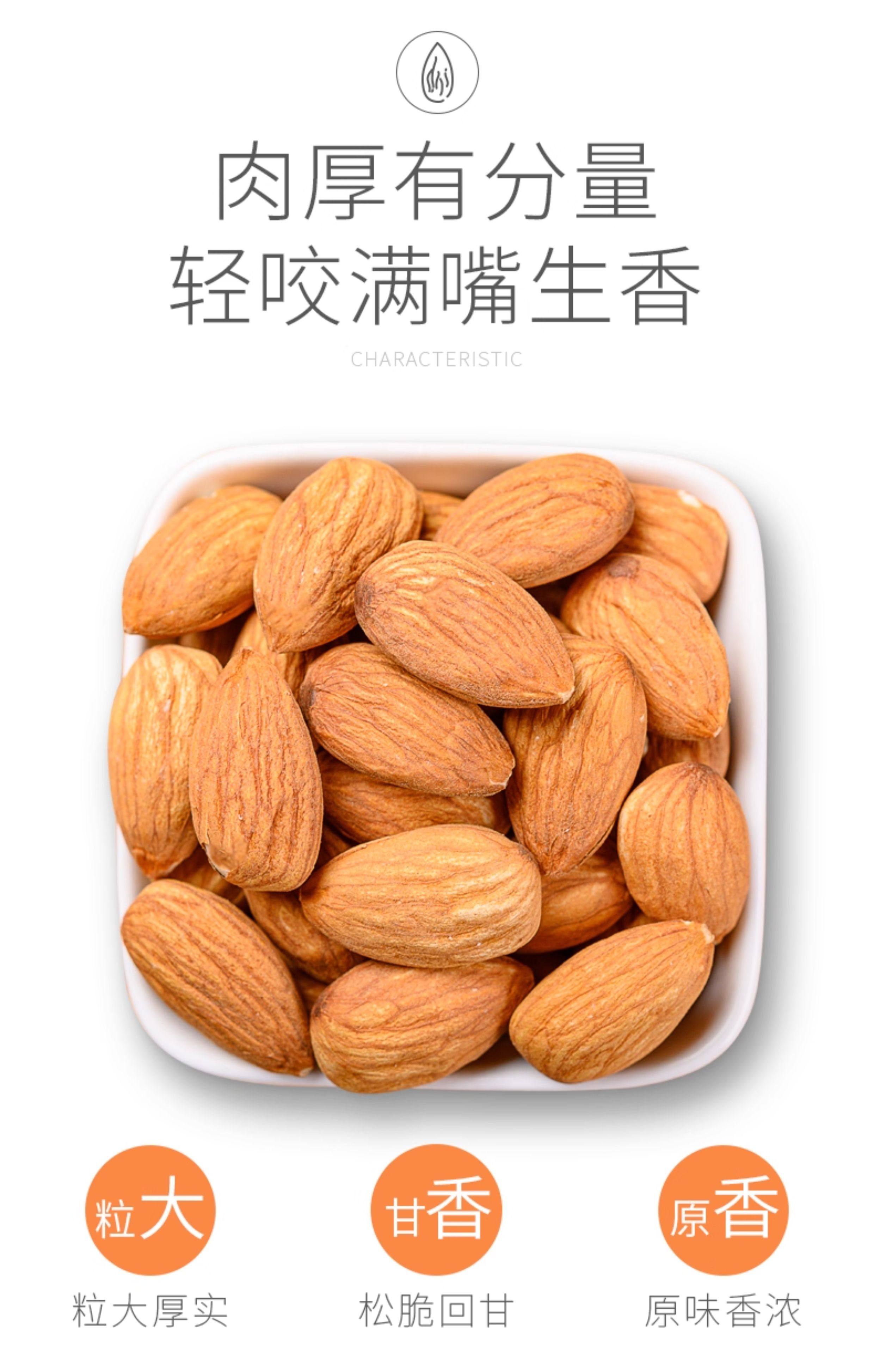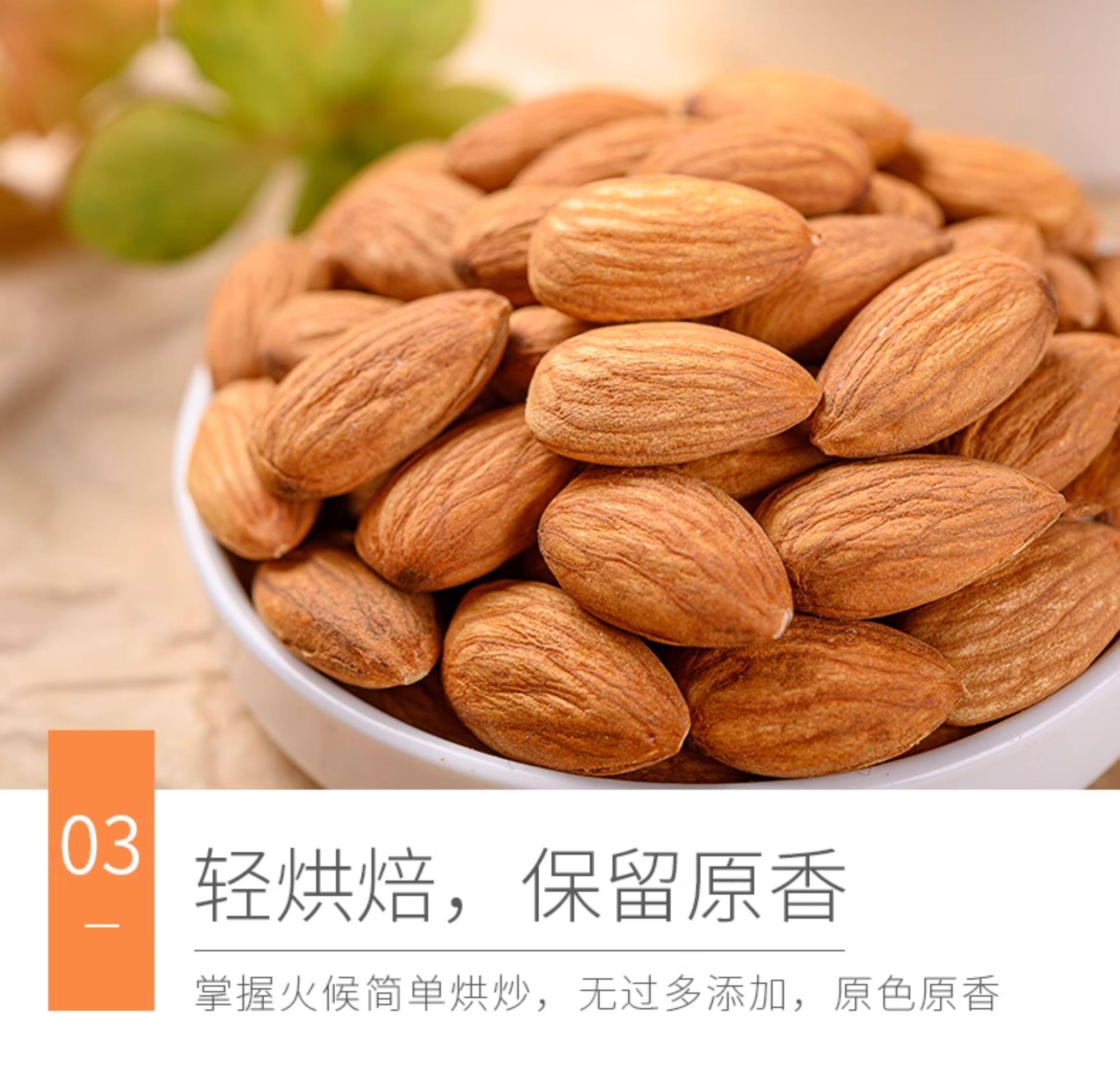 | Taste | [tasting packet] 150gx1 bag,Really good quality half a pound sharing pack] 250gx1 bag,Only selling net weight, cheap and cost-effective 0.5kg pack] 500gx1 bag,[large stocking quantity 1.0kg packs] 500gx2 bags,【pack of 1.5kg】500gx3 bags,[salt-baked almonds] 250gx1 bag,[salt baked almond kernels 0.5kg pack] 500gx1 bag,[salt baked almond kernels 1.0kg pack] 500gx2 bags,【salt-roasted almond kernels - sample size】150g x 1 bag |