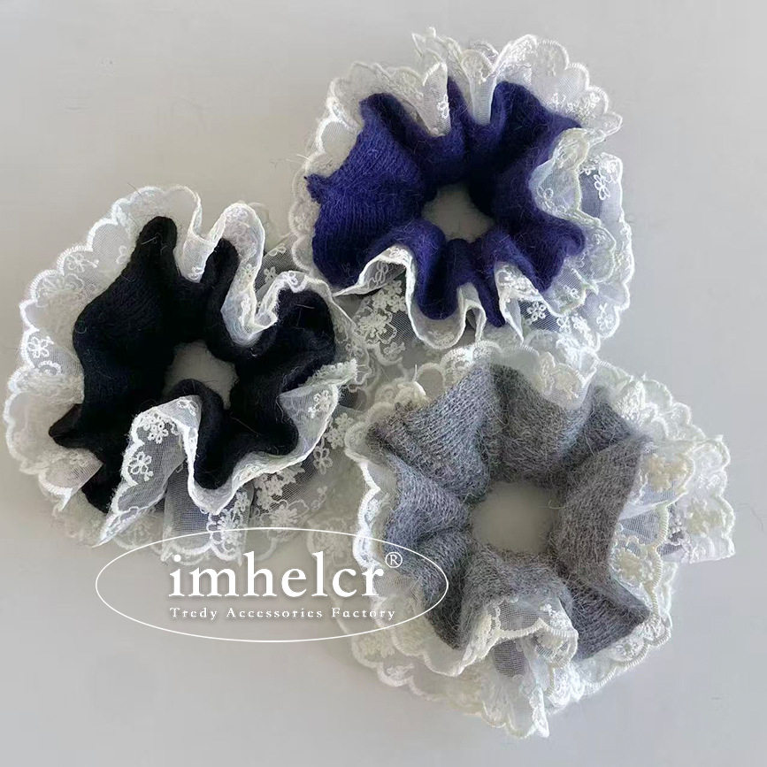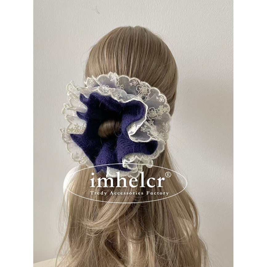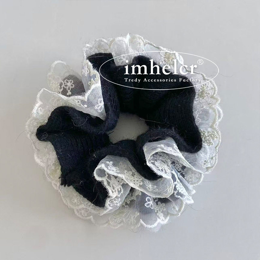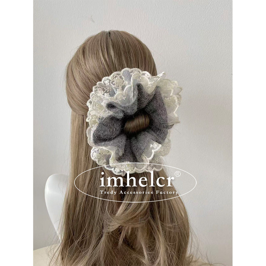Korean-Style Soft Plush Knitted Lace Scrunchie Autumn and Winter New Trendy Versatile Hair Bun Hair Tie