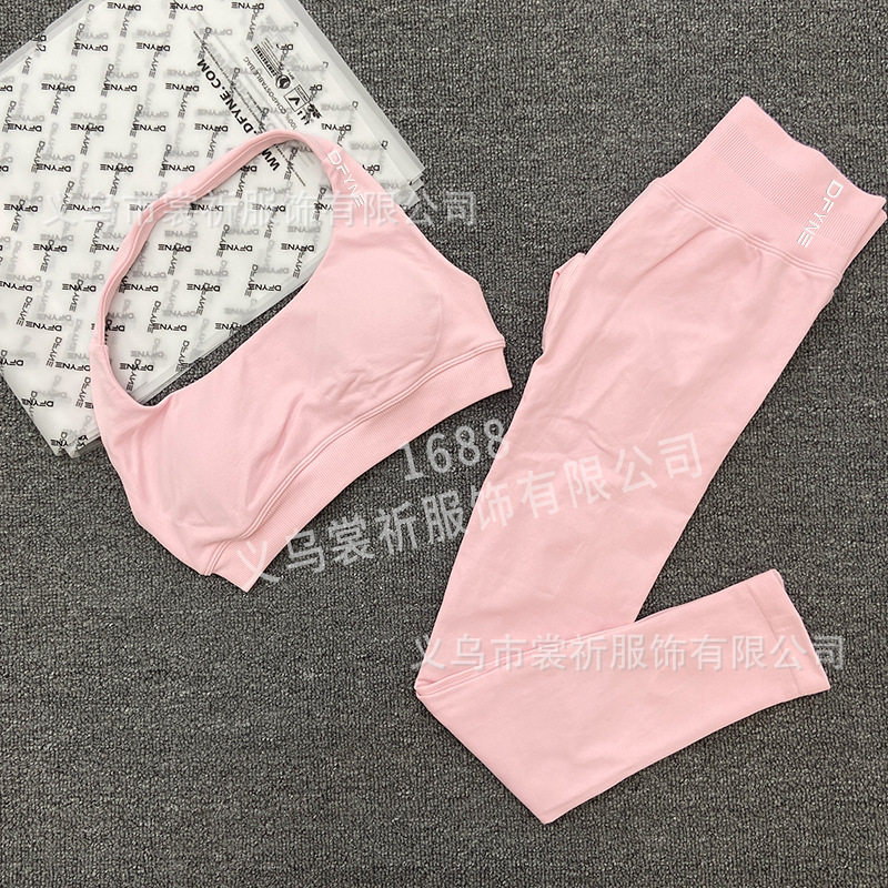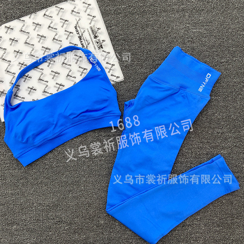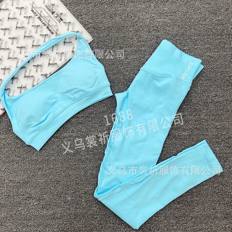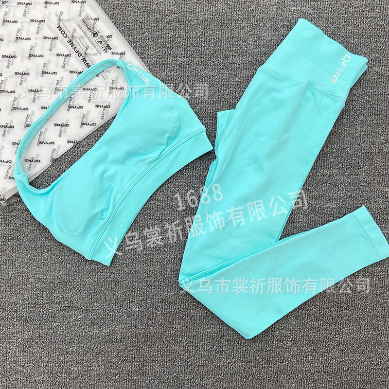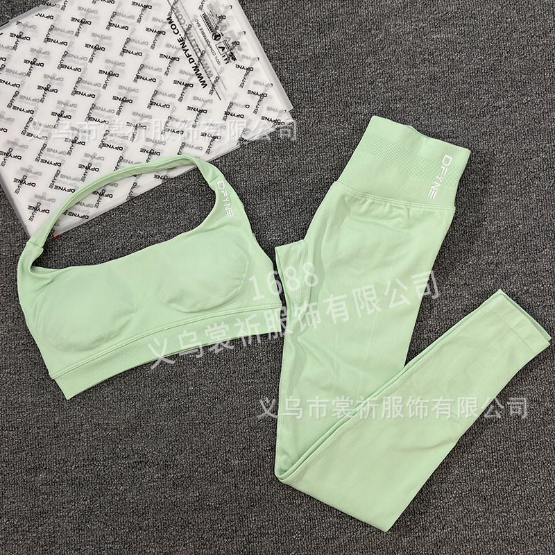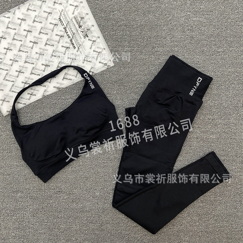 Dfyne European and American Seamless Backless Halter Sports Vest and Pants Set for Women, High-Elastic Matte Nylon Yoga Bra