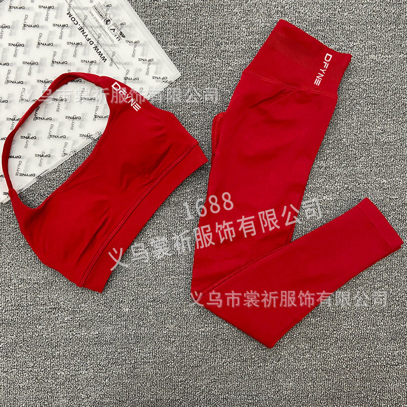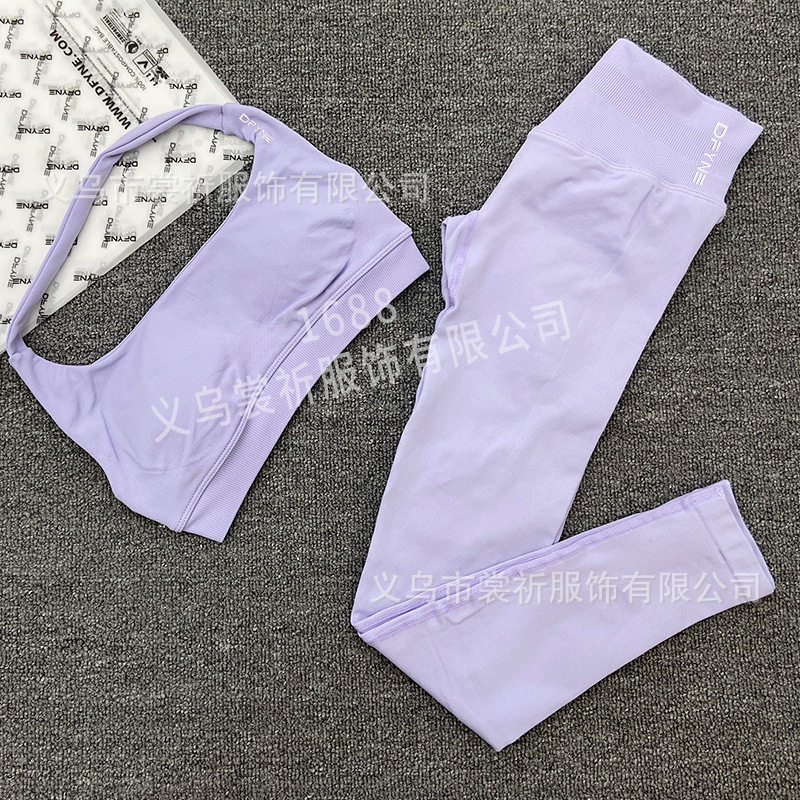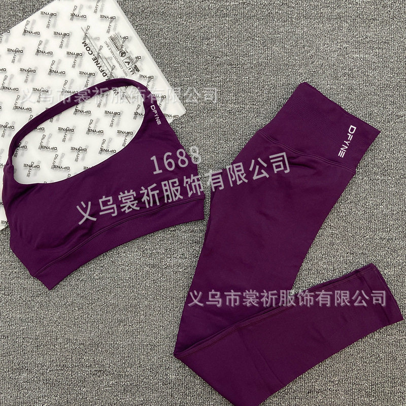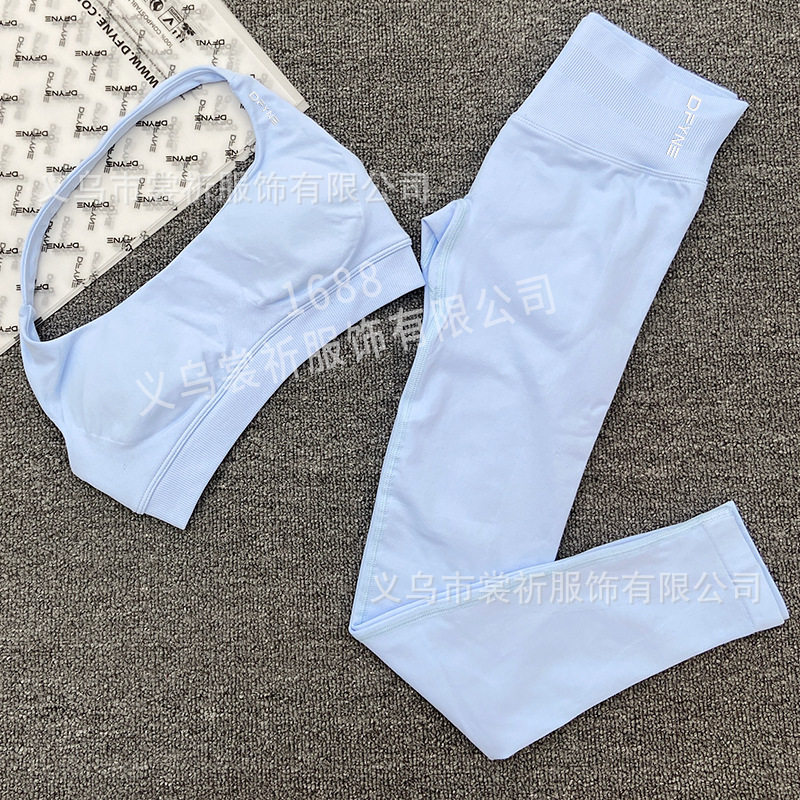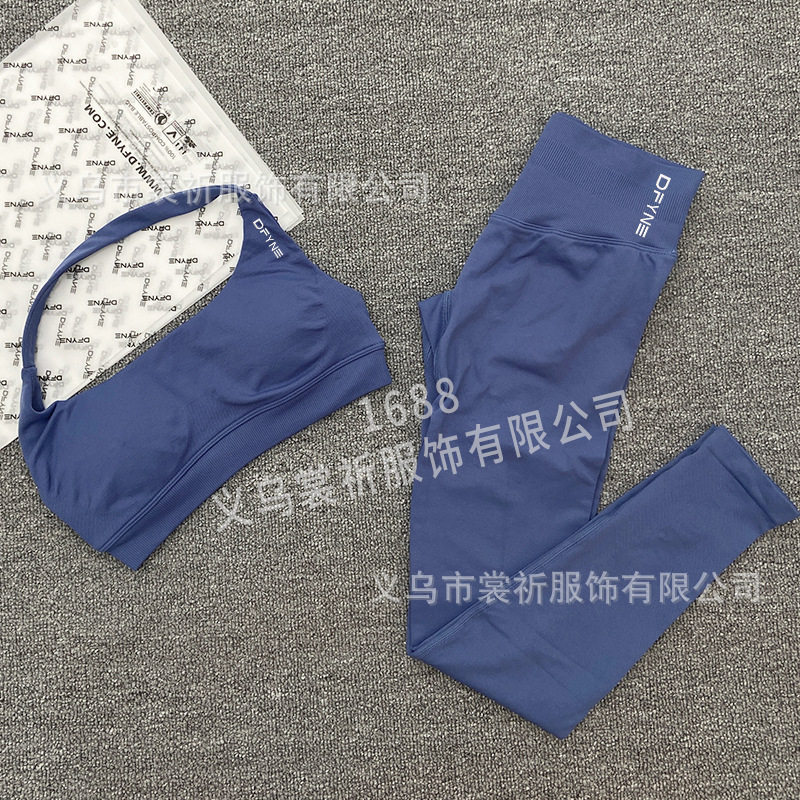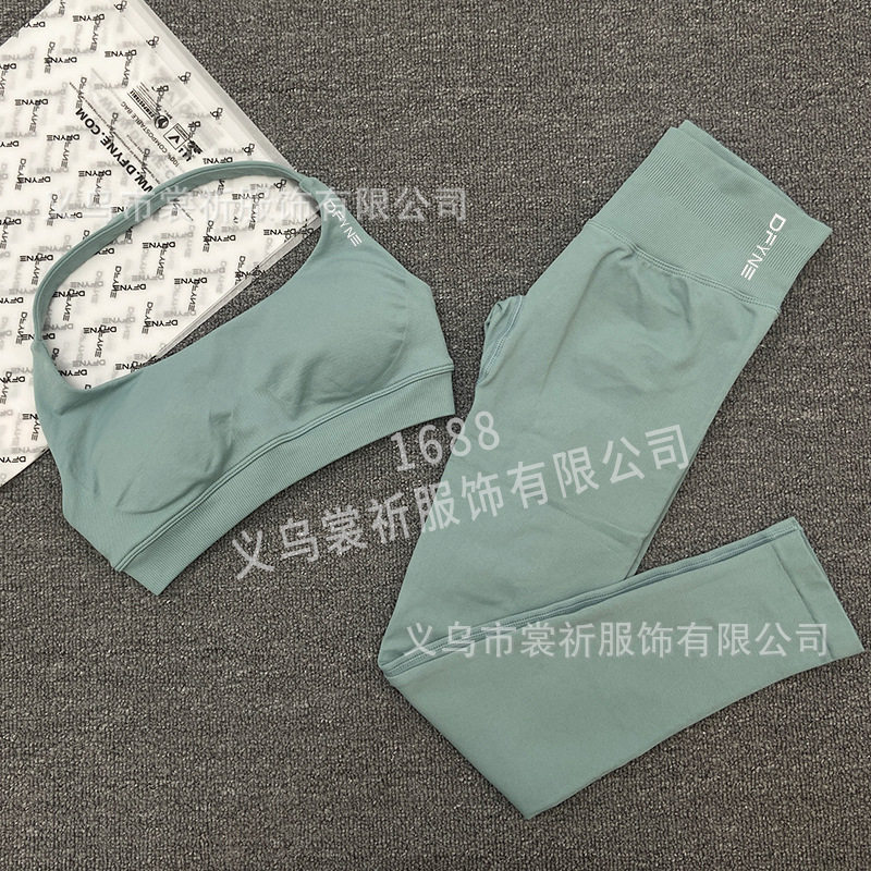Dfyne European and American Seamless Backless Halter Sports Vest and Pants Set for Women, High-Elastic Matte Nylon Yoga Bra