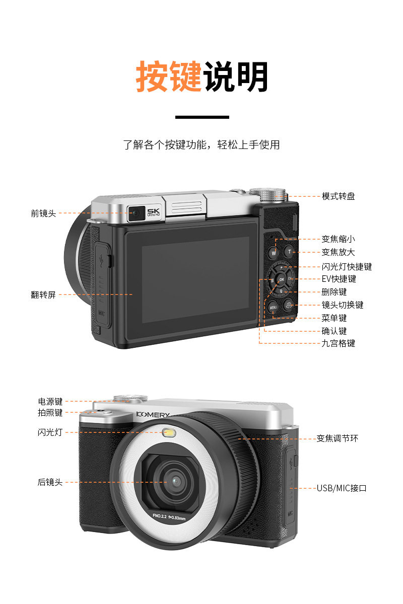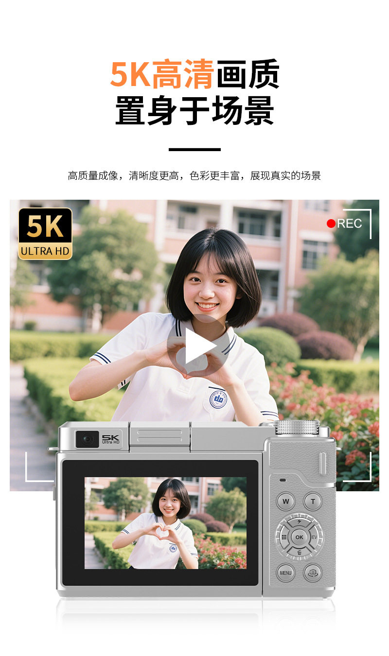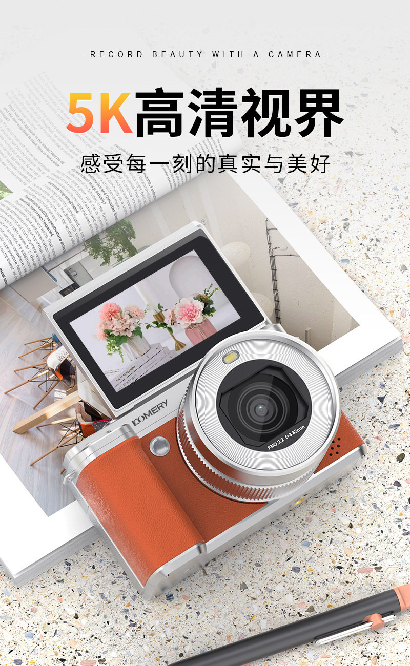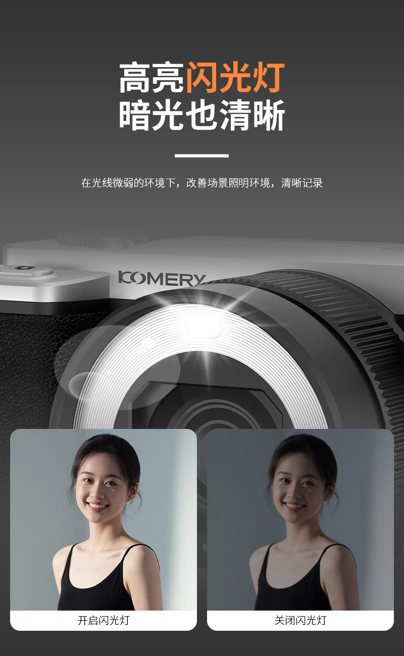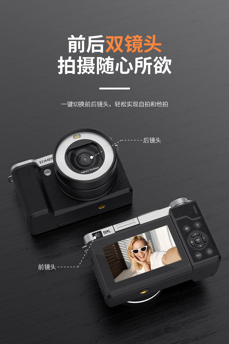 Entry-Level High-Definition Digital Camera with Dual Camera, Flip Screen, Ccd Camera for Taking Photos and Videos, Beauty-Enhancing Mirrorless Camera for Students