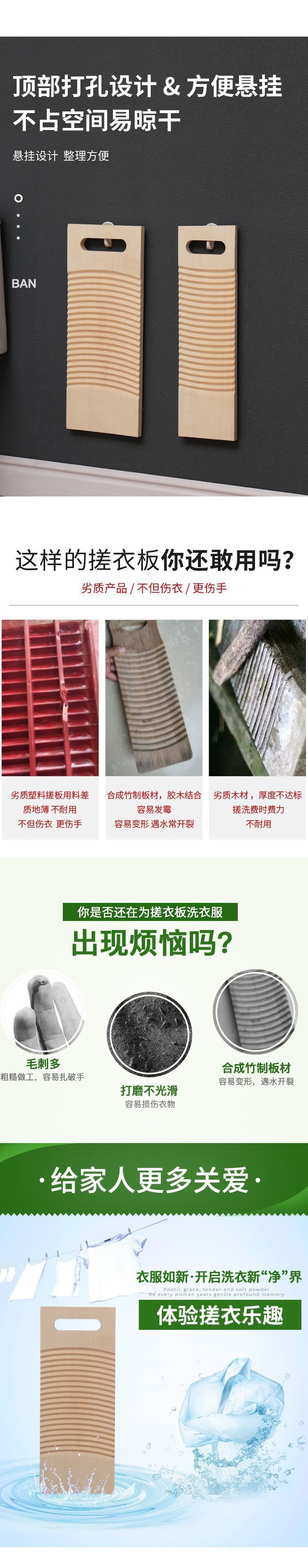 Washboard New Model Solid Wood Household Hand Wash Single-Sided Rounded Corner Anti-Mold Washboard Anti-Crack Kneeling Punishment for Boyfriend Use
