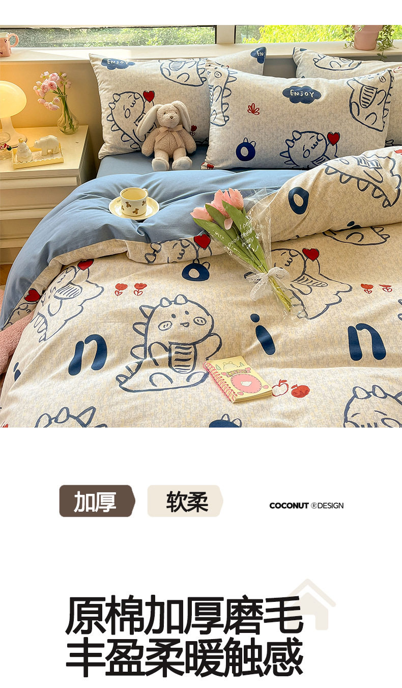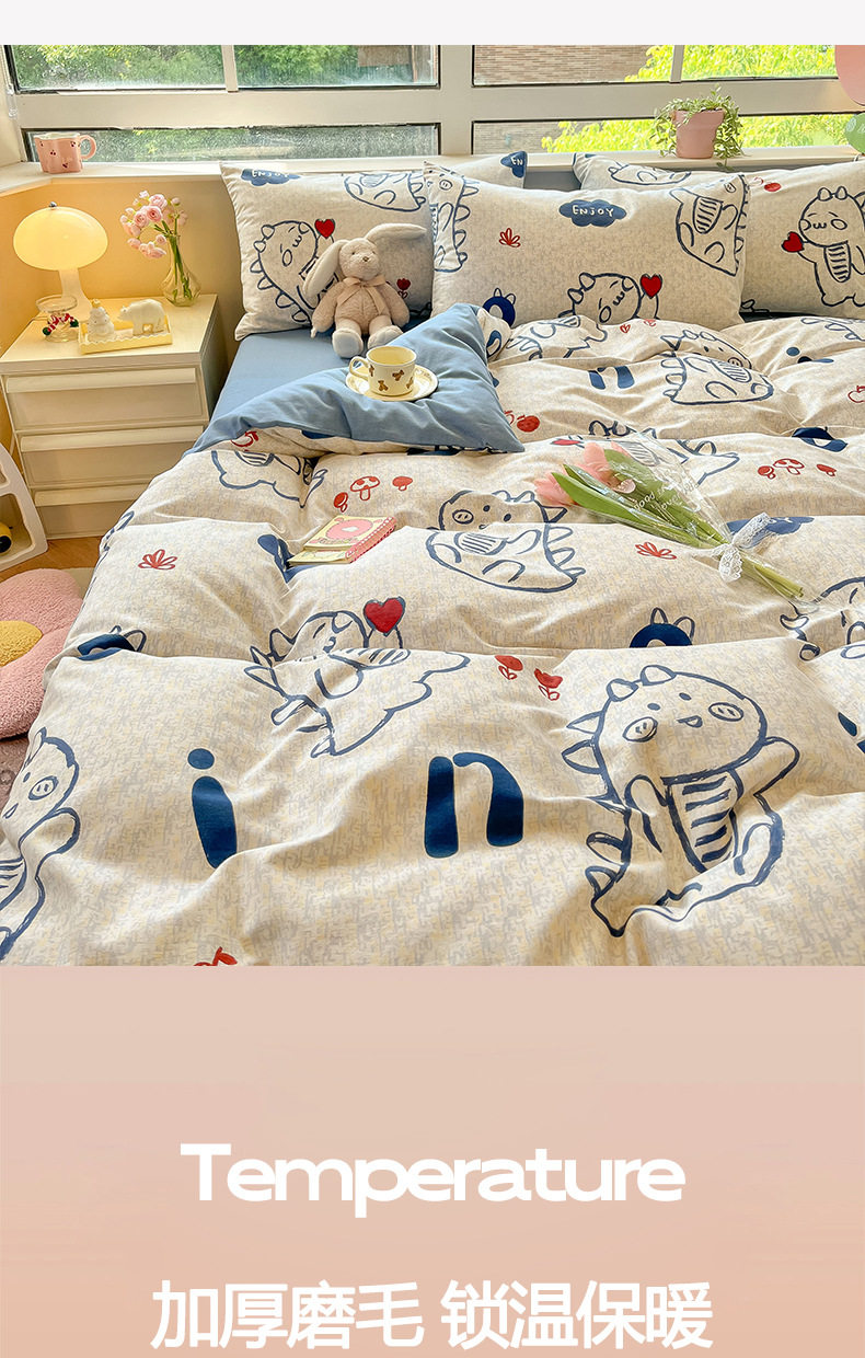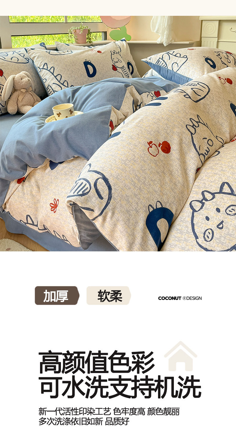 Autumn and Winter Thickened Raw Cotton Brushed Four-Piece Set with Printed 2025 New Style Duvet Cover, Bed Sheet, Fitted Sheet, Three-Piece Bedding Set