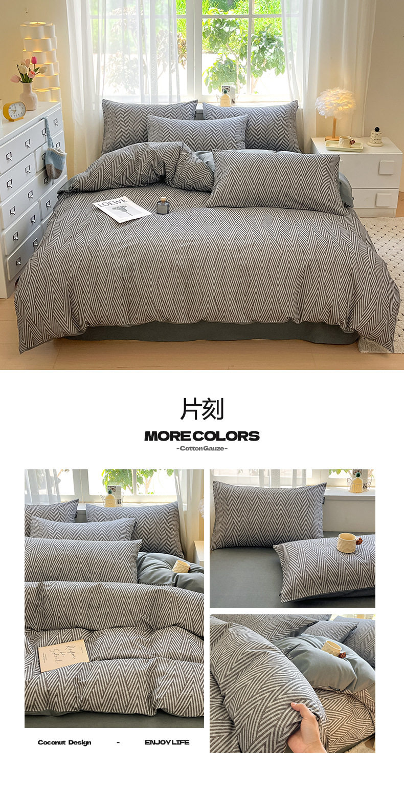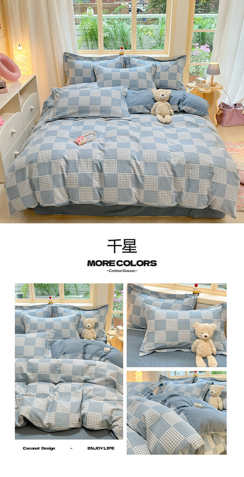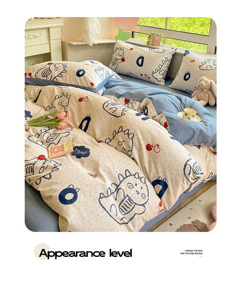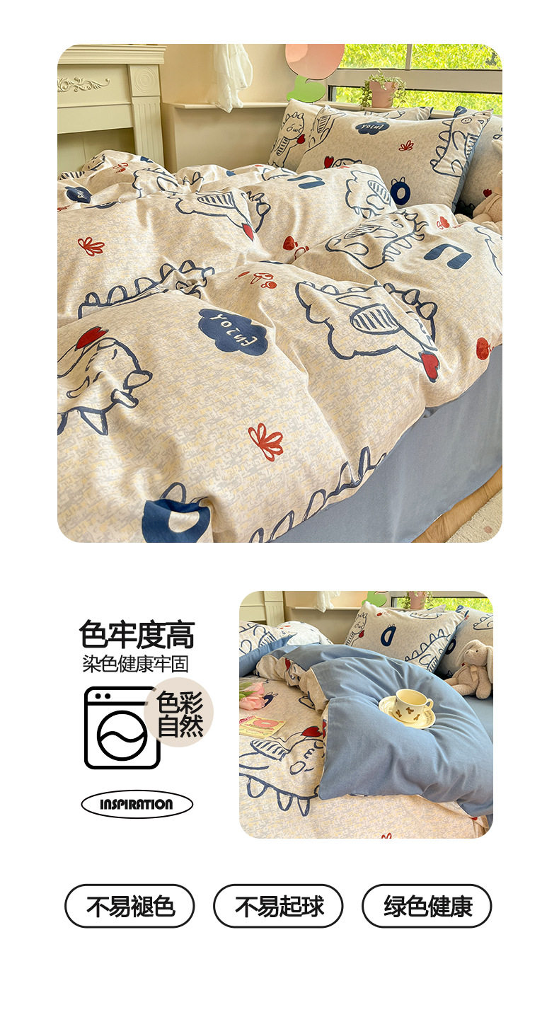 Autumn and Winter Thickened Raw Cotton Brushed Four-Piece Set with Printed 2025 New Style Duvet Cover, Bed Sheet, Fitted Sheet, Three-Piece Bedding Set