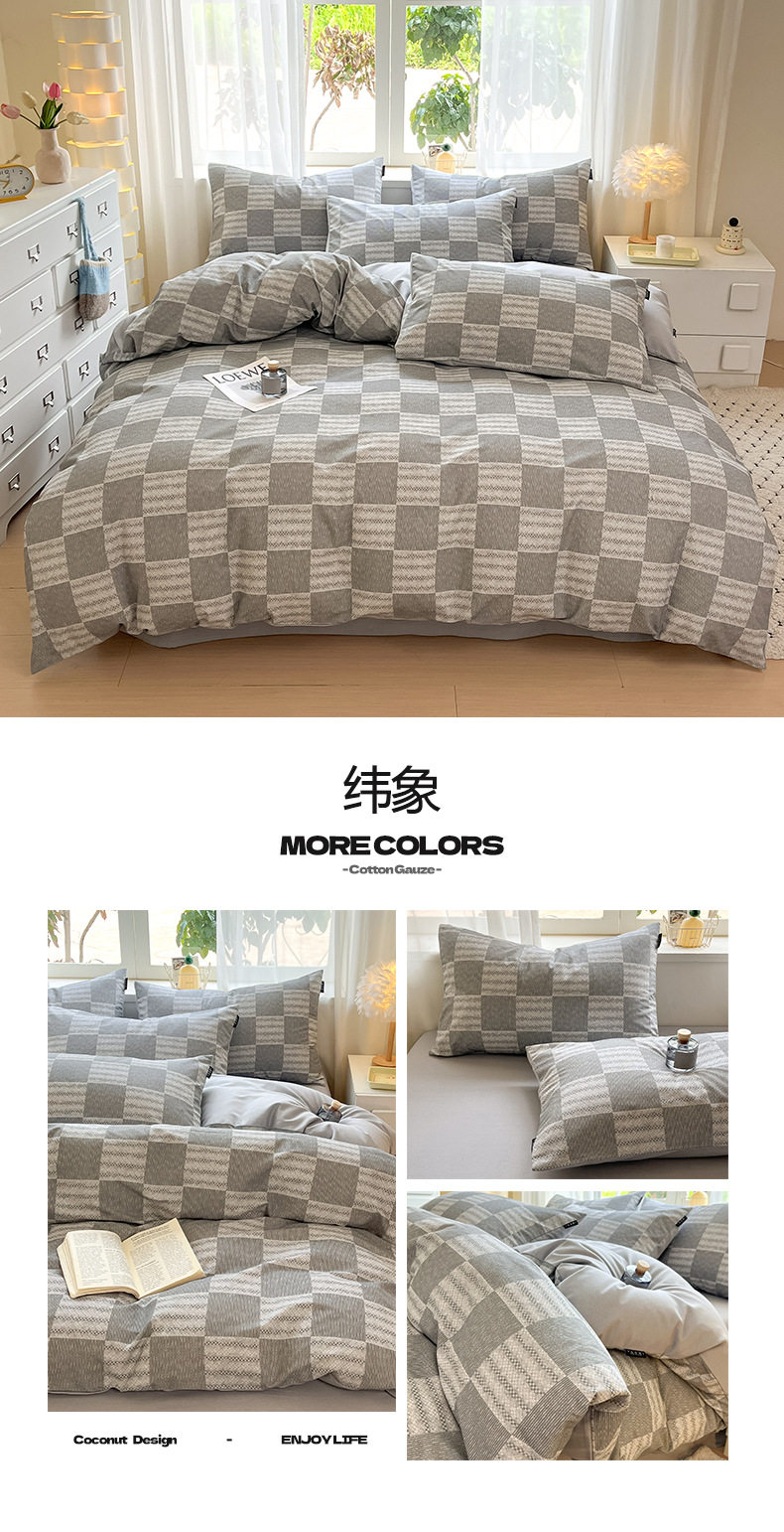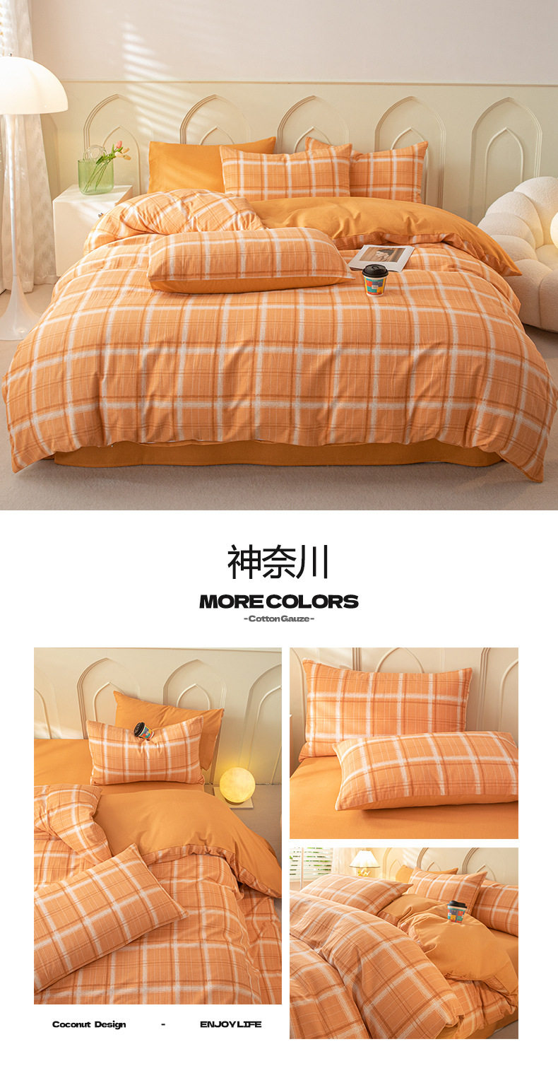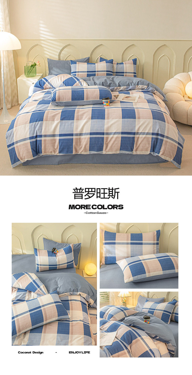 | Size specifications | 1.2 three-piece bed sheet set [quilt cover 160*210cm+sheet 180*230cm+pillowcase*1],1.5-sheet four-piece set [quilt cover 200*230cm+sheet 230*250cm+pillowcase*2],1.8-sheet four-piece set [quilt cover 200*230cm+sheet 230*250cm+pillowcase*2],2.0 four-piece bed sheet set [quilt cover 220*240cm+sheet 245*265cm+pillowcase*2],1.5-piece fitted sheet set [quilt cover 200*230cm+ fitted sheet 150*200cm+ pillowcase*2],1.8-piece fitted sheet set [quilt cover 200*230cm+ fitted sheet 180*200cm+ pillowcase*2],160*210cm single quilt cover,200*230cm single quilt cover,220*240cm single quilt cover |