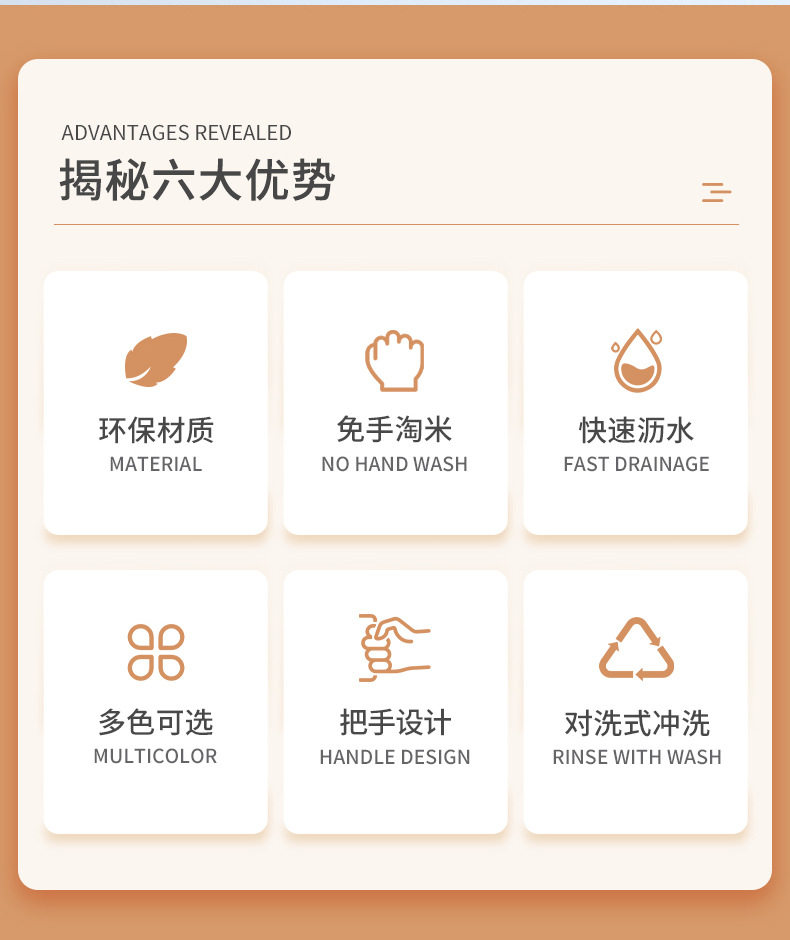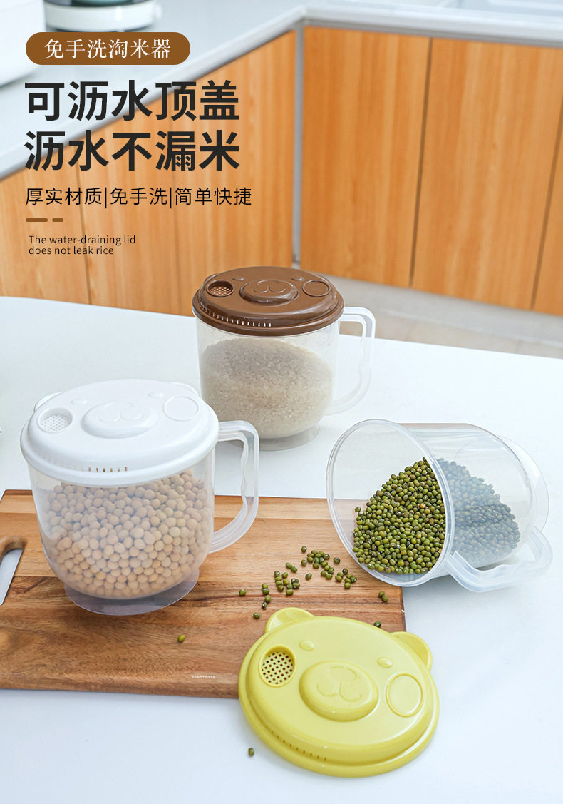 Rice Washing Machine with Hedging Type, Hands-Free Washing and Draining Rice Cleaning Tool, Lazy Rice Washing and Straining Basket