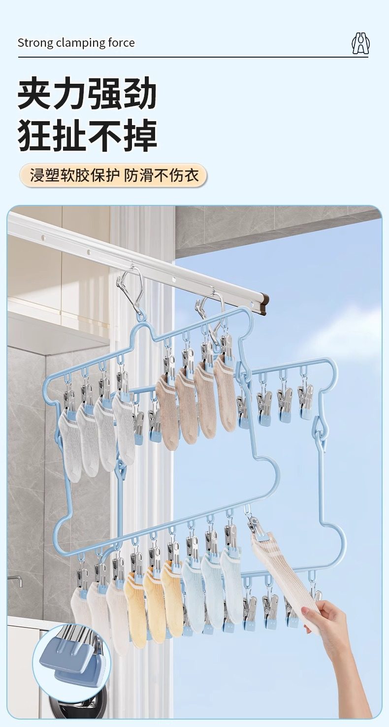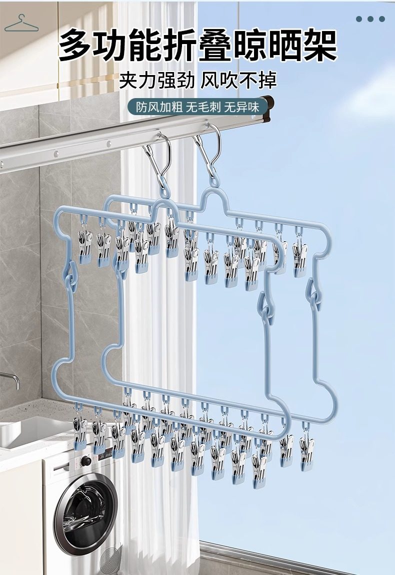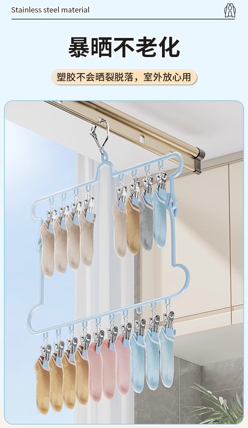 Sock Drying Rack Folding Clothes Hanger with Multiple Clips Stainless Steel Drying Rack for Underwear Multifunctional Balcony Sock Clip